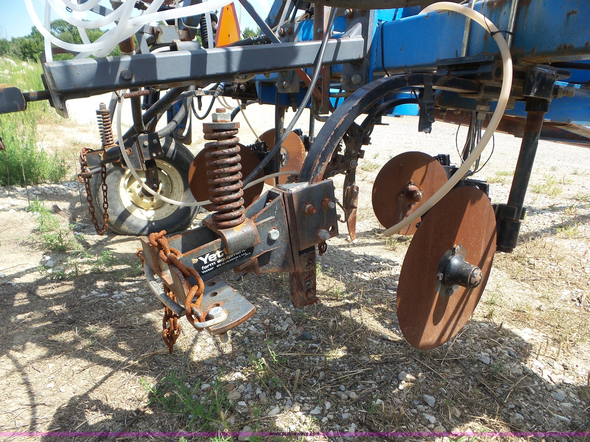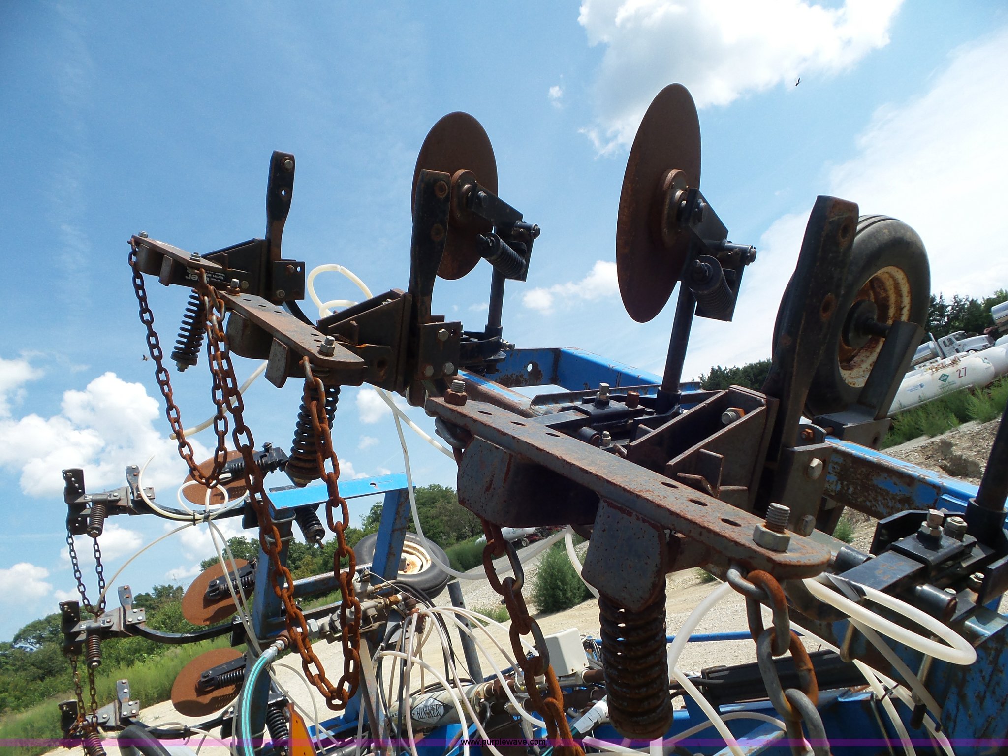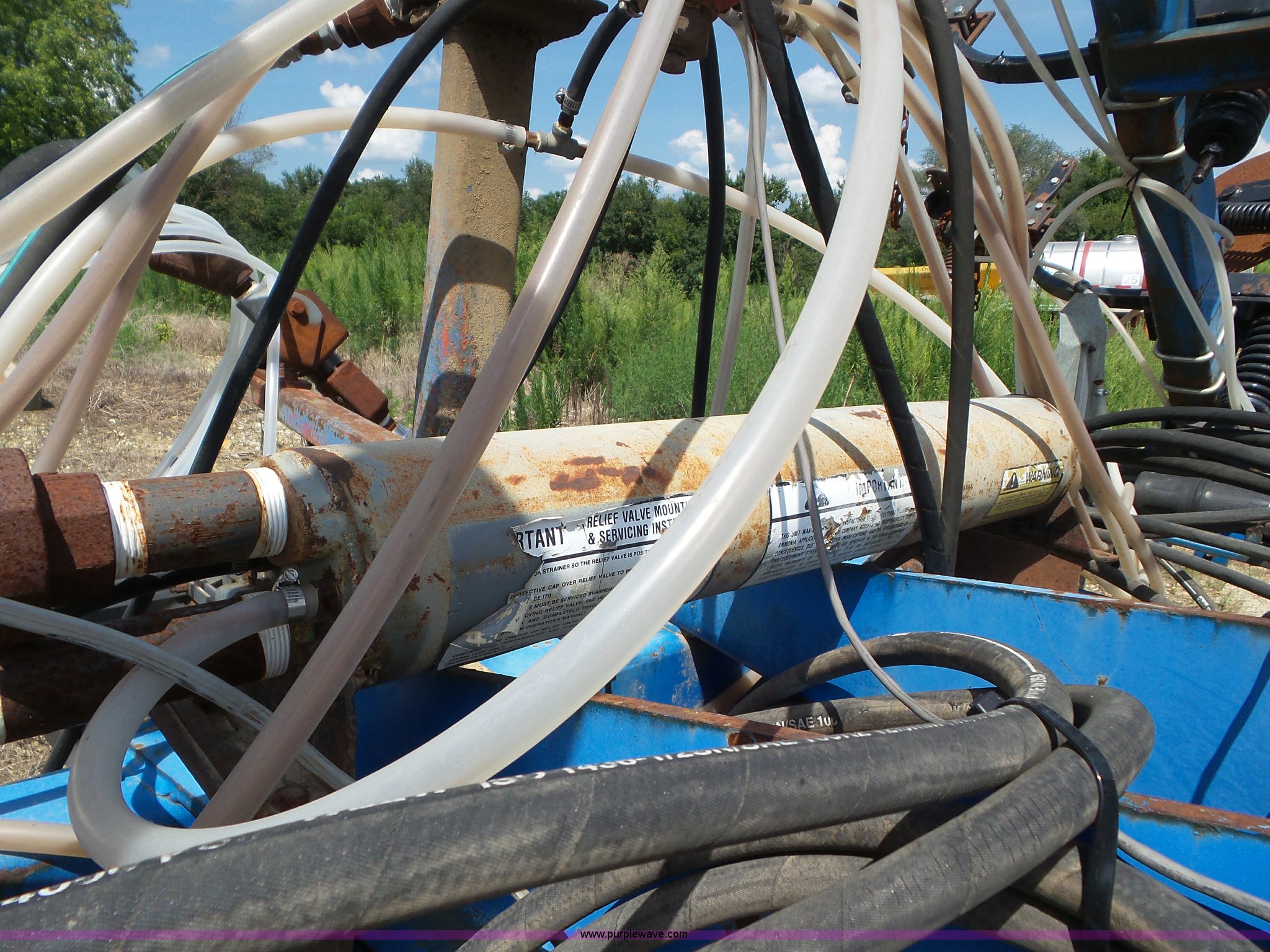DMI Nutri-Placr 3250 applicator. Approximately 24'W, Openers, Yetter closing wheels, B9500 Continental Metermatic anhydrous pump with hydraulic shut off, Hydraulic fold and lift, Front and rear pin hitches, 11-15 tires, No shanks, Serial 823340, Unit# 11-5. Crop Production Services. 301 N. High. West Lebanon, IN 47991