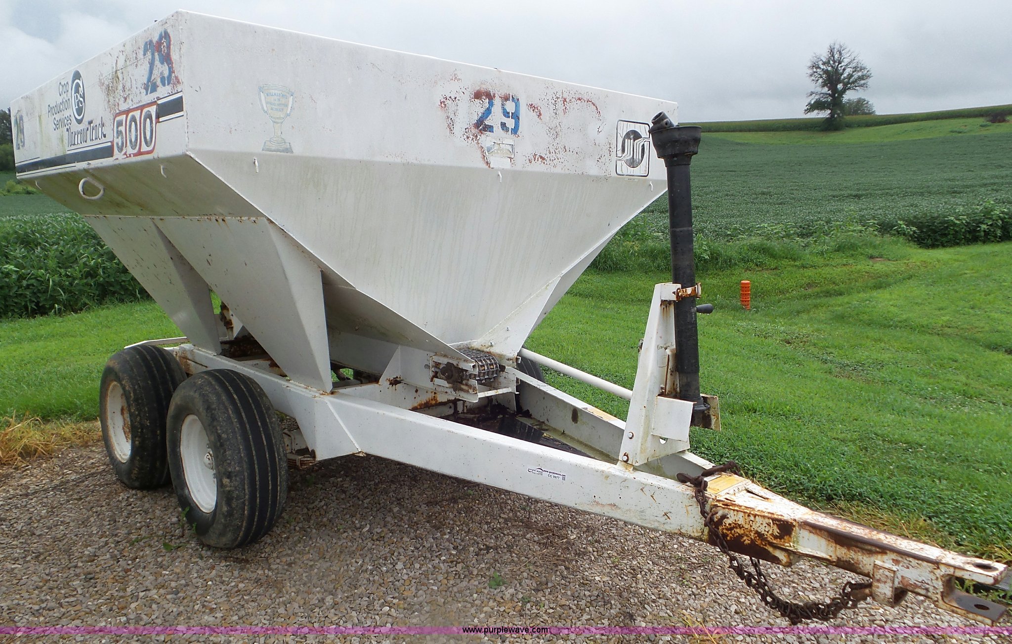 Purple Wave is selling a used Applicator Pull Type in Kentucky. This item is a 2005 Willmar 500 spreader with the following: 5"W chain conveyor, Five ton capacity, Dual spinners, 540 PTO, Pin hitch, Spring suspension, 11-15 tires