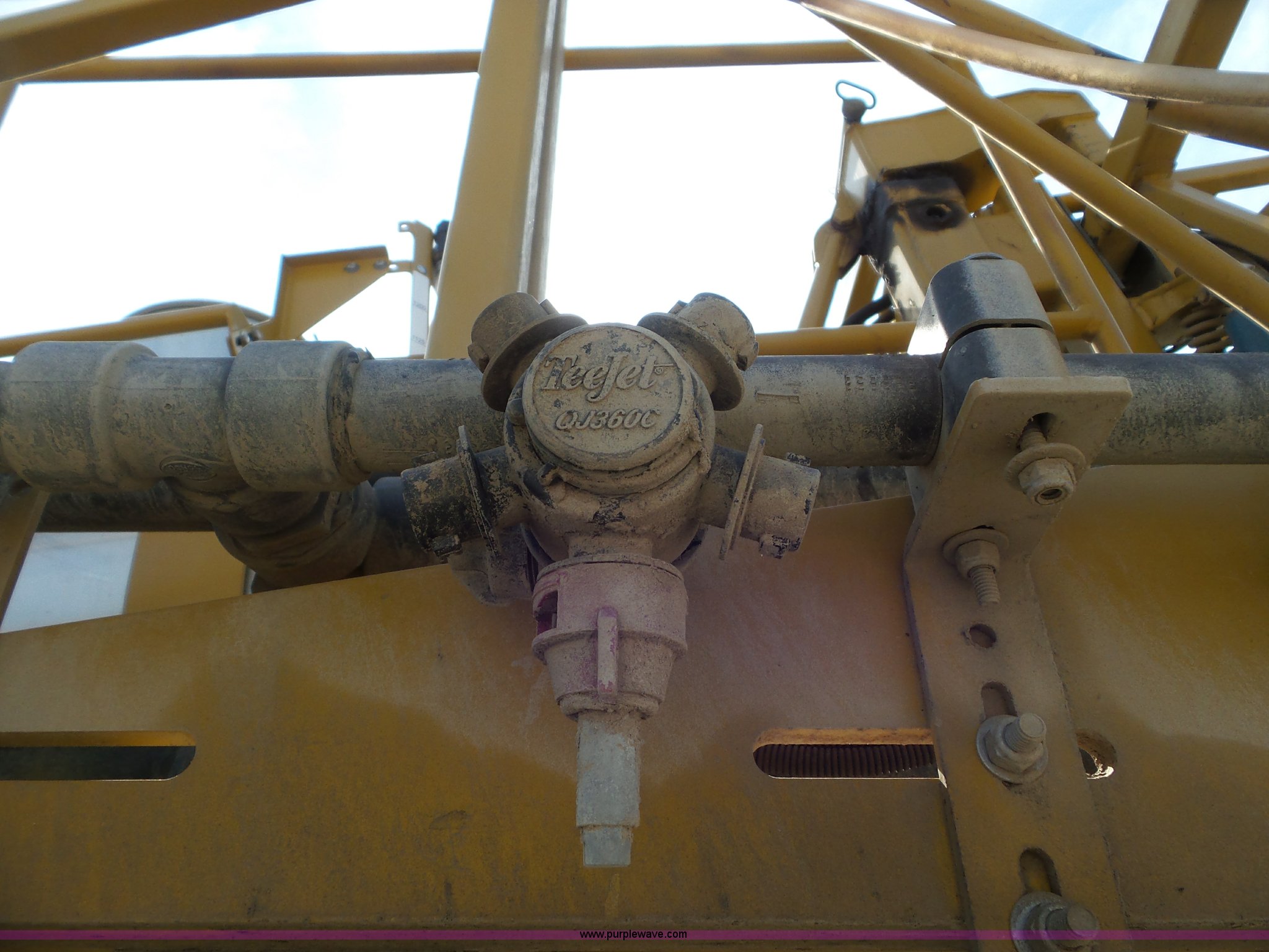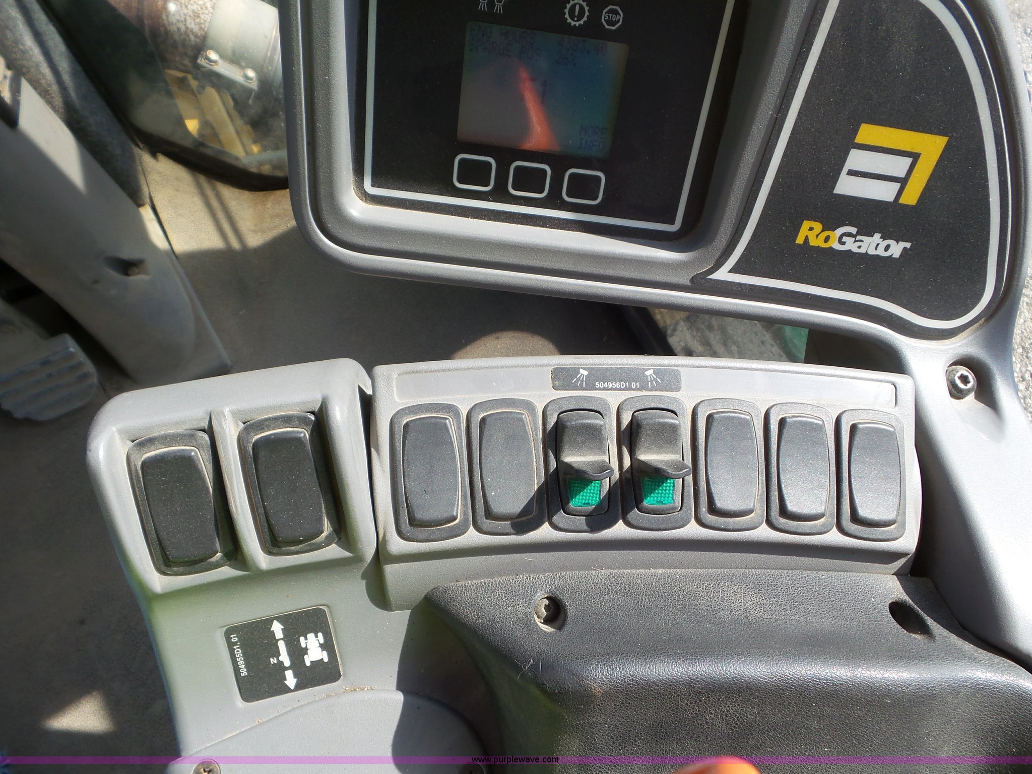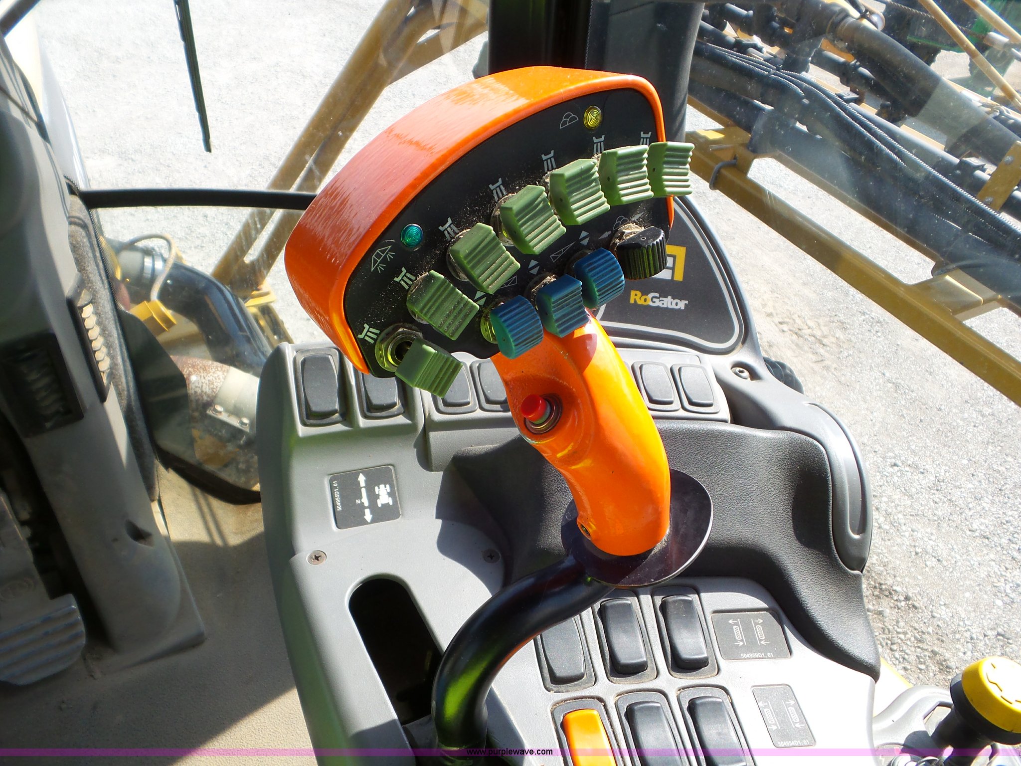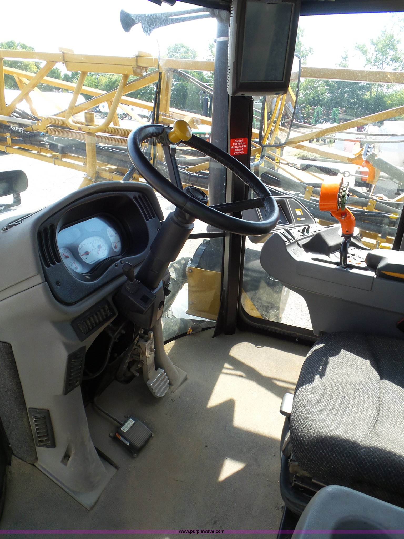 2008 Rogator 1286C self-propelled applicator. 4,383 hours on meter, Caterpillar six cylinder turbo diesel engine, Hydrostatic transmission, Four wheel dirve, AC and heat Non-operational AC, AM/FM, Air suspension seat, Work lights, 1,200 gallon stainless steel tank, 120' boom width, Five sections, Boom breakaway, Hydraulic boom fold, Automatic height control, 10" nozzle body spacing Three way nozzle bodies, Lightbar, Raven GPS monitor, Spray controls, Auto steer, Ground radar, Hydraulic ladder, Fenders, Hydraulic axle width adjustment, 380/90R46 row crop tires, Rear wheel drive leaks, Hydrostatic control issues, Boom return issues, Unknown operating condition of auto height control, Serial AGCA1286KNT001075, Unit# 43934. Crop Production Services. 10643. Amboy, IN 46911