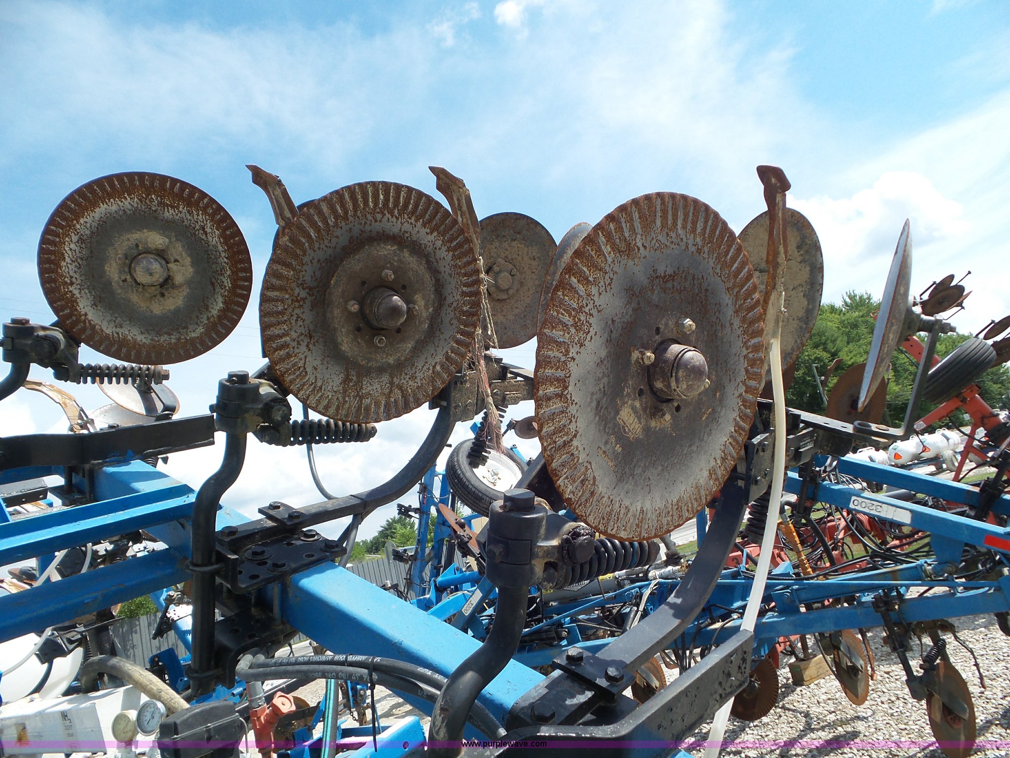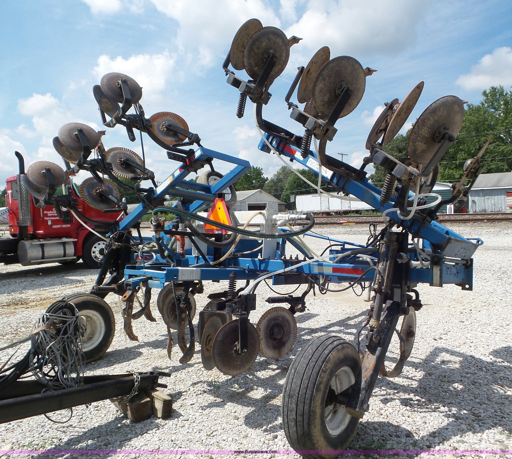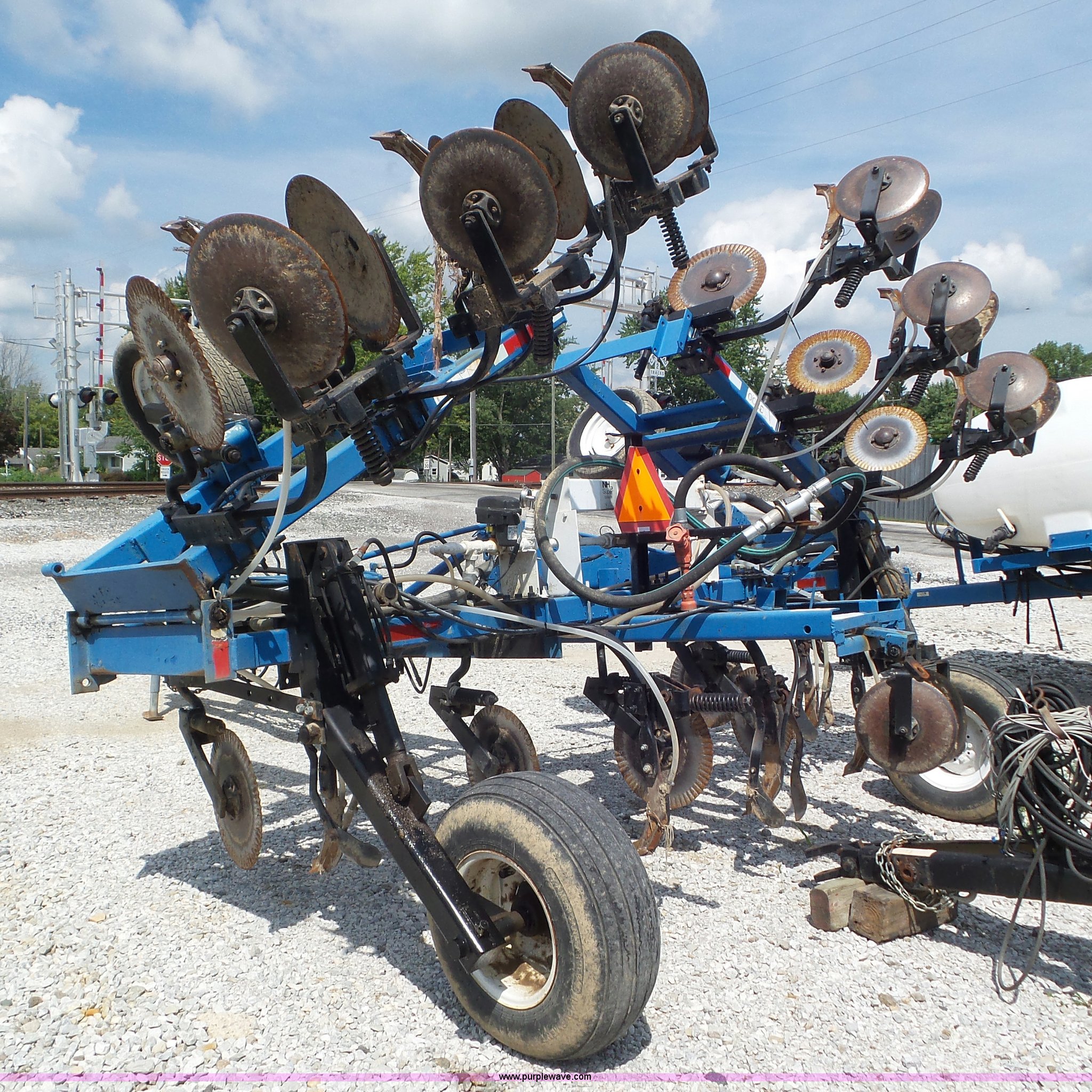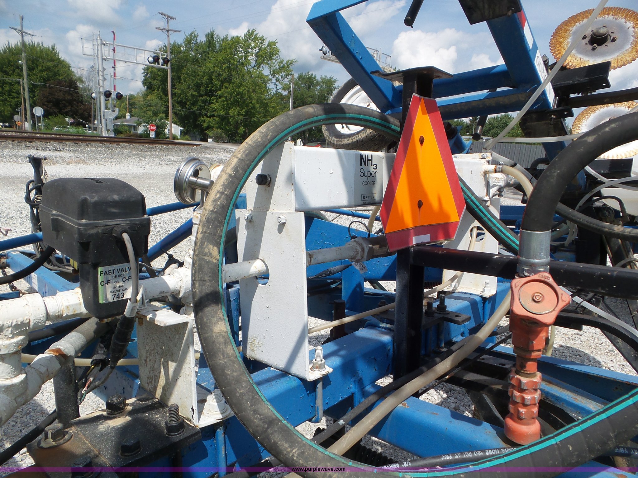 Purple Wave is selling a used Applicator Pull Type in Indiana. This item is a DMI Nutri-Placr 3200 applicator with the following: Approximately 26'W, (11) shanks, 30" spacing, Openers, Closers, Raven NH3 super cooler, Hydraulic lift and fold, Front and rear pin hitch, 11-15 tires, Unit# 7