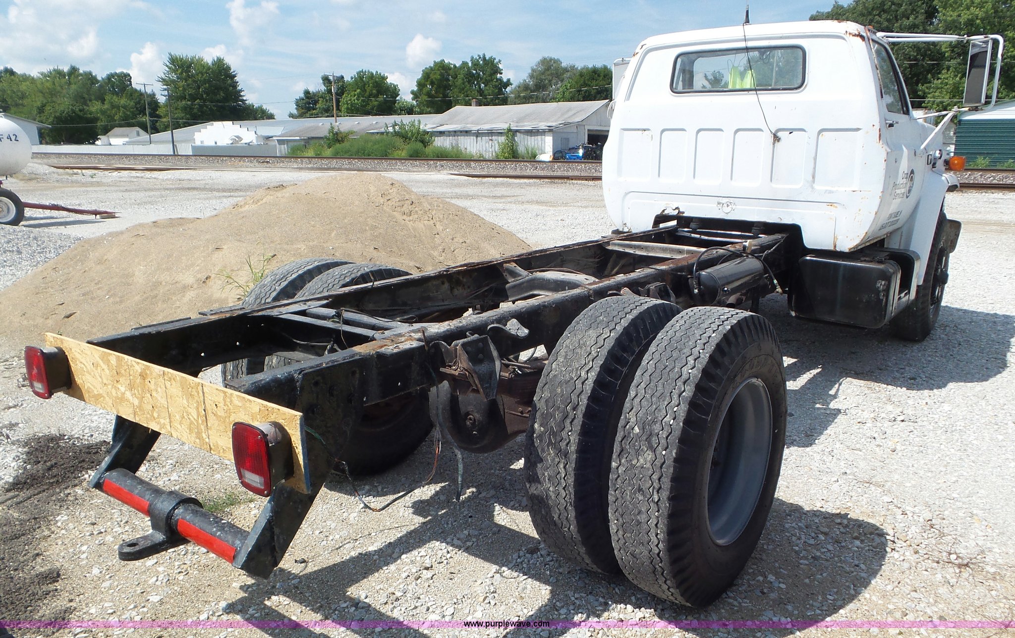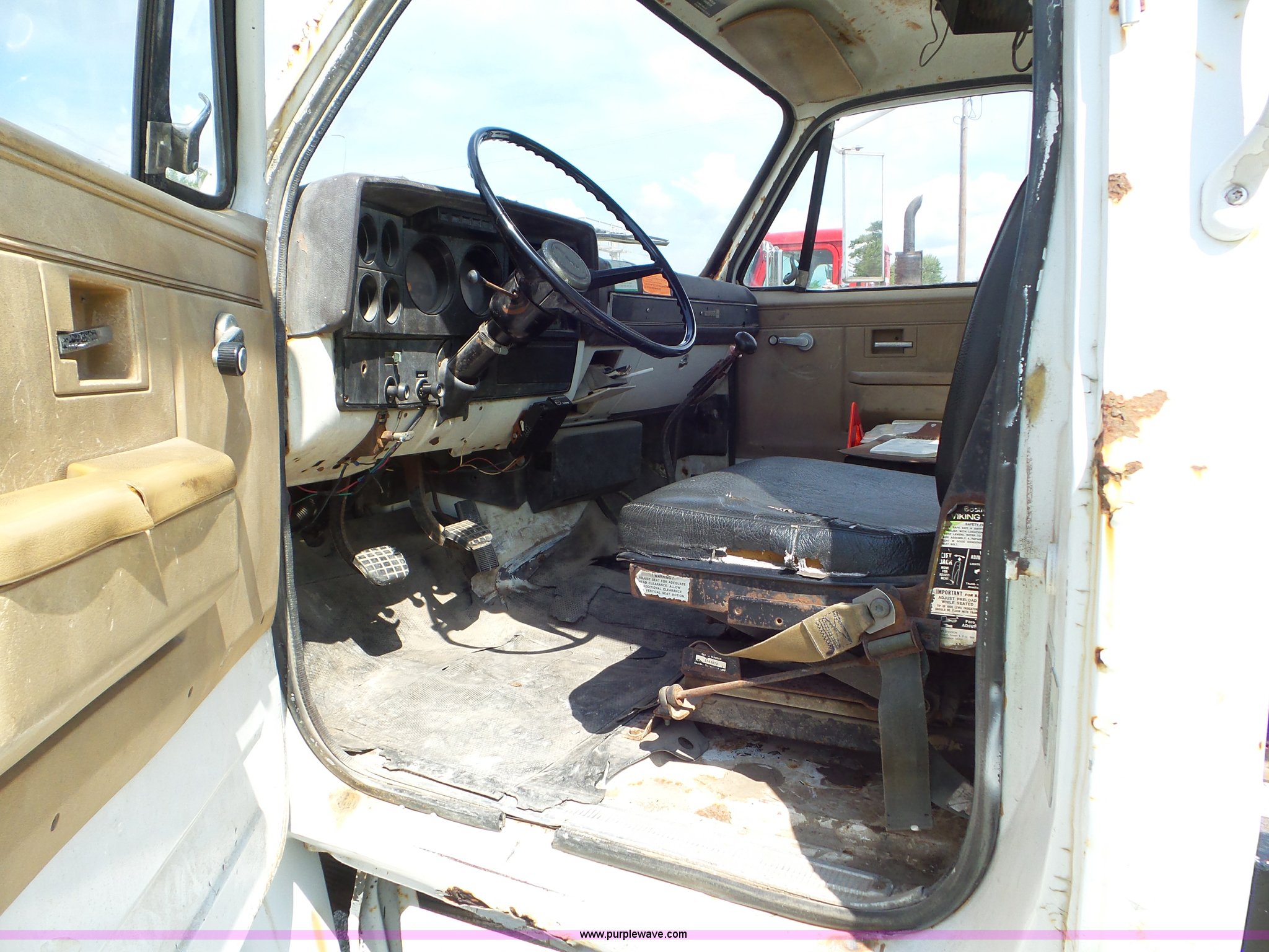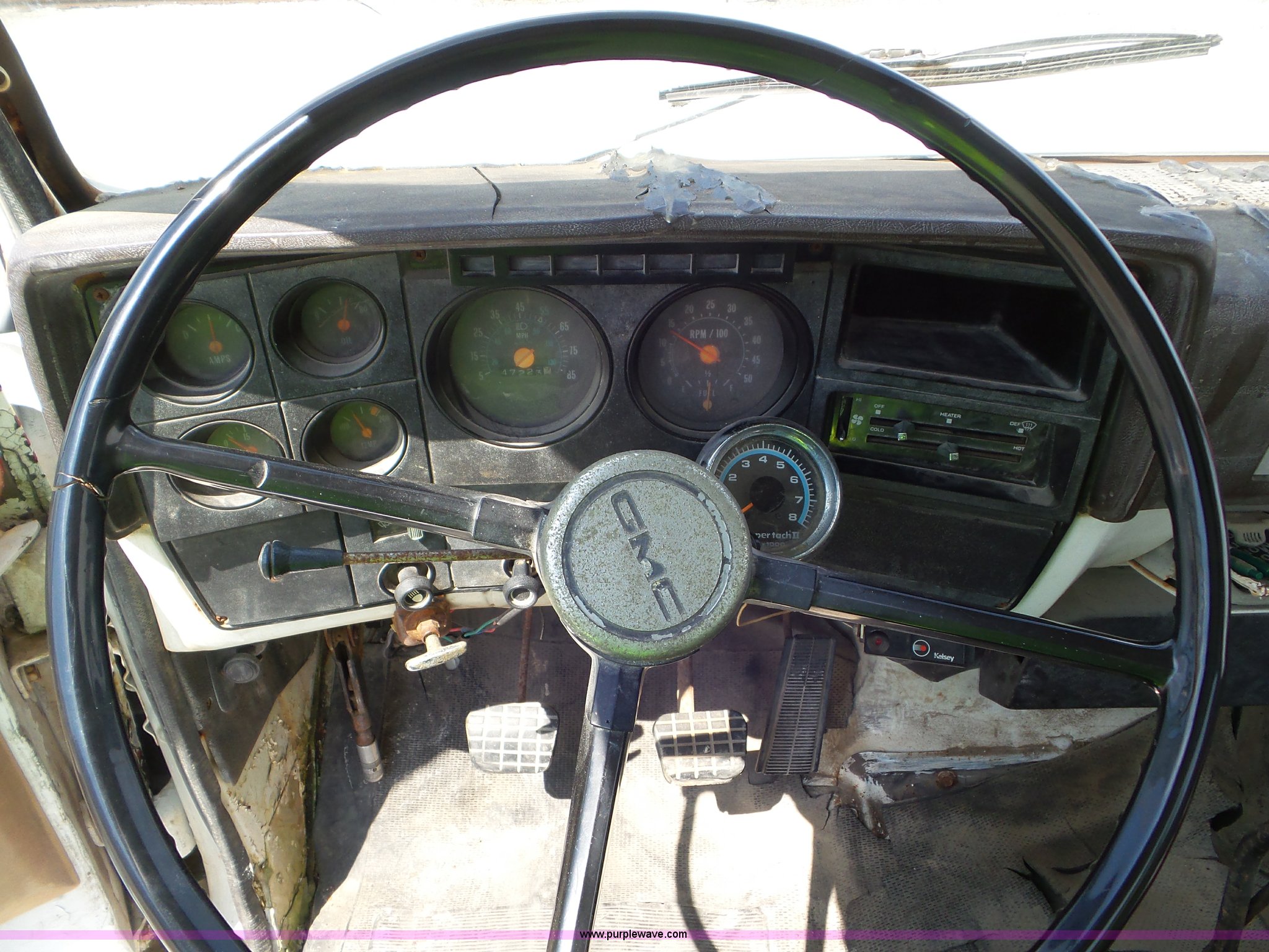 Purple Wave is selling a used Truck Chassis in Indiana. This item is a 1981 GMC truck cab and chassis with the following: 47,223 miles on odometer, Eight cylinder gas engine, Five speed manual transmission, Two speed rear end, Heat, AM/FM, Spring suspension seat, Trailer brake controller, Single fuel tank, 164" wheelbase, Spring suspension, Hydraulic brakes, 11R22.5 tires, GVWR 27,500 lbs, Windshield cracked, Rust, Contents are not included, Unit# 38627