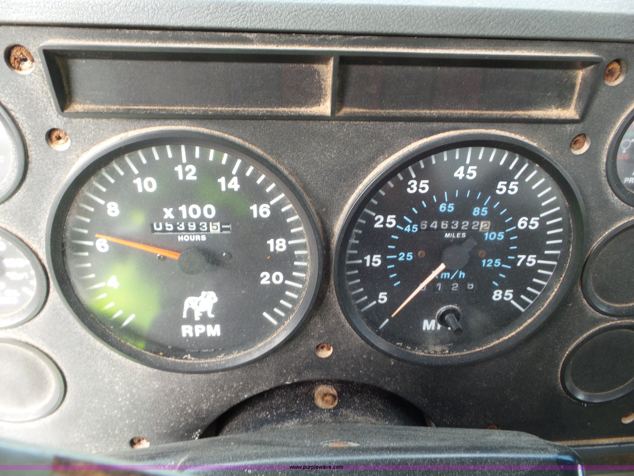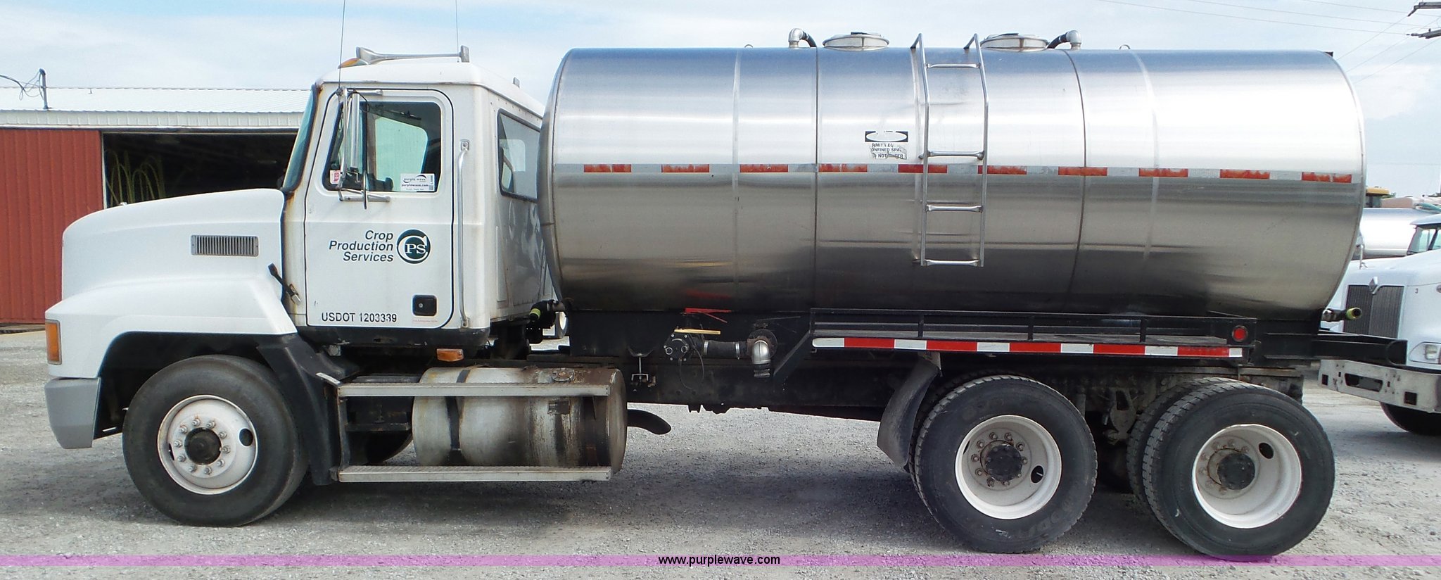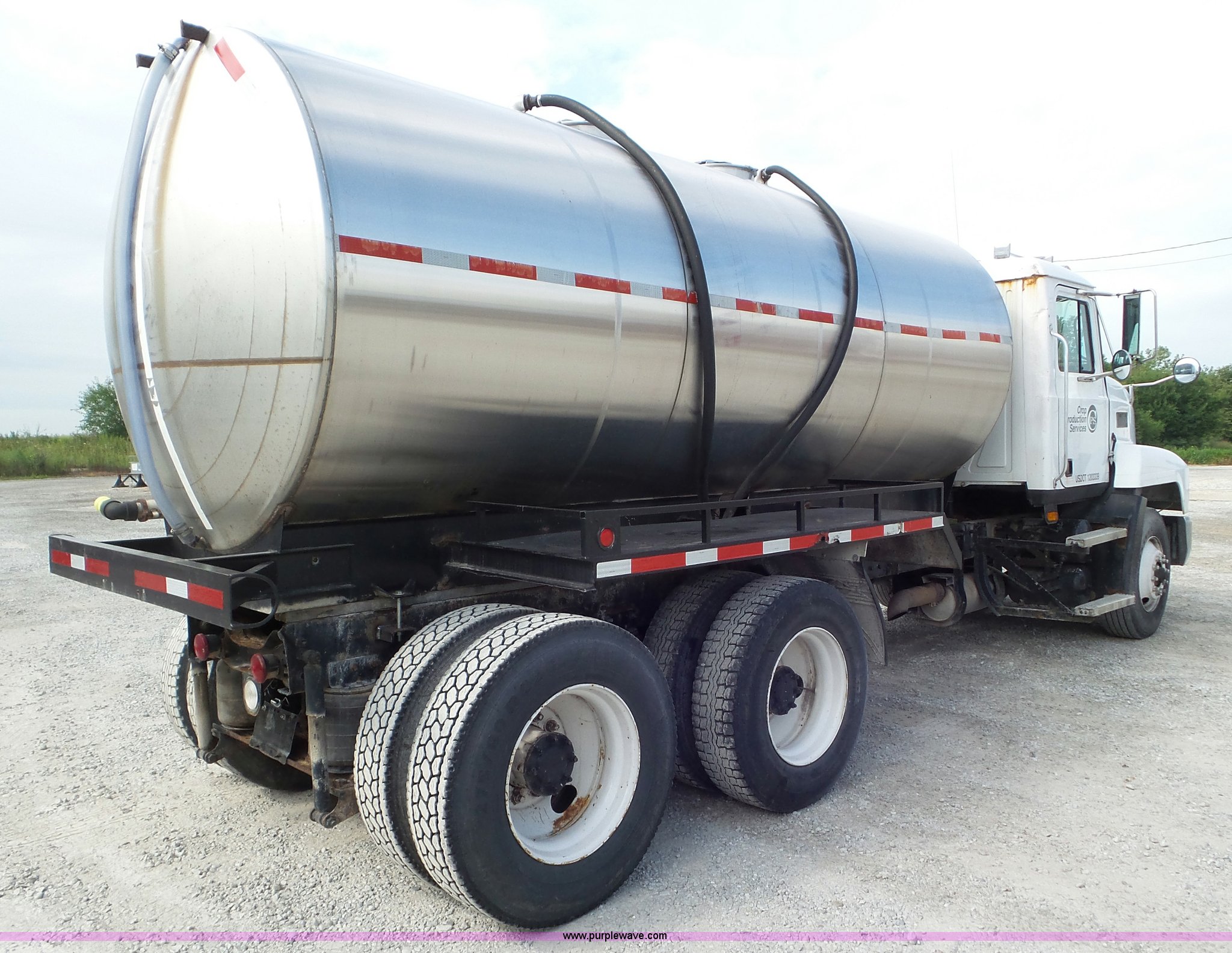 Purple Wave is selling a used Tank Truck or Water Truck in Indiana. This item is a 1996 Mack CH613 tank truck with the following: 646,322 miles on odometer, 5,393 hours on meter, Mack E7 12.0L L6 diesel engine, Eaton Fuller nine speed manual transmission, Tandem axle, Inter-axle differential lock, AC and heat, Tilt, Telescoping steering wheel, Cruise, AM/FM/cassette, Heated mirrors, Air suspension seat, Air ride cab, Front tow hooks, PTO, 1,700 gallon stainless steel tank, Single fuel tank, Air suspension, Air brakes, Engine brake, 216" wheelbase, 265/75R22.5 tires, Tank leaks, Unit# 45463