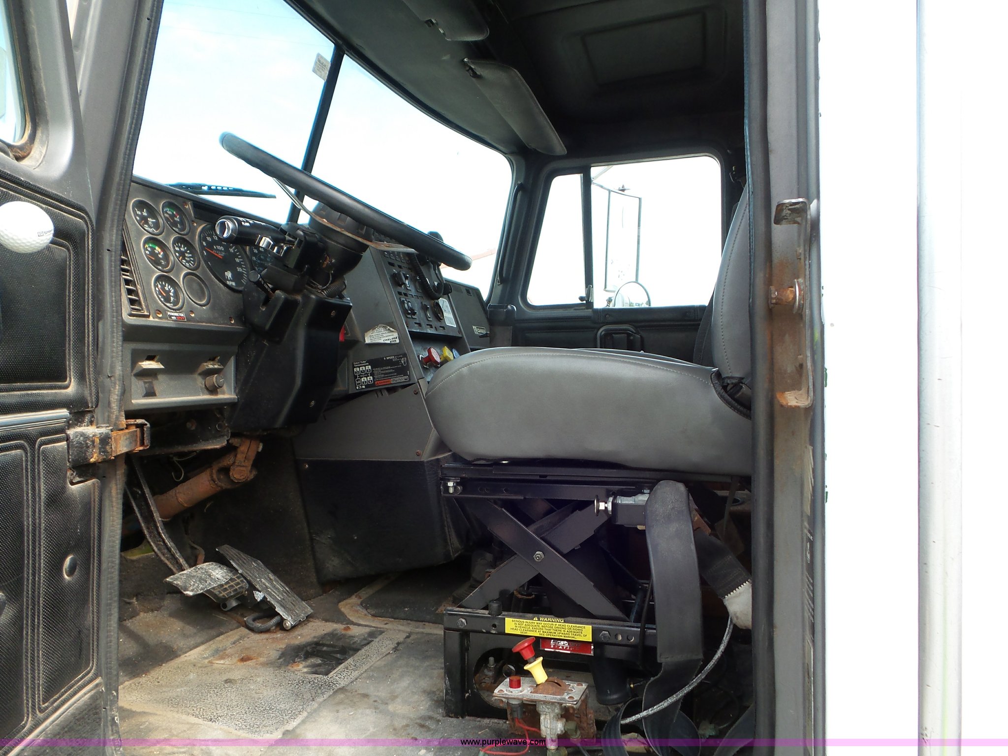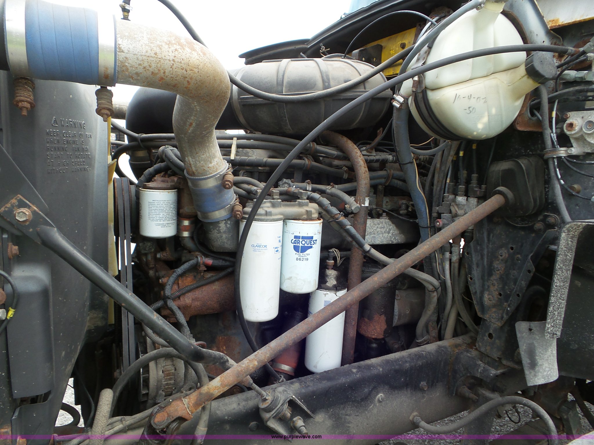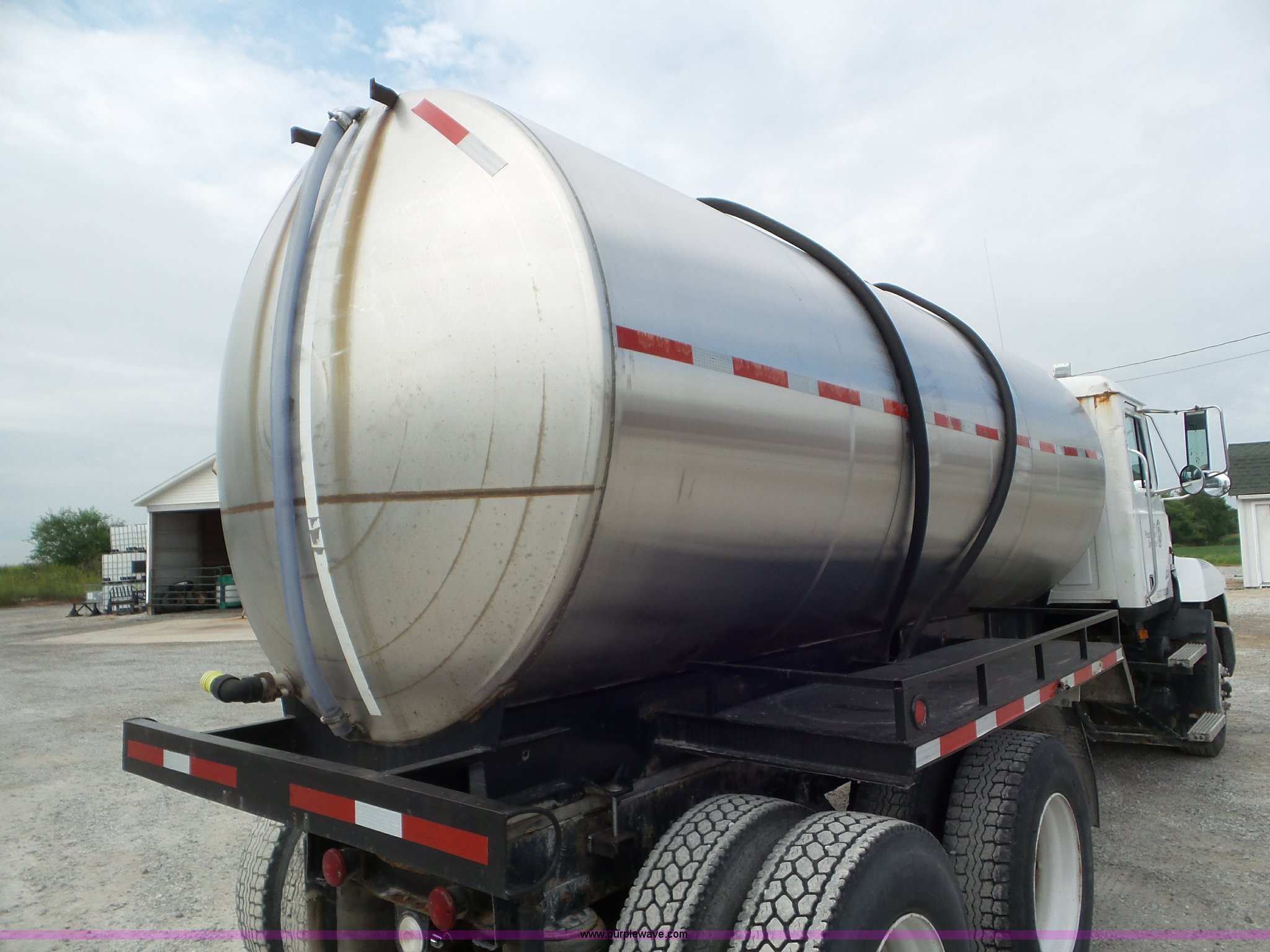 Purple Wave is selling a used Tank Truck or Water Truck in Indiana. This item is a 1996 Mack CH613 tank truck with the following: 646,322 miles on odometer, 5,393 hours on meter, Mack E7 12.0L L6 diesel engine, Eaton Fuller nine speed manual transmission, Tandem axle, Inter-axle differential lock, AC and heat, Tilt, Telescoping steering wheel, Cruise, AM/FM/cassette, Heated mirrors, Air suspension seat, Air ride cab, Front tow hooks, PTO, 1,700 gallon stainless steel tank, Single fuel tank, Air suspension, Air brakes, Engine brake, 216" wheelbase, 265/75R22.5 tires, Tank leaks, Unit# 45463