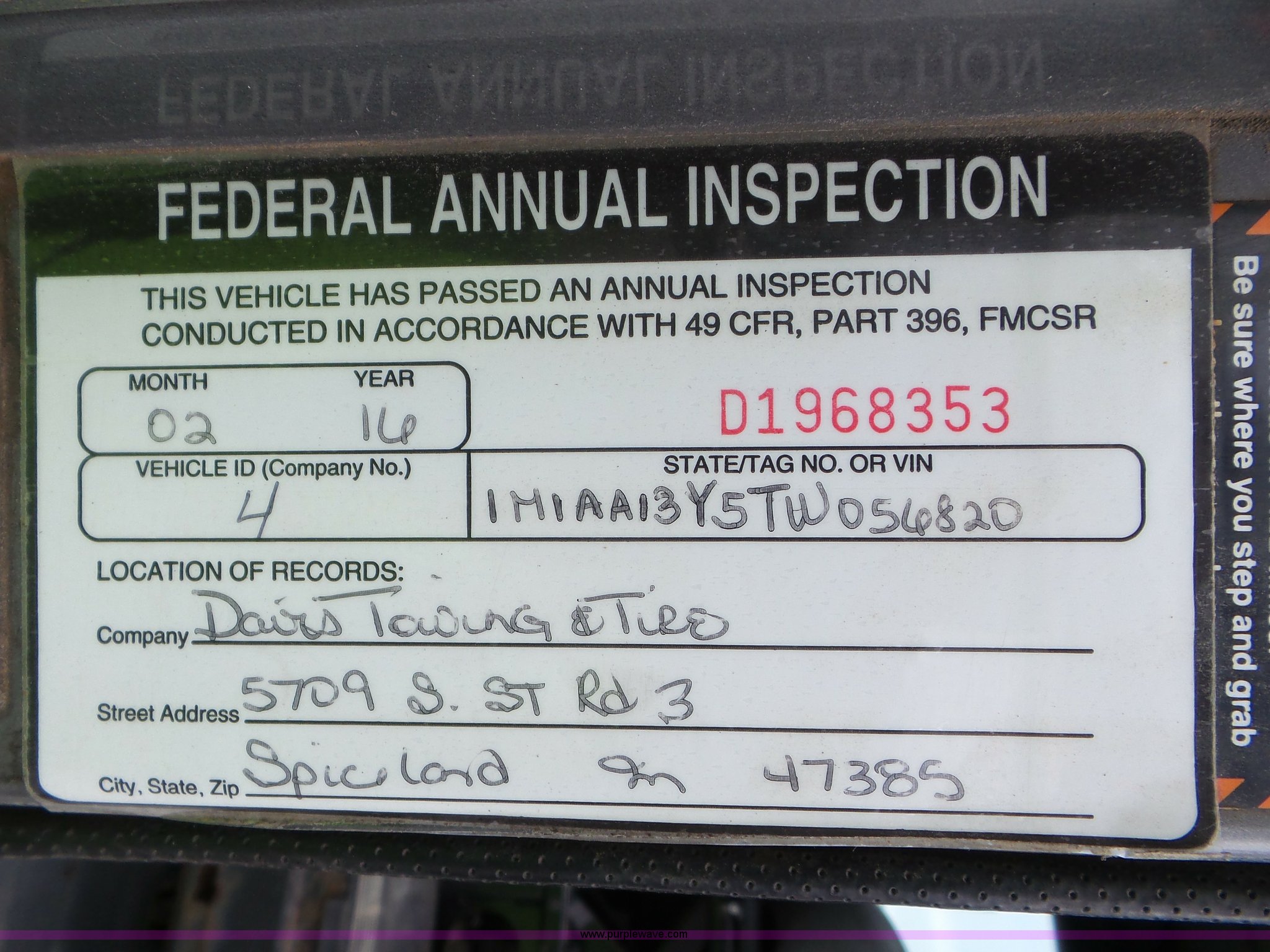 1996 Mack CH613 tank truck. 646,322 miles on odometer, 5,393 hours on meter, Mack E7 12.0L L6 diesel engine, Eaton Fuller nine speed manual transmission, Tandem axle, Inter-axle differential lock, AC and heat, Tilt, Telescoping steering wheel, Cruise, AM/FM/cassette, Heated mirrors, Air suspension seat, Air ride cab, Front tow hooks, PTO, 1,700 gallon stainless steel tank, Single fuel tank, Air suspension, Air brakes, Engine brake, 216" wheelbase, 265/75R22.5 tires, Tank leaks, Unit# 45463. Indiana title. Title distribution may be delayed up to 30 days from verification of funds and title assignment. 1M1AA13Y5TW056820. Crop Production Services. 4753 E US 40. Straughn, IN 47387