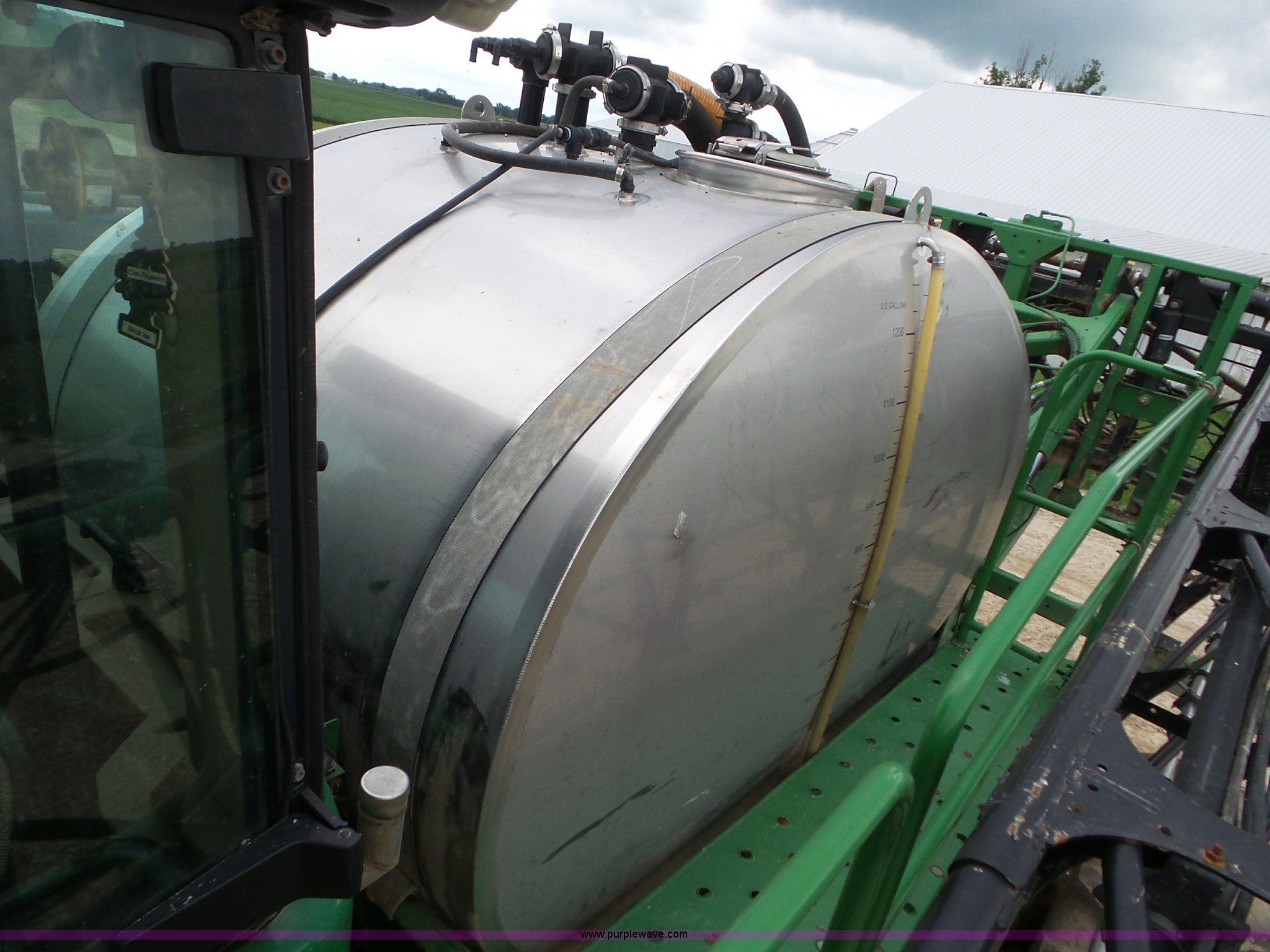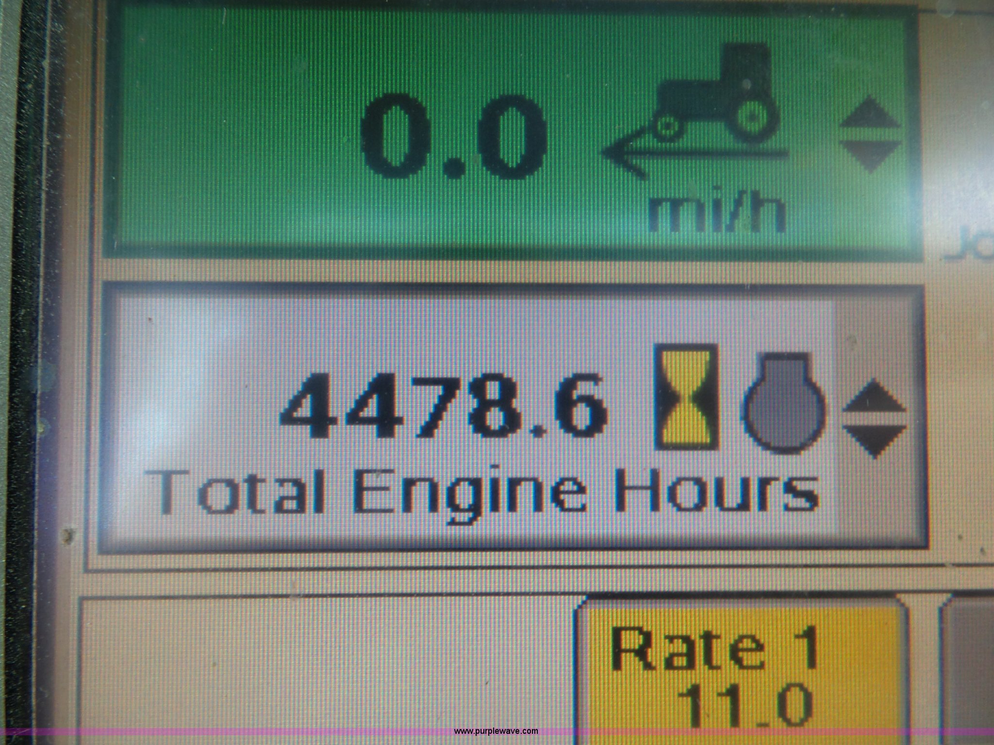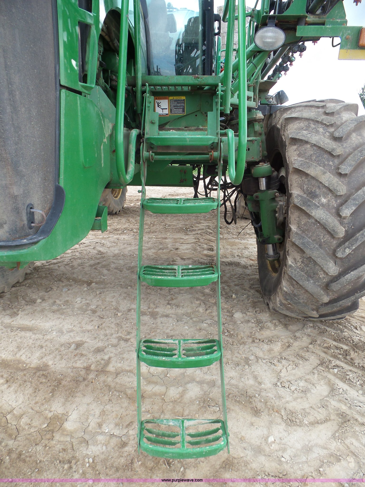 Purple Wave is selling a used Applicator Self Propelled in Indiana. This item is a 2010 John Deere 4930 self-propelled applicator with the following: 4,478 hours on meter, John Deere six cylinder turbo diesel engine, Hydrostatic transmission, 4F-4R gears, Four wheel drive, 1,200 gallon stainless steel solution tank, Front fill, Stainless steel chemical eductor tank, Foam marker tank, 120'W boom, Seven boom sections, Break-away boom, Hydraulic boom fold, Hydraulic height control, Automatic height control, 15" nozzle spacing, Five-way nozzle bodies, Load Command with truck arm, AC and heat, AM/FM, Air suspension seat, Rotary beacon, Work lights, GPS monitor, GreenStar GPS receiver, Auto steer, Ground radar, Hydraulic ladder, Hydraulic axle width adjust, 620/70R46 flotation tires, Serial 1N04930XCA0013032, Unit# 25860