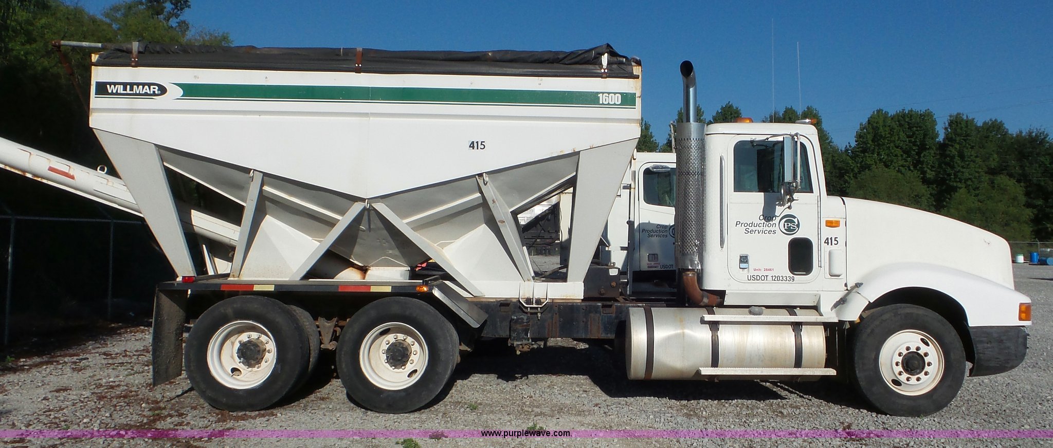 Purple Wave is selling a used Fertilizer or Feed Delivery Truck in Arkansas. This item is a 1993 International 9400 tender truck with the following: 774,550 miles on odometer, Cummins N14 14.0L L6 turbo diesel engine, Eaton Fuller nine speed manual transmission, Tandem axle, Inter-axle differential lock, AC and heat, AM/FM/cassette, Heated mirrors, Air suspension seat, PTO, Willmar 1600 tender bed, 16'L x 8'W, Steel construction, Approximately 13'L x 8" diameter auger, Tarp, Dual fuel tanks, 211" wheelbase, Air suspension, Air brakes, 11R22.5 tires, GVWR 52,000 lbs, FAWR 12,000 lbs, IAWR 20,000 lbs, RAWR 20,000 lbs, Transmission spliter issue, Unit# 28461