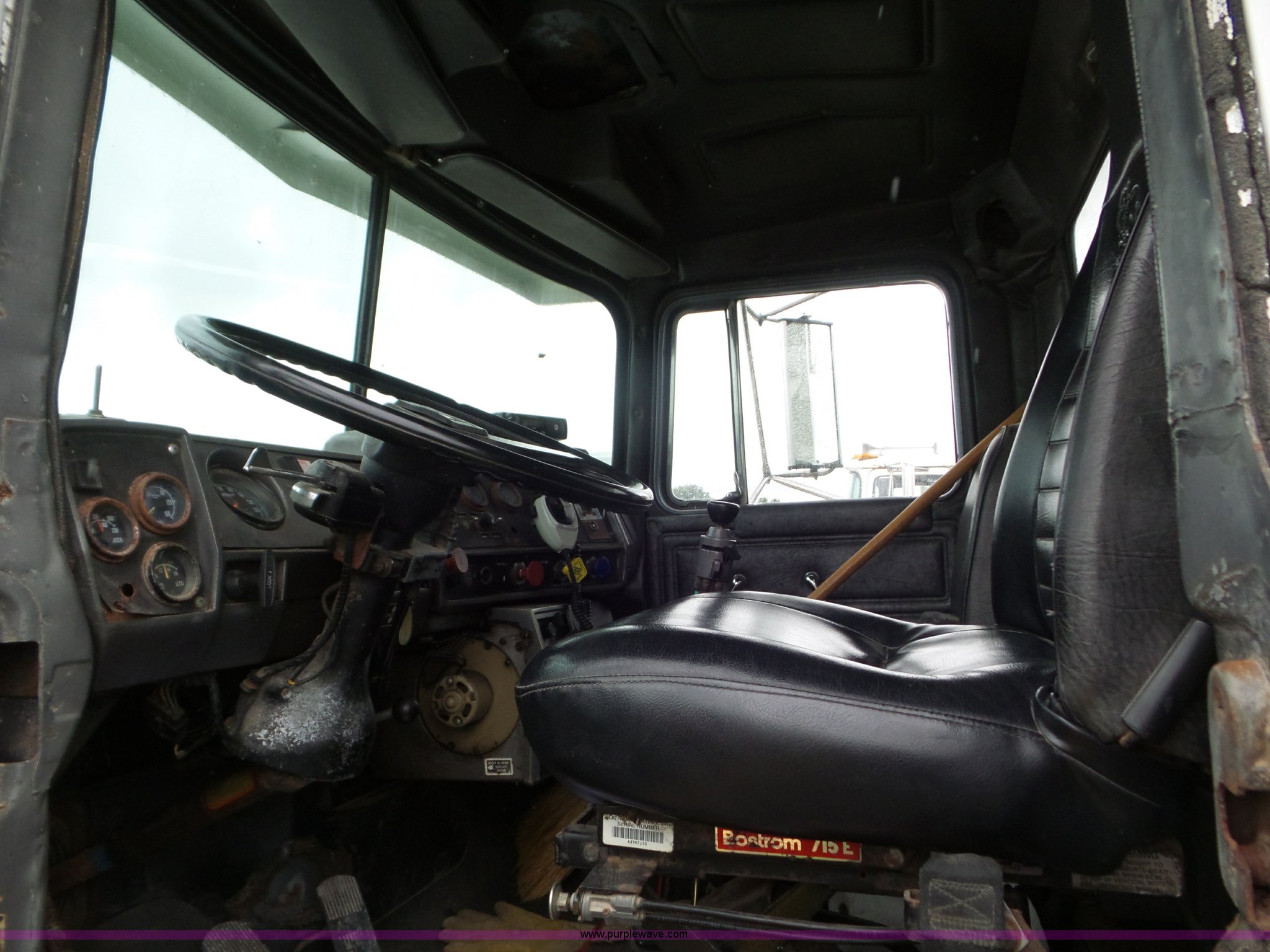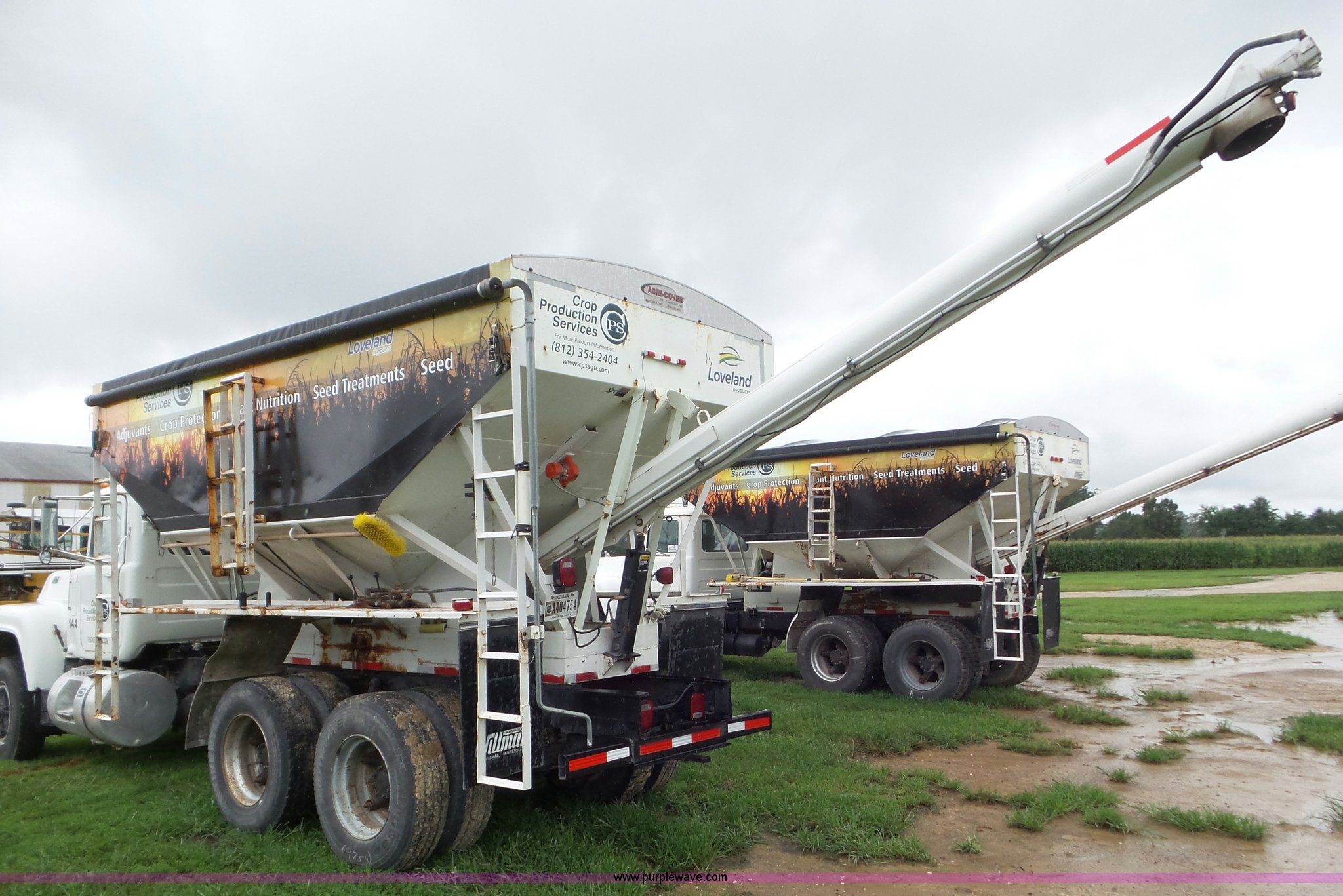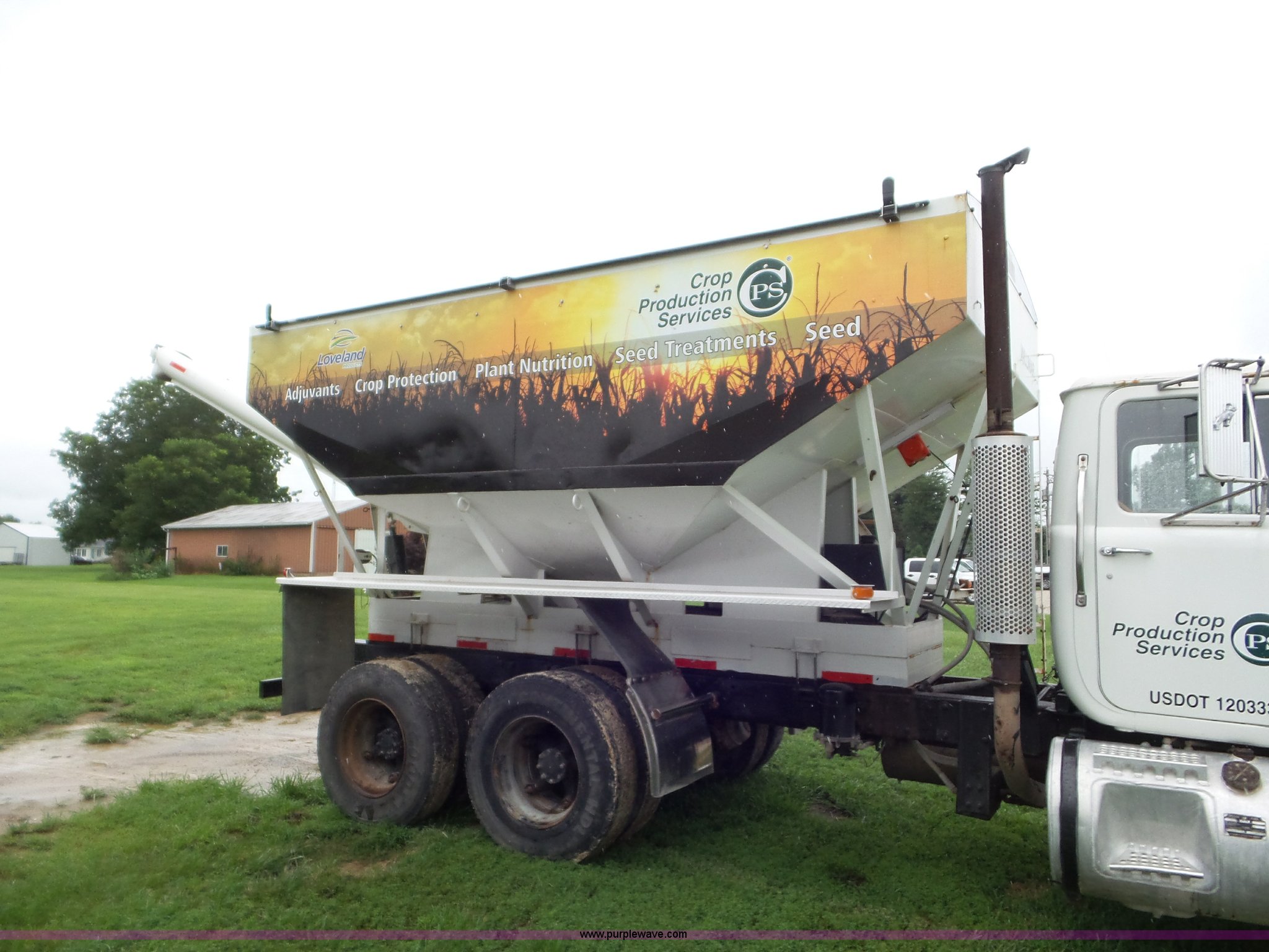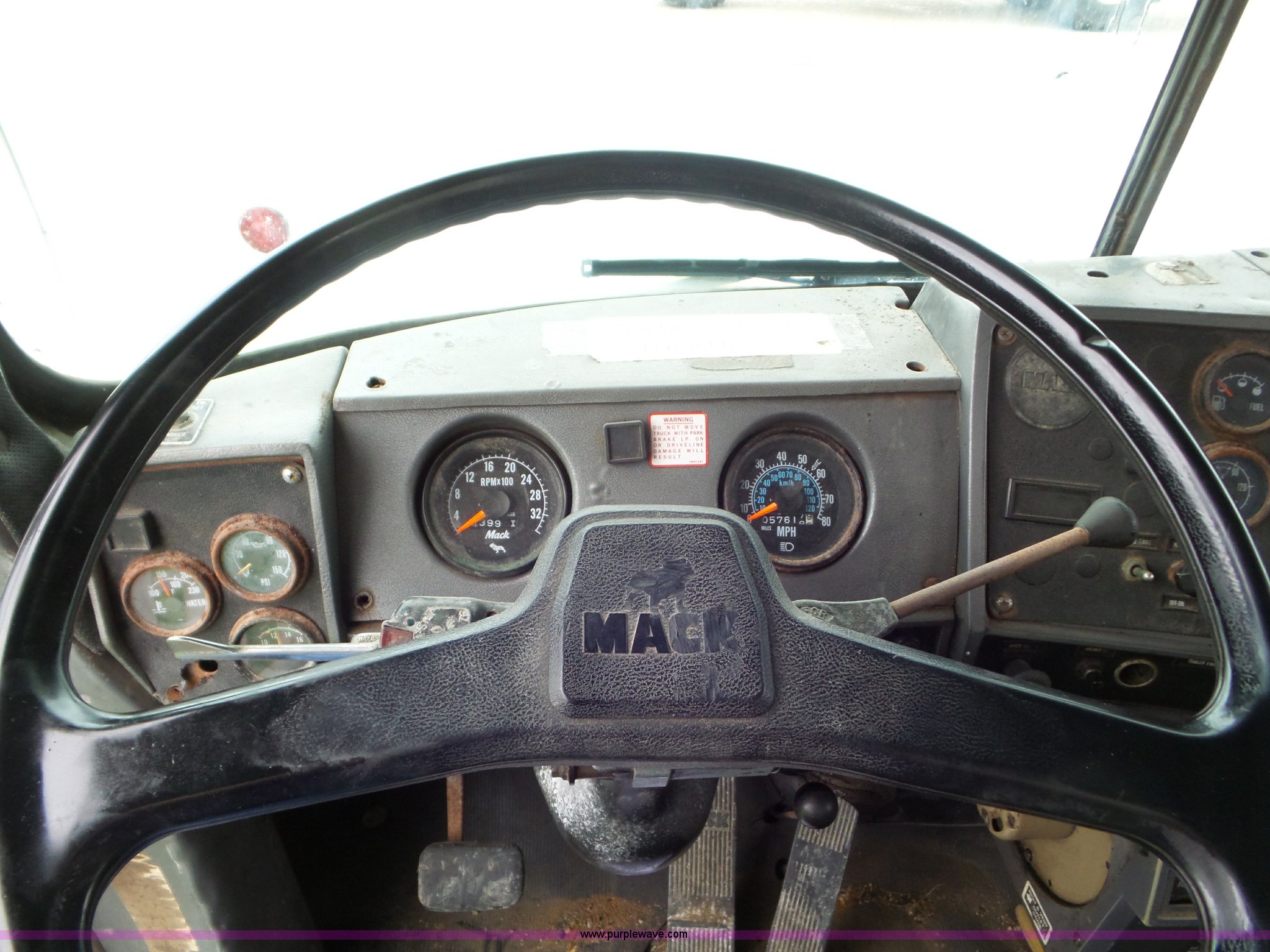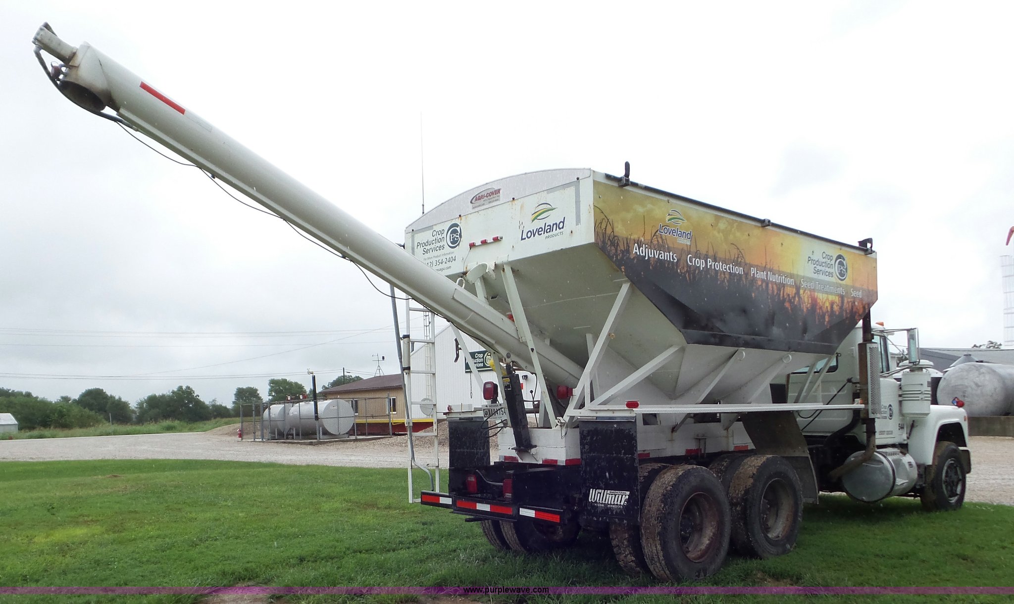 Purple Wave is selling a used Fertilizer or Feed Delivery Truck in Indiana. This item is a 1987 Mack R686ST tender truck with the following: 57,618 miles on odometer, 4,399 hours on meter, Mack E6 11.0L L6 turbo diesel engine, Nine speed manual transmission, Tandem axle, Inter-axle differential lock, Heat, AM/FM, Air suspension seat, Air ride cab, PTO, Exterior visor, Willmar steel tender bed, 16'L x 8'W, Approx. 12'L x 8" diameter auger, Two valve control, Rollover tarp, Dual fuel tanks, Pin hitch, Camelback suspension, Air brakes, 206" wheelbase, 11R22.5 tires, Hopper vibrator not included, Unit# 45443
