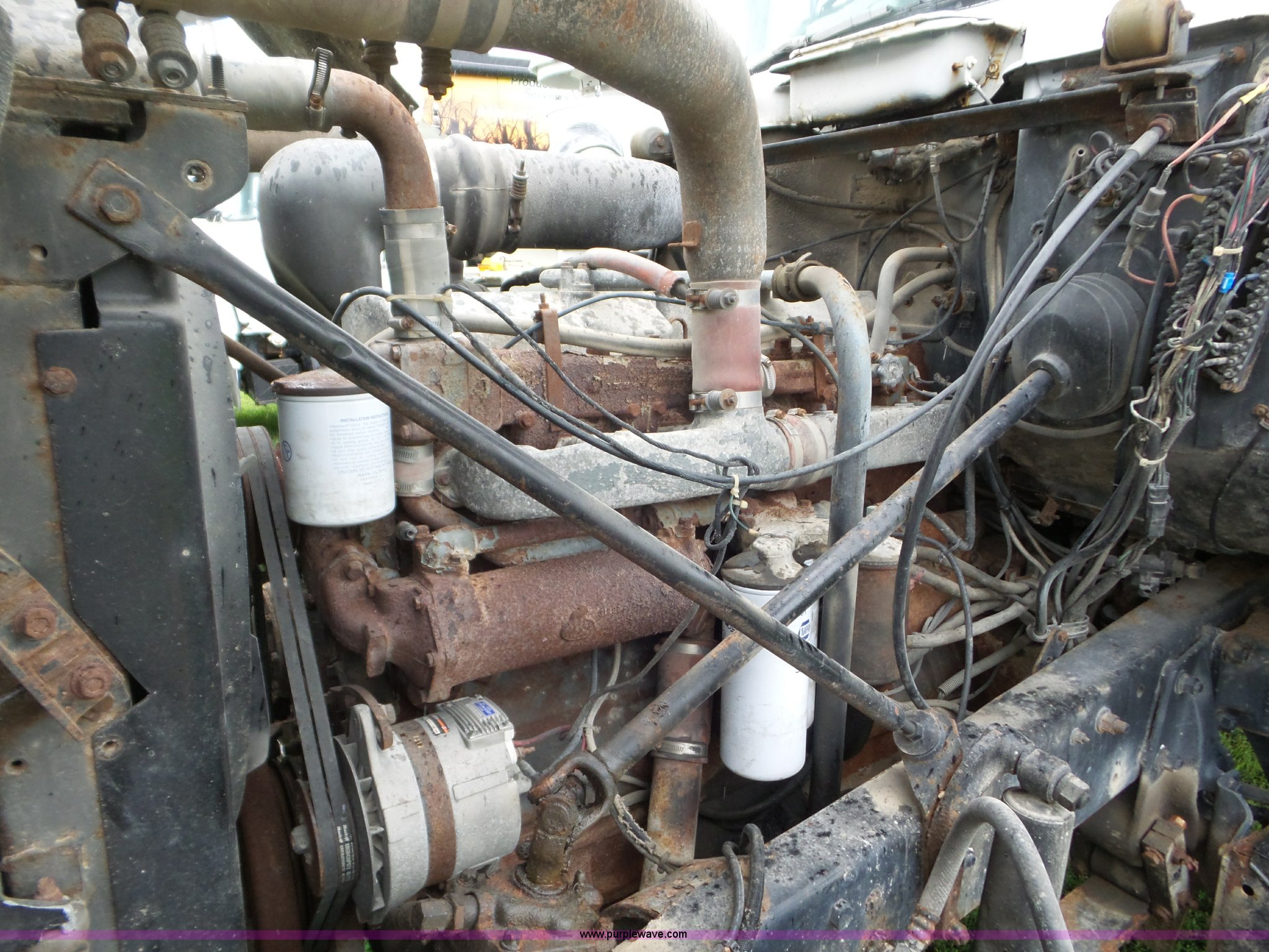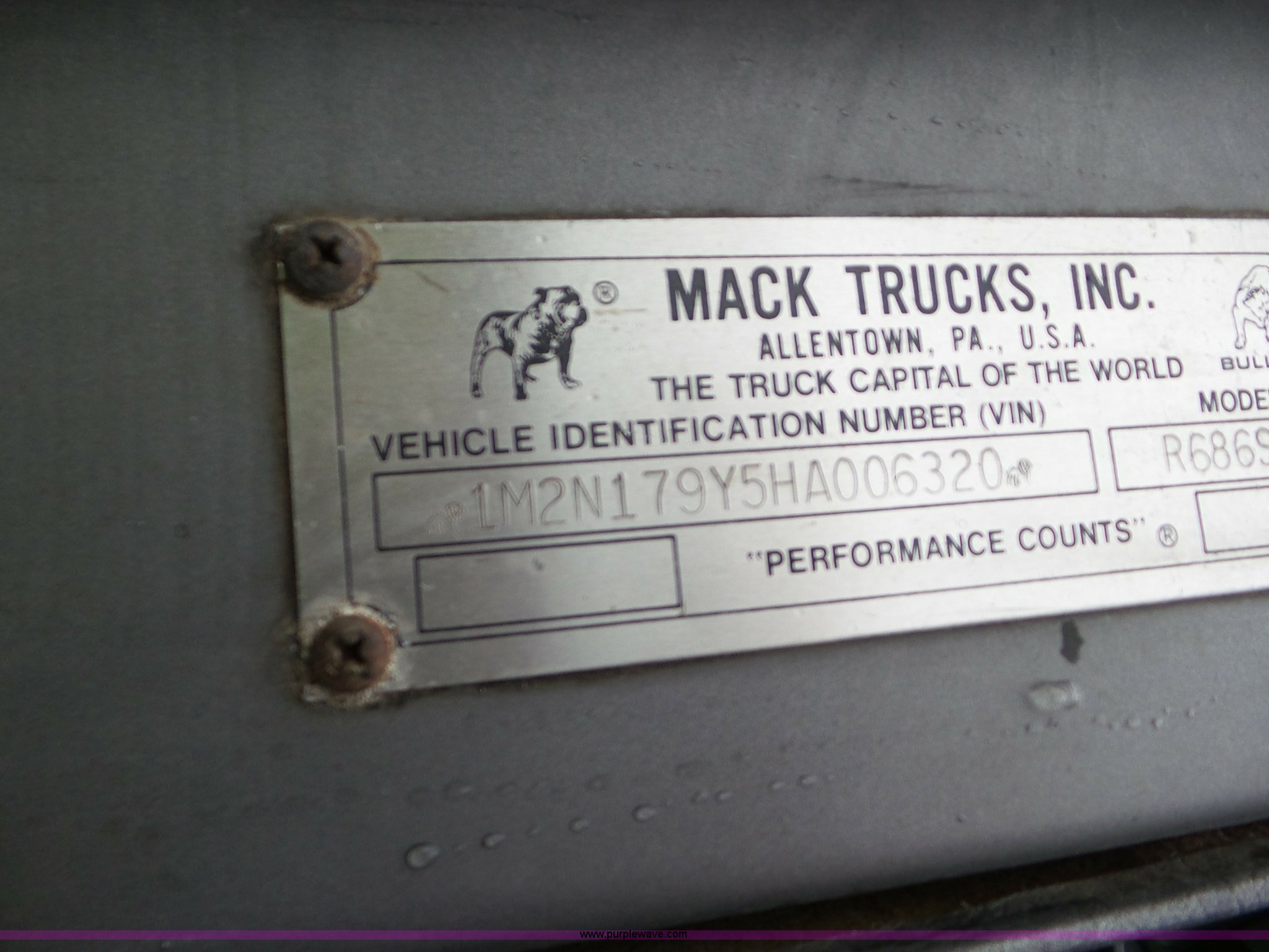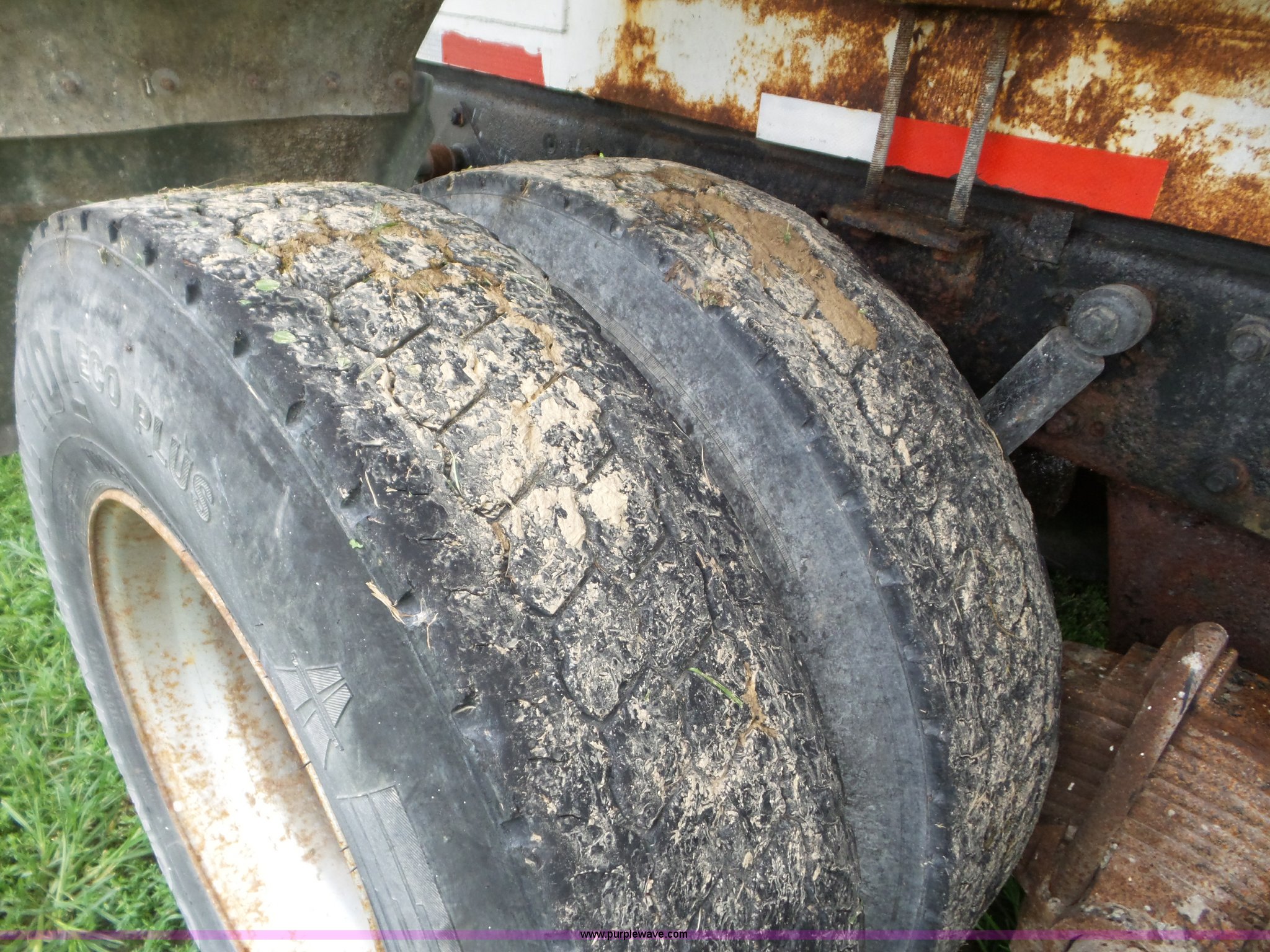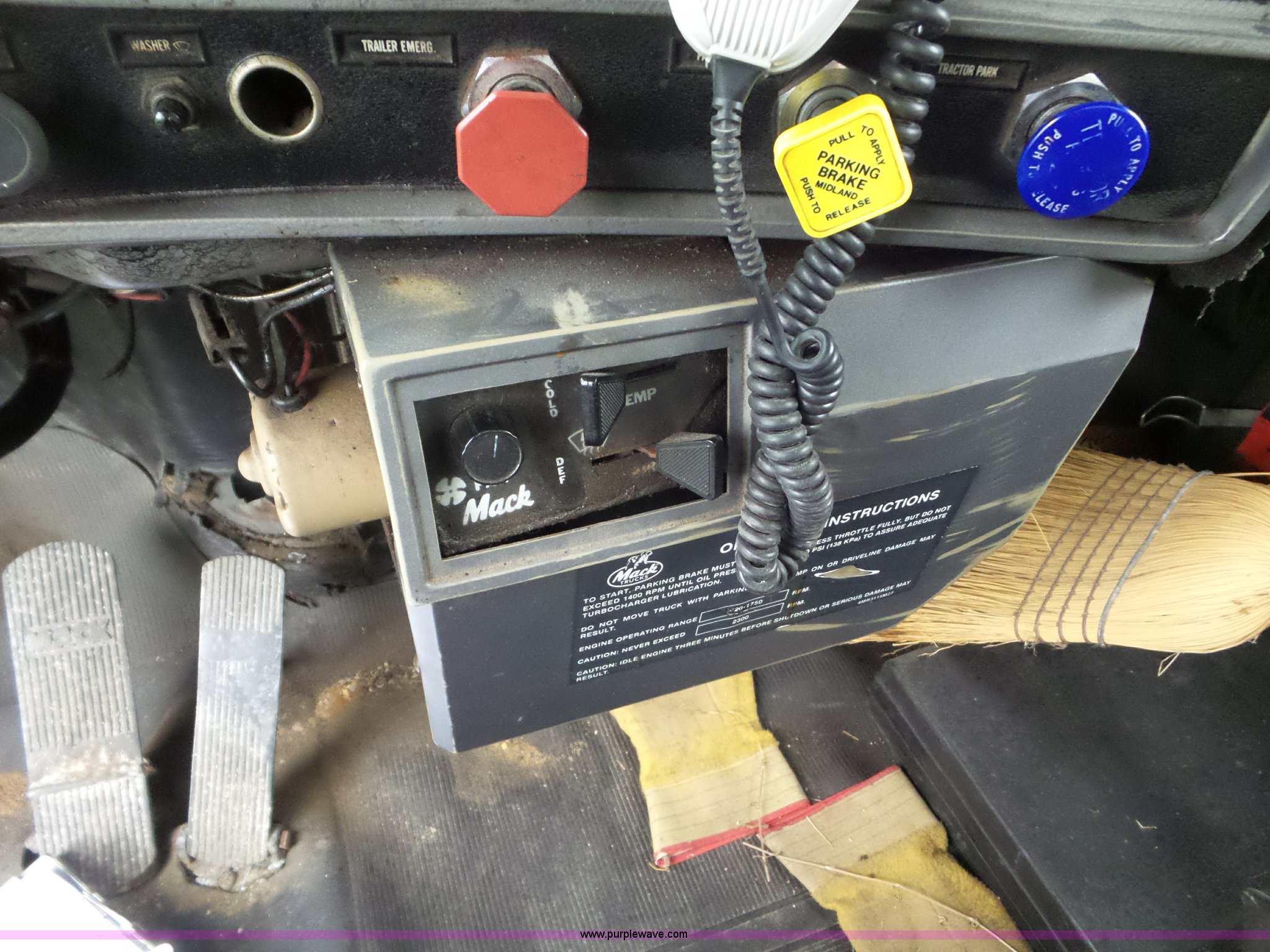 Purple Wave is selling a used Fertilizer or Feed Delivery Truck in Indiana. This item is a 1987 Mack R686ST tender truck with the following: 57,618 miles on odometer, 4,399 hours on meter, Mack E6 11.0L L6 turbo diesel engine, Nine speed manual transmission, Tandem axle, Inter-axle differential lock, Heat, AM/FM, Air suspension seat, Air ride cab, PTO, Exterior visor, Willmar steel tender bed, 16'L x 8'W, Approx. 12'L x 8" diameter auger, Two valve control, Rollover tarp, Dual fuel tanks, Pin hitch, Camelback suspension, Air brakes, 206" wheelbase, 11R22.5 tires, Hopper vibrator not included, Unit# 45443