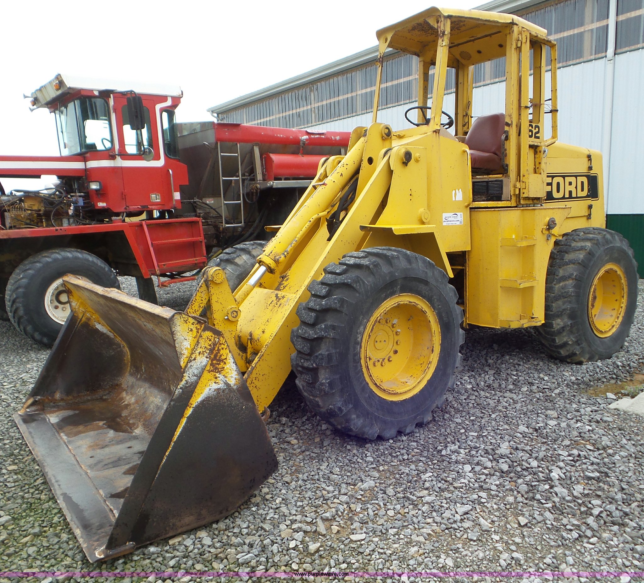 Purple Wave is selling a used Wheel Loader in Kentucky. This item is a Ford A-62 wheel loader with the following: 8,330 hours on meter, Four cylinder turbo diesel engine, 2F-1R gears, Front differential lock, Canopy, Suspension seat, 94"W bucket, Weld-on cutting edge, 17.5-25 tires, High gear inoperable