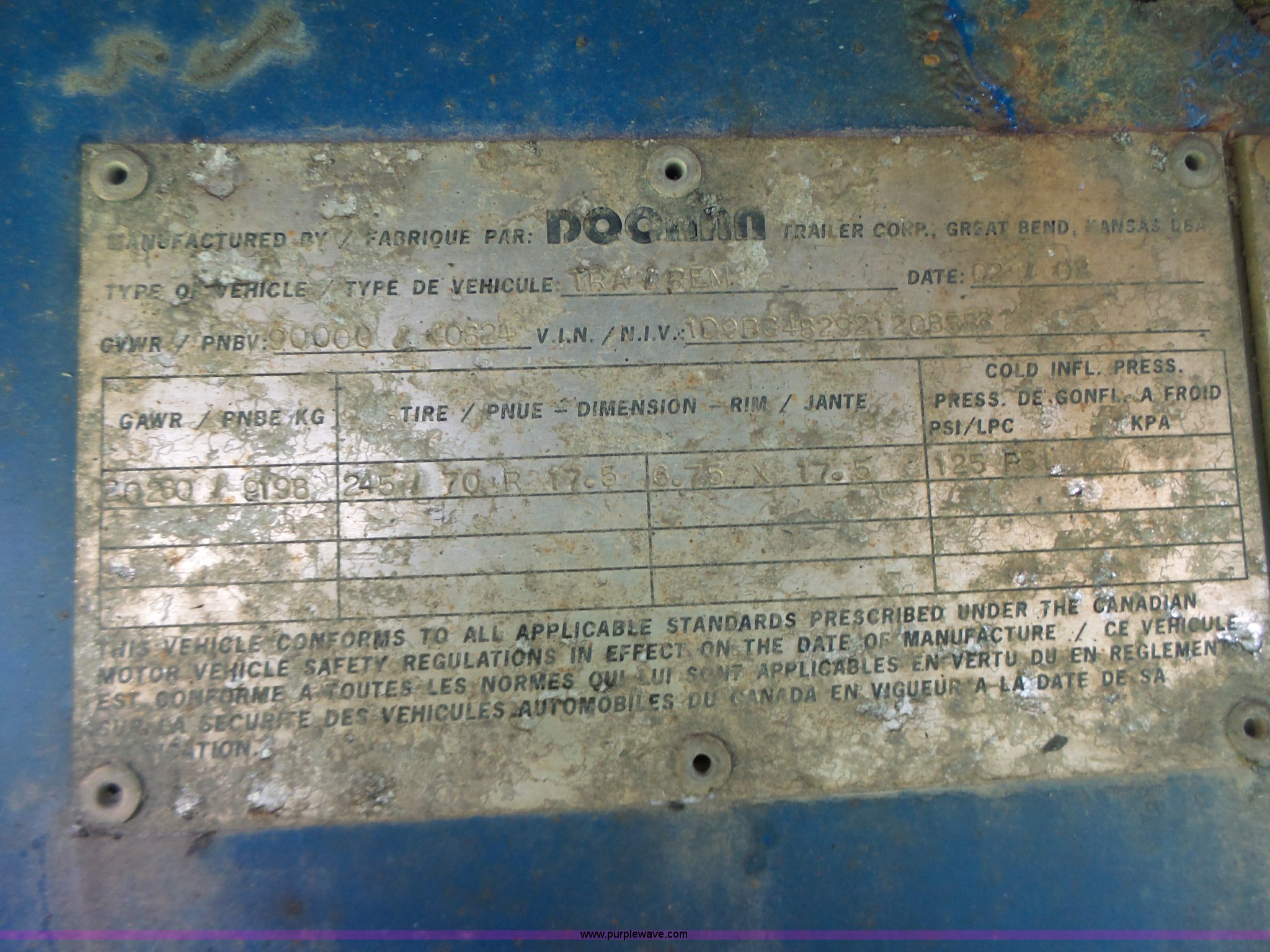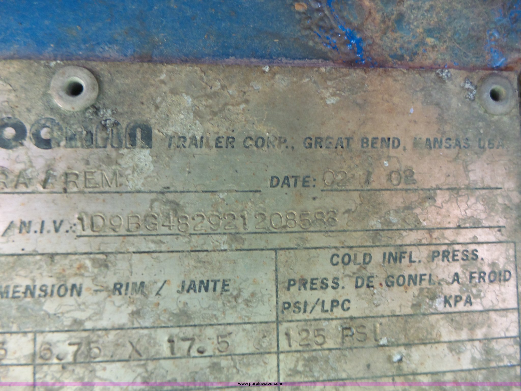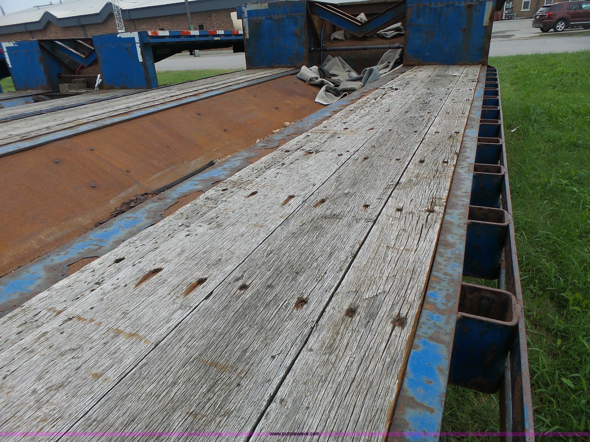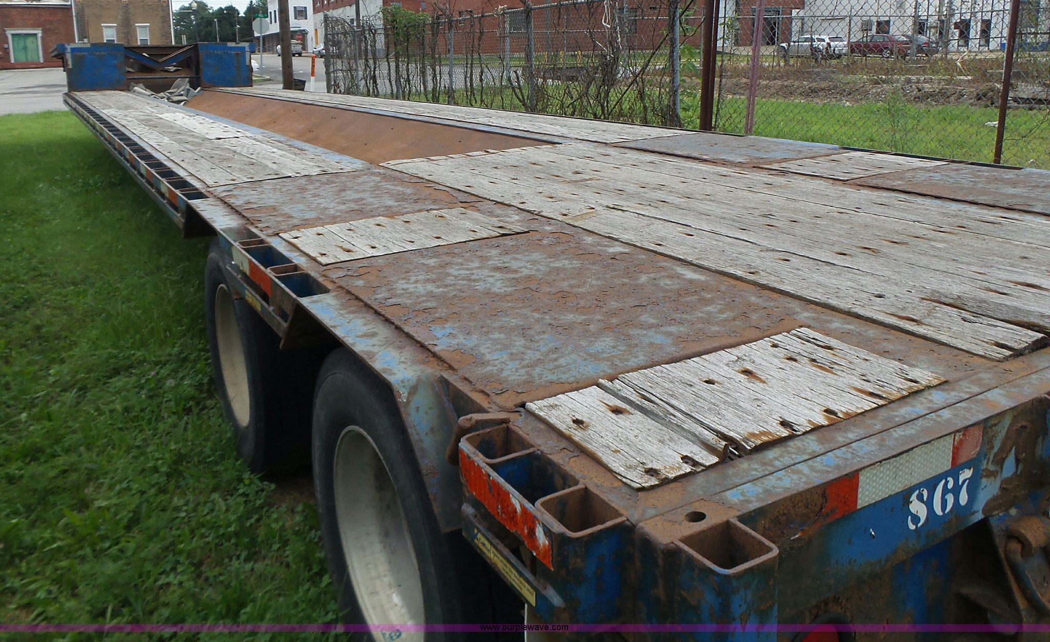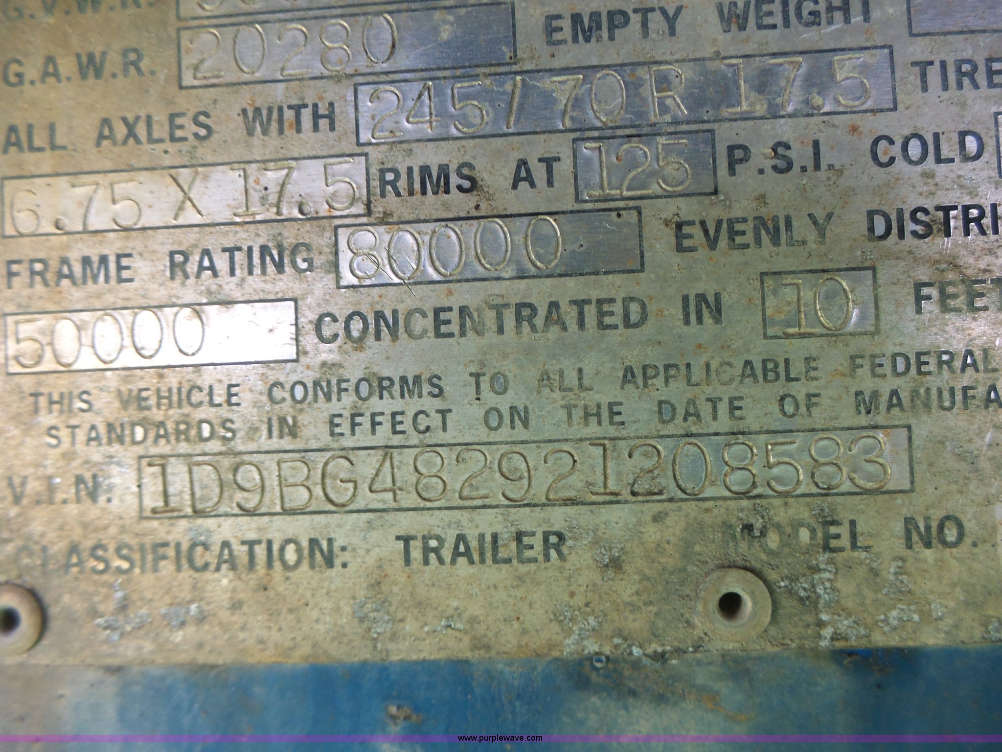 Purple Wave is selling a used Equip. Trailer in Missouri. This item is a 2002 Doonan 482DB14B drop deck equipment trailer with the following: 48'L x 8.5'W overall, 10'L top deck, 38'L main deck, 5'L slide-out tail, 32" deck height, Fifth wheel plate, Dual leg landing gear, Air suspension, Air brakes, Tandem axle, Aluminum wheels, 245/70R17.5 tires, GVWR 80,000 lbs