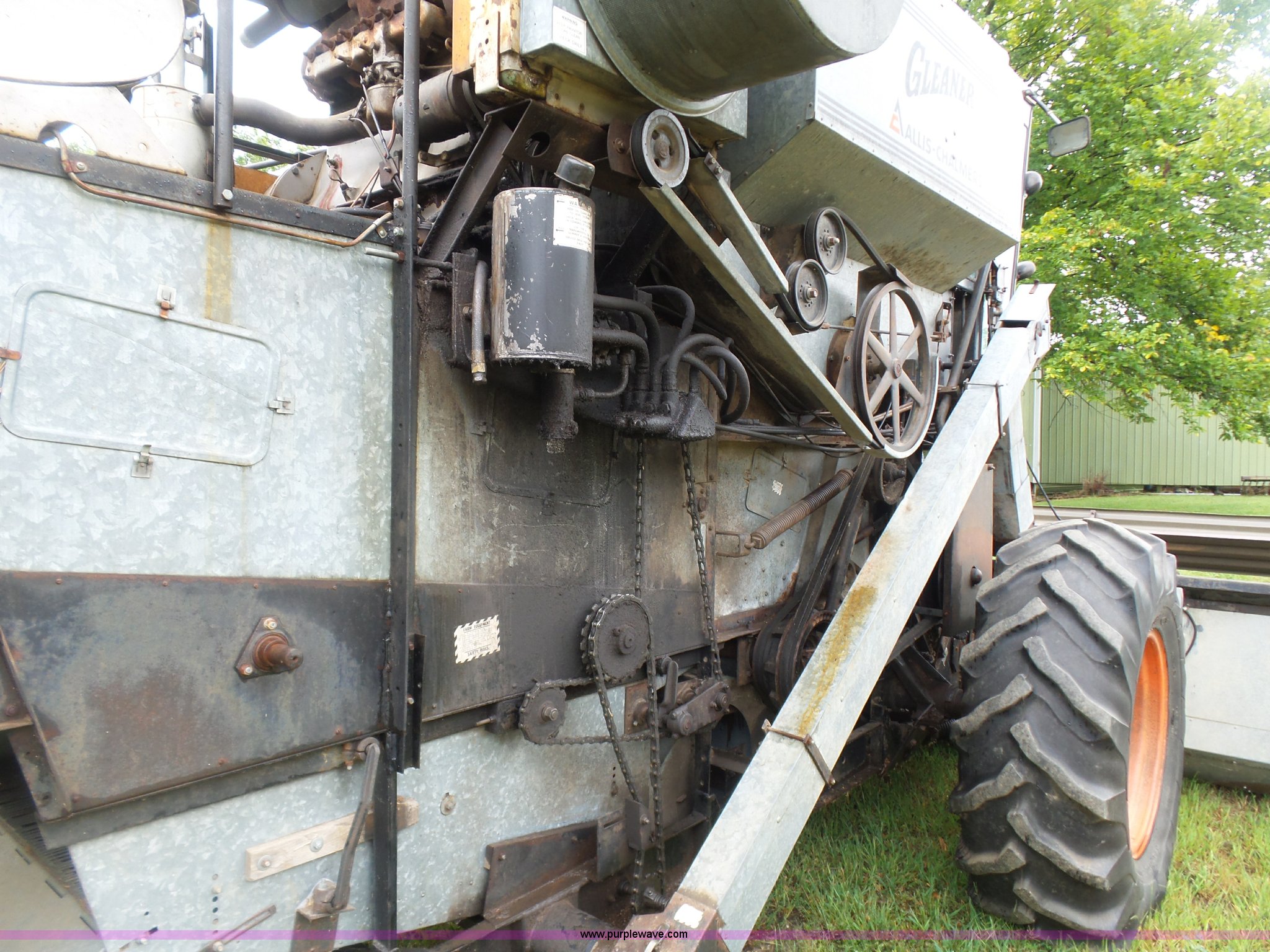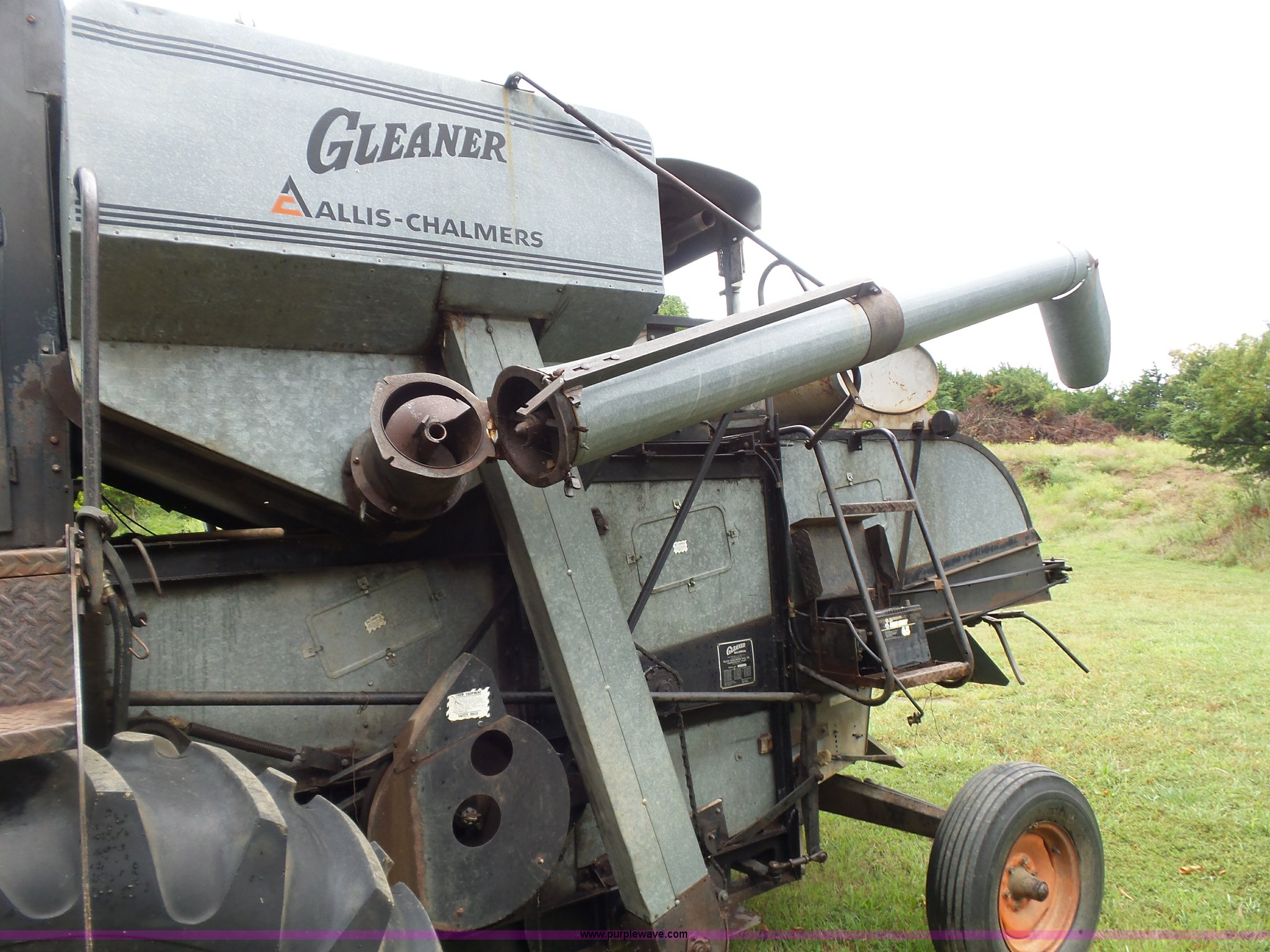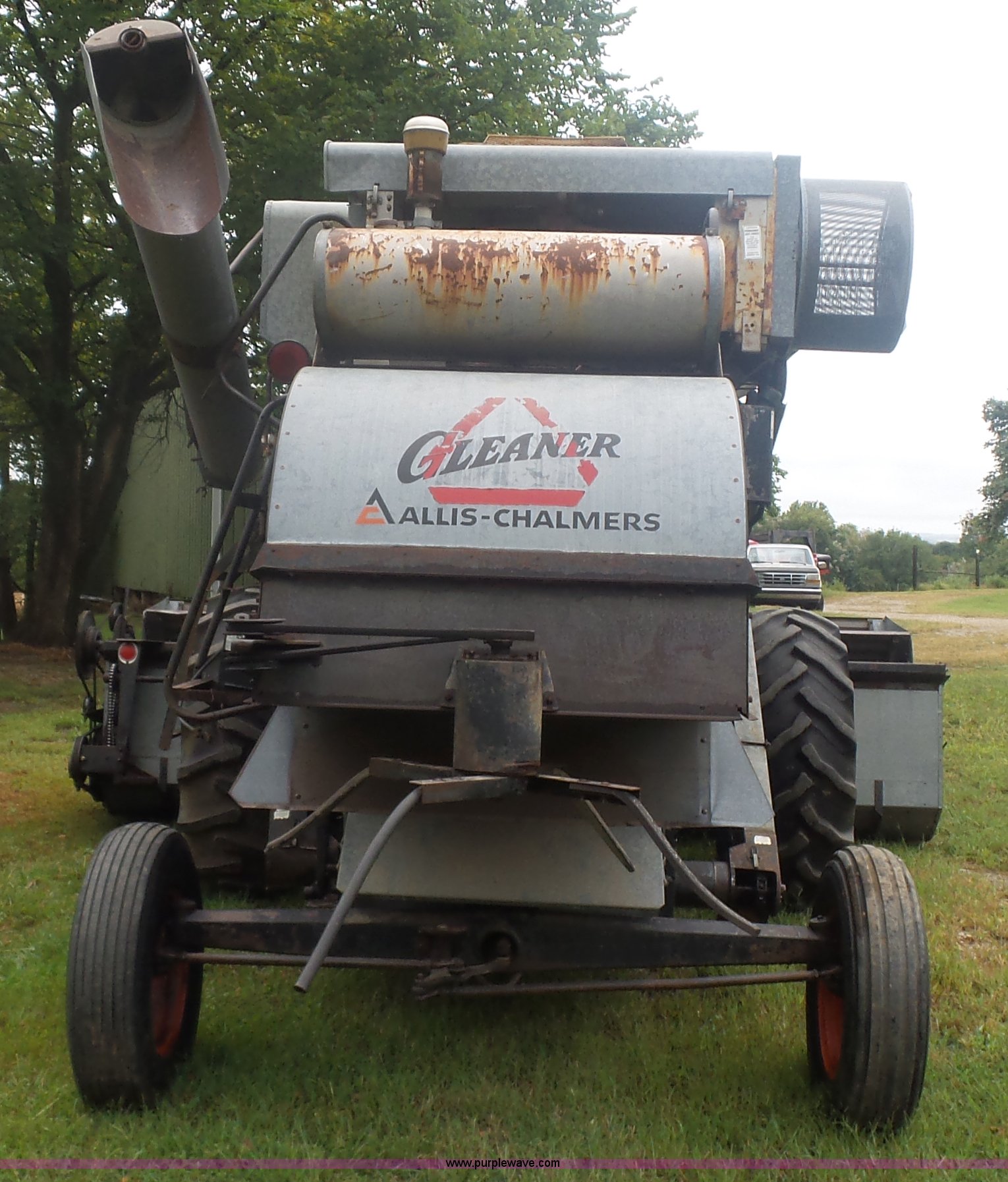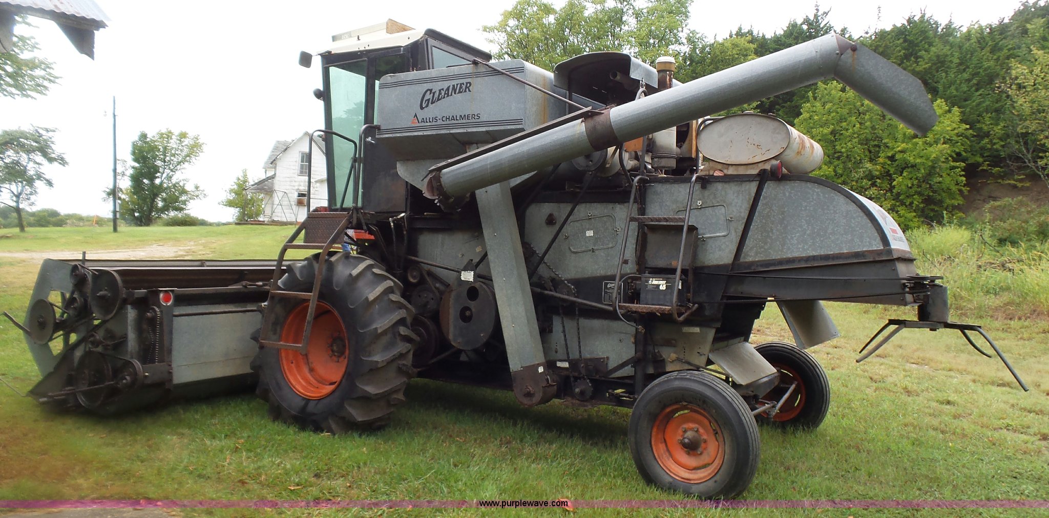 Purple Wave is selling a used Combine in Kansas. This item is a Gleaner A combine with the following: Allis Chalmers G230 six cylinder gas engine, Serial G37748, Hydrostatic transmission, AC, Chaff spreader, 9'L unloading auger, Allis Chalmers A rigid head, 14'W, Serial A64011, 18.4-23 front tires, 7.50x16 rear tires, Unknown operating condition, Serial A39411