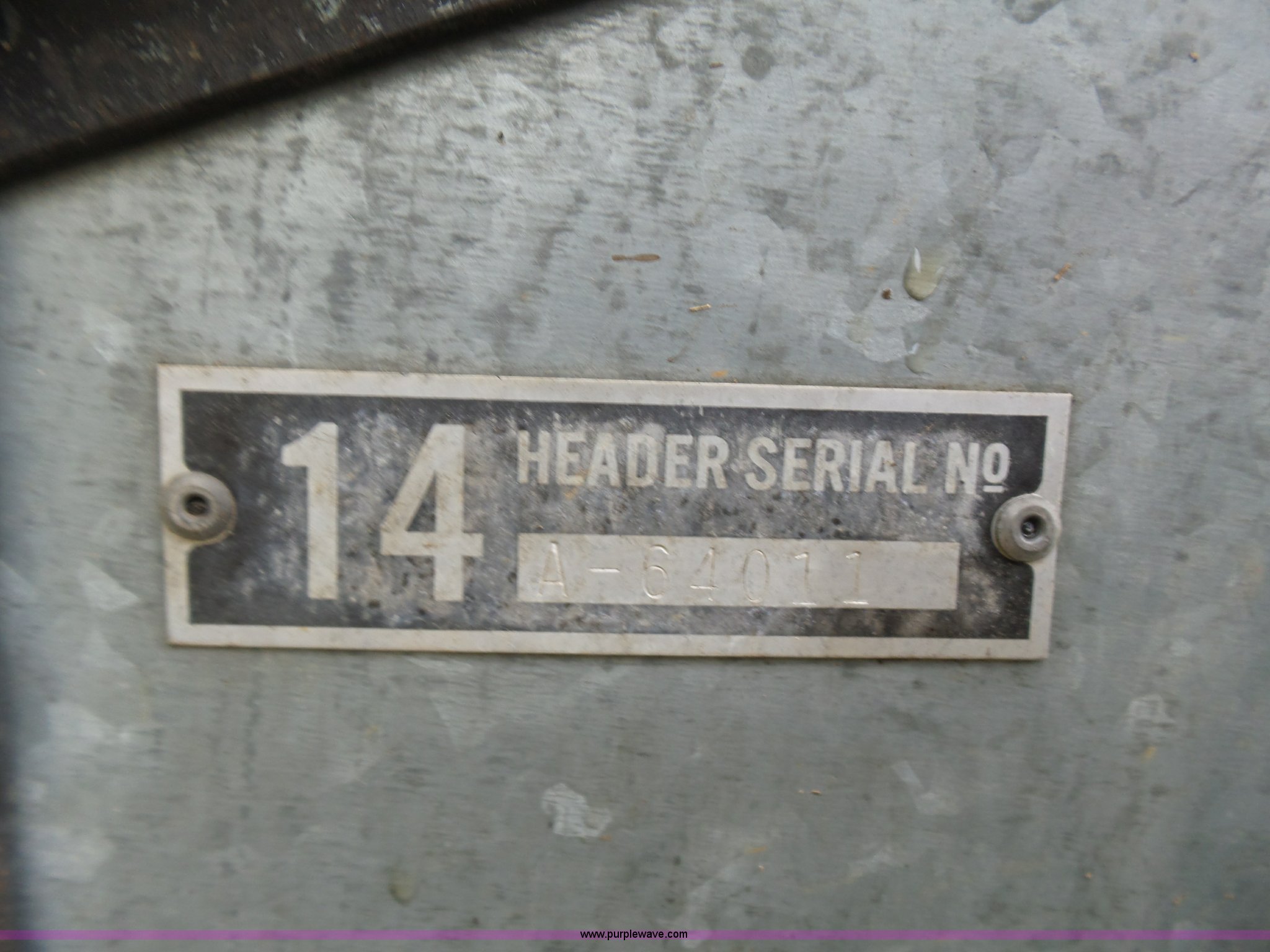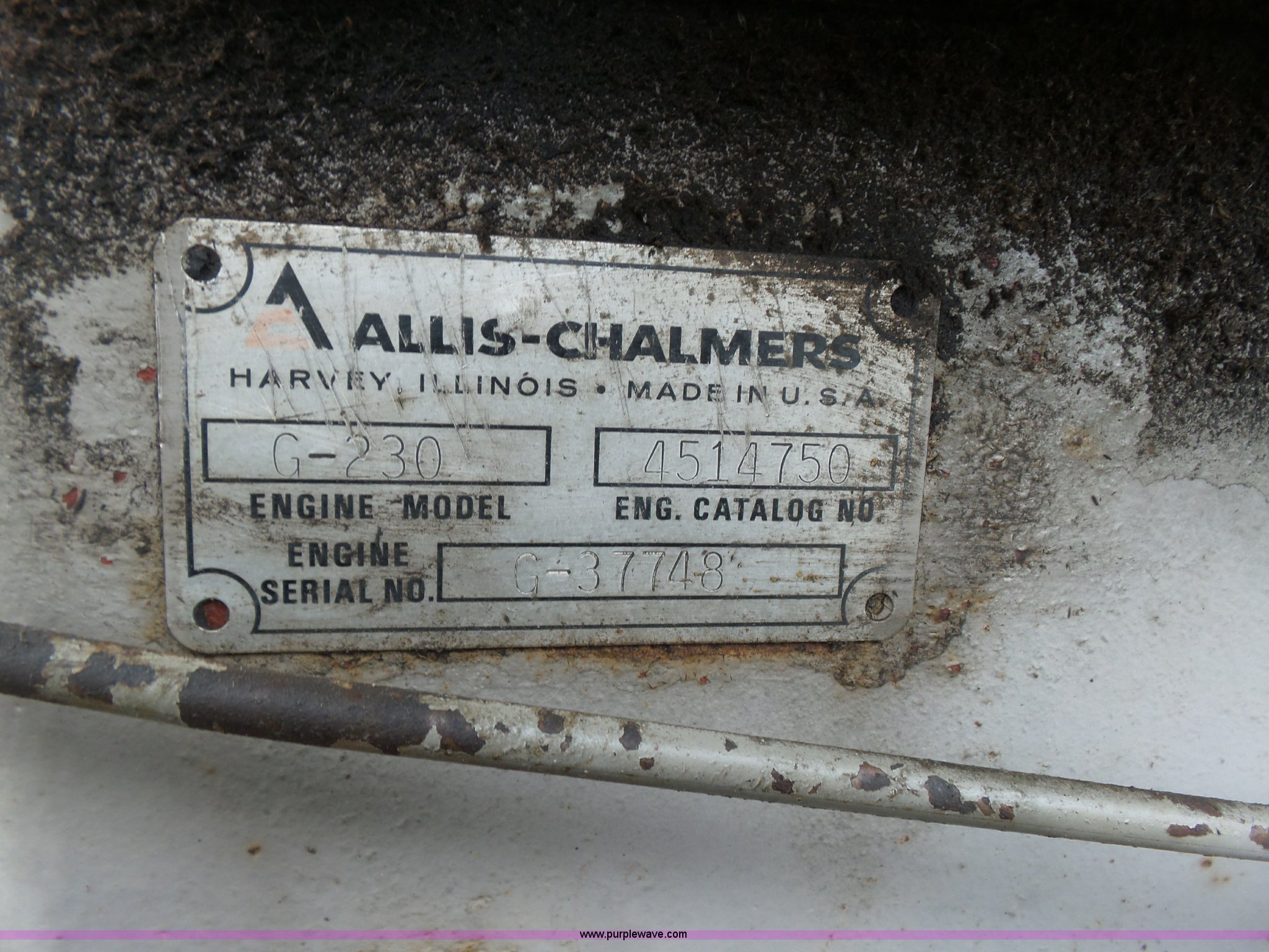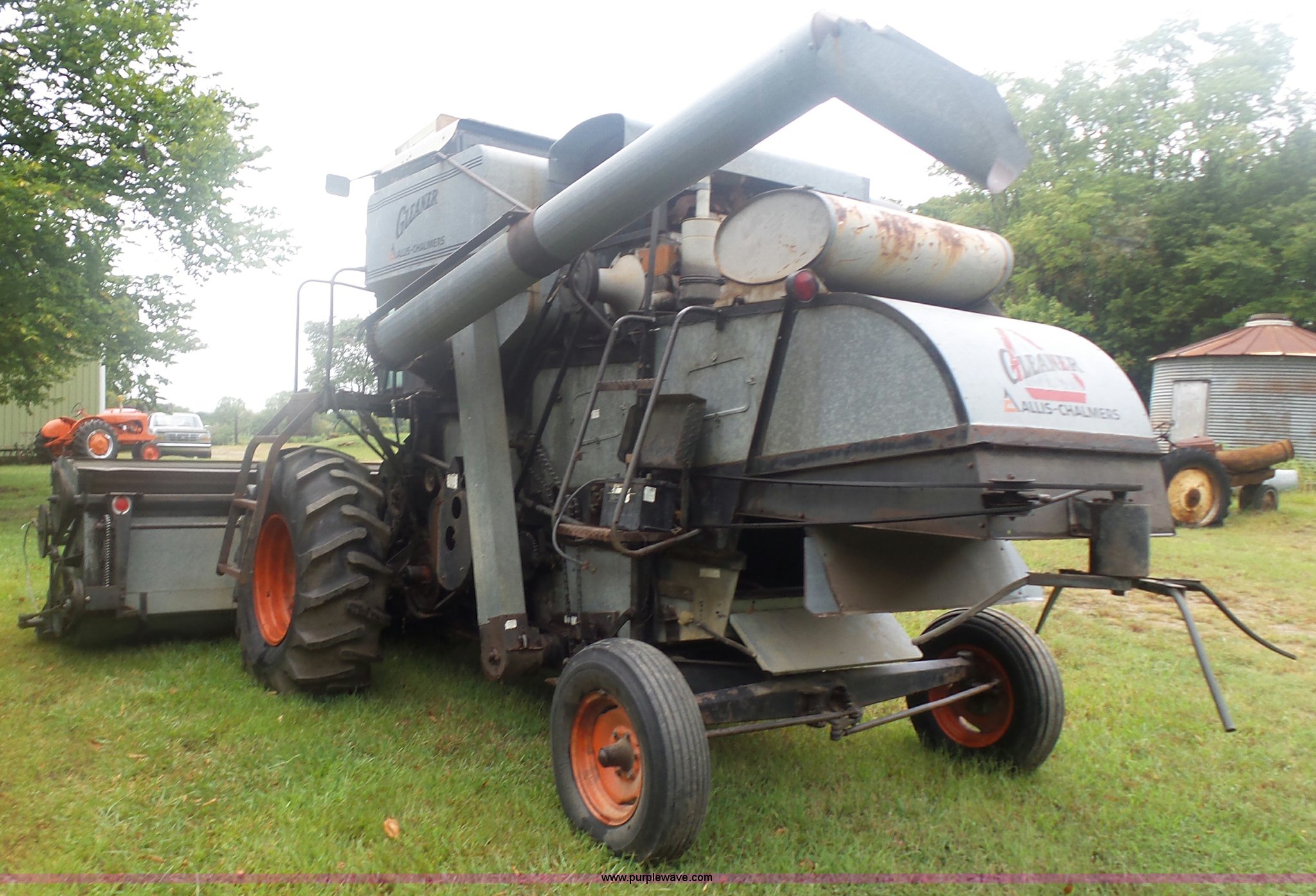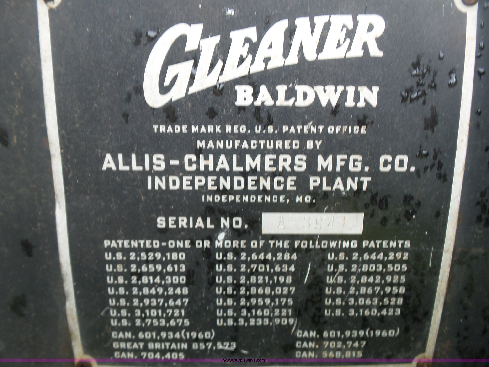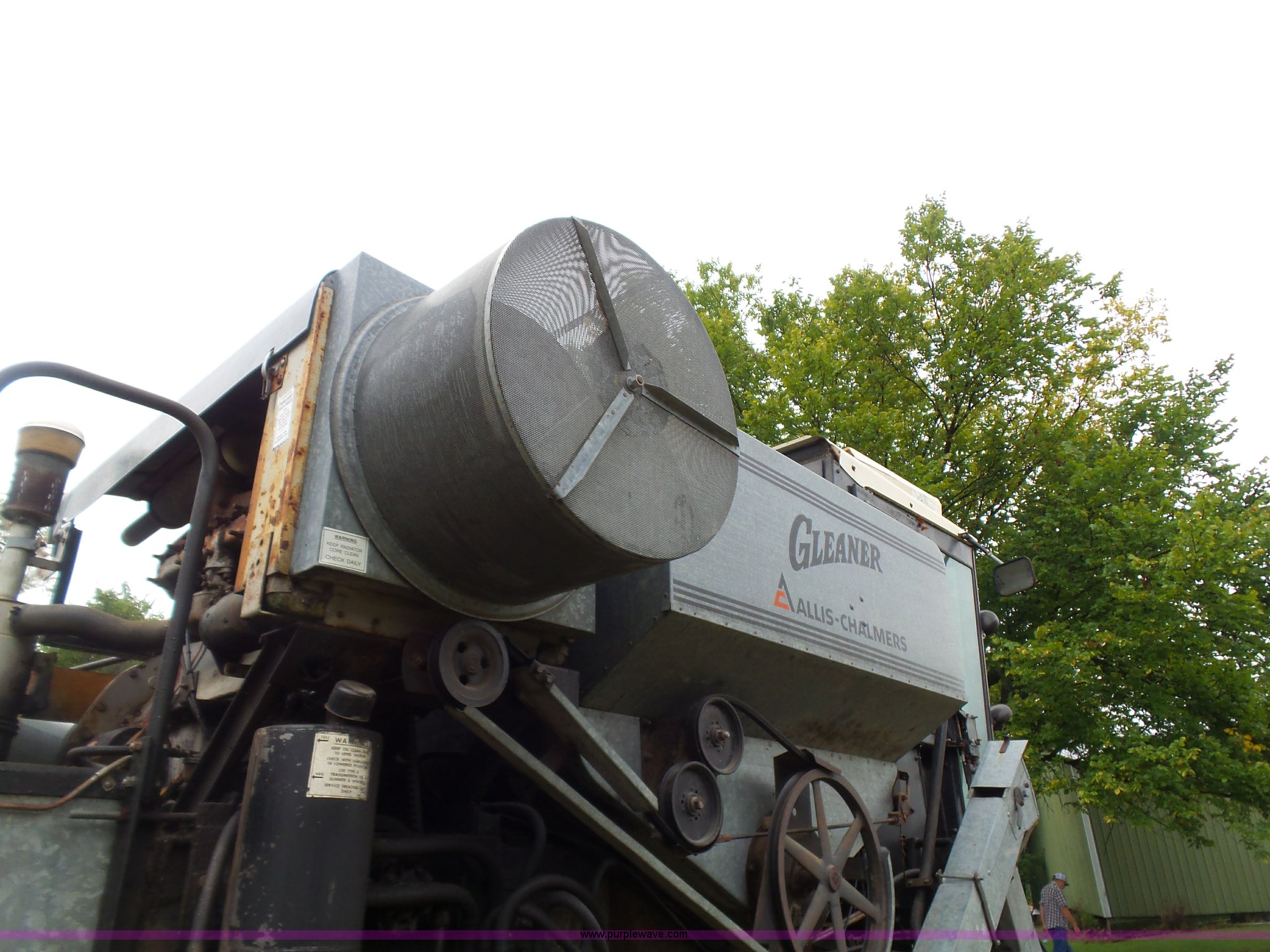 Purple Wave is selling a used Combine in Kansas. This item is a Gleaner A combine with the following: Allis Chalmers G230 six cylinder gas engine, Serial G37748, Hydrostatic transmission, AC, Chaff spreader, 9'L unloading auger, Allis Chalmers A rigid head, 14'W, Serial A64011, 18.4-23 front tires, 7.50x16 rear tires, Unknown operating condition, Serial A39411
