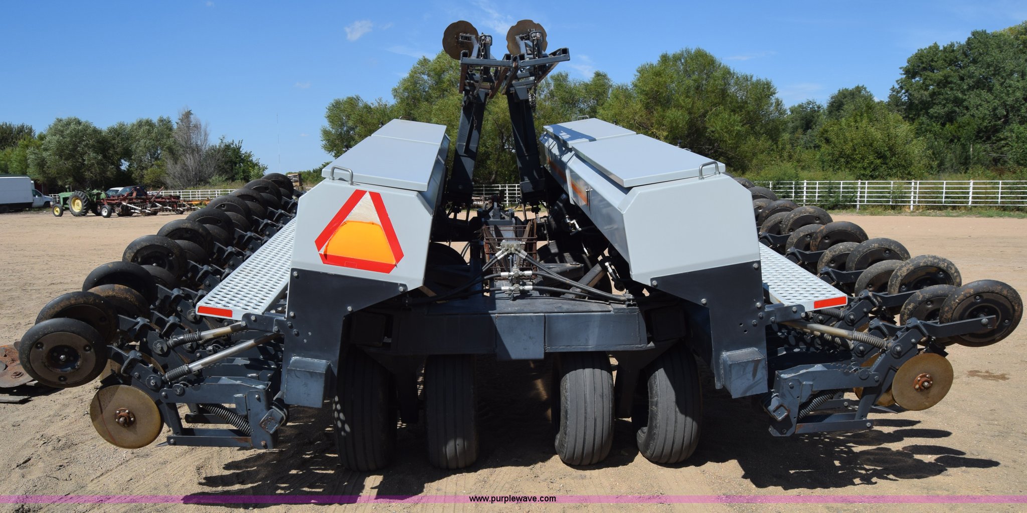 Purple Wave is selling a used Grain Drill or Seeder in Kansas. This item is a 2000 CrustBuster 4030 no-till grain drill with the following: 36 row units, 11" row spacing, (2) marker arms, Bulk fill system, Double disk openers, Single rubber closing system, Pin hitch, (8) 11-15 transport tires