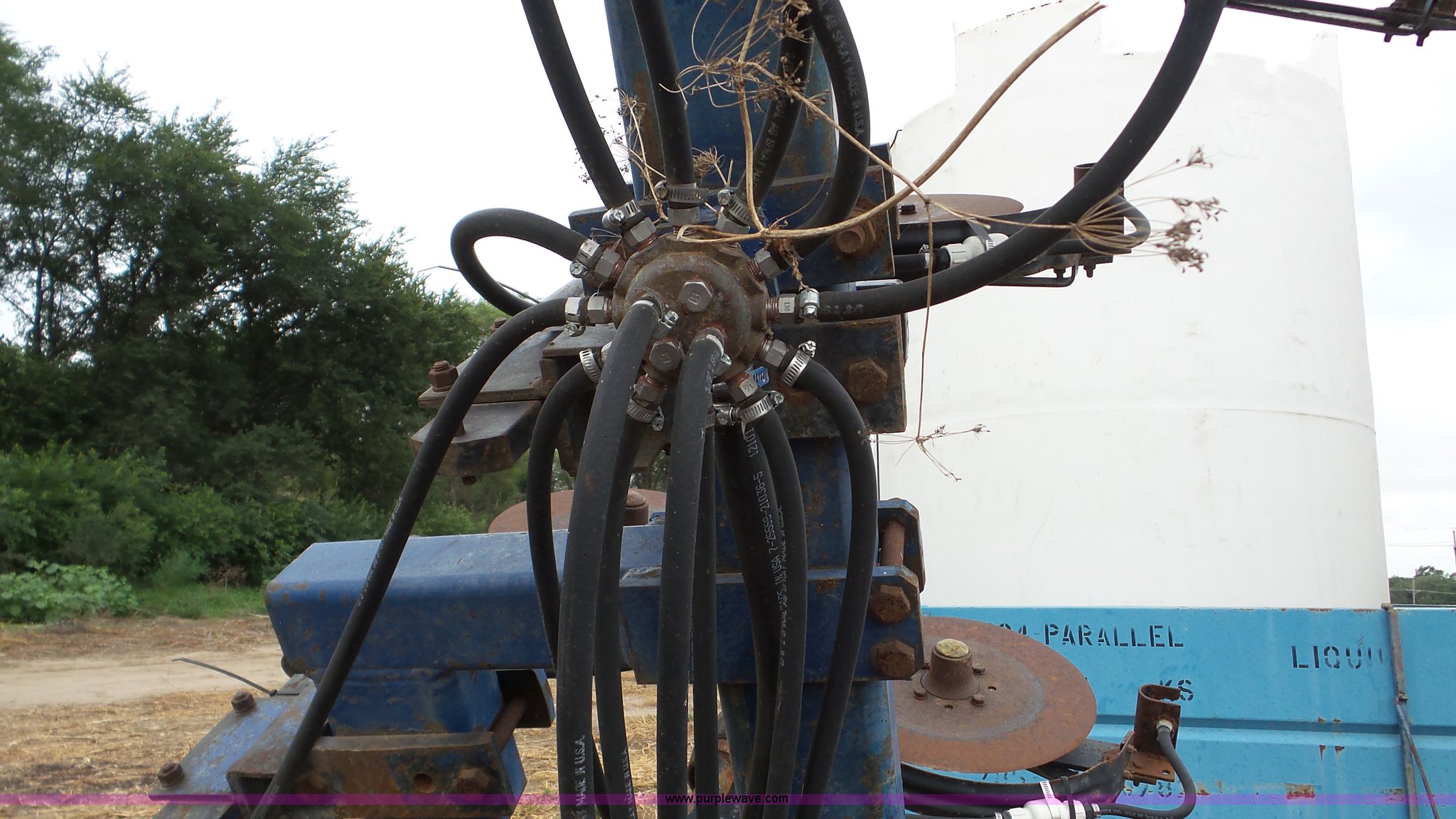 Purple Wave is selling a used Applicator Pull Type in Kansas. This item is a Blu-Jet Little Husky liquid applicator with the following: 31'W, (25) knives with coulters, 20" spacing, 1,000 gallon tank, Running gear, 12.5-15 tires, 27x9.50-15 applicator tires, Flat tires