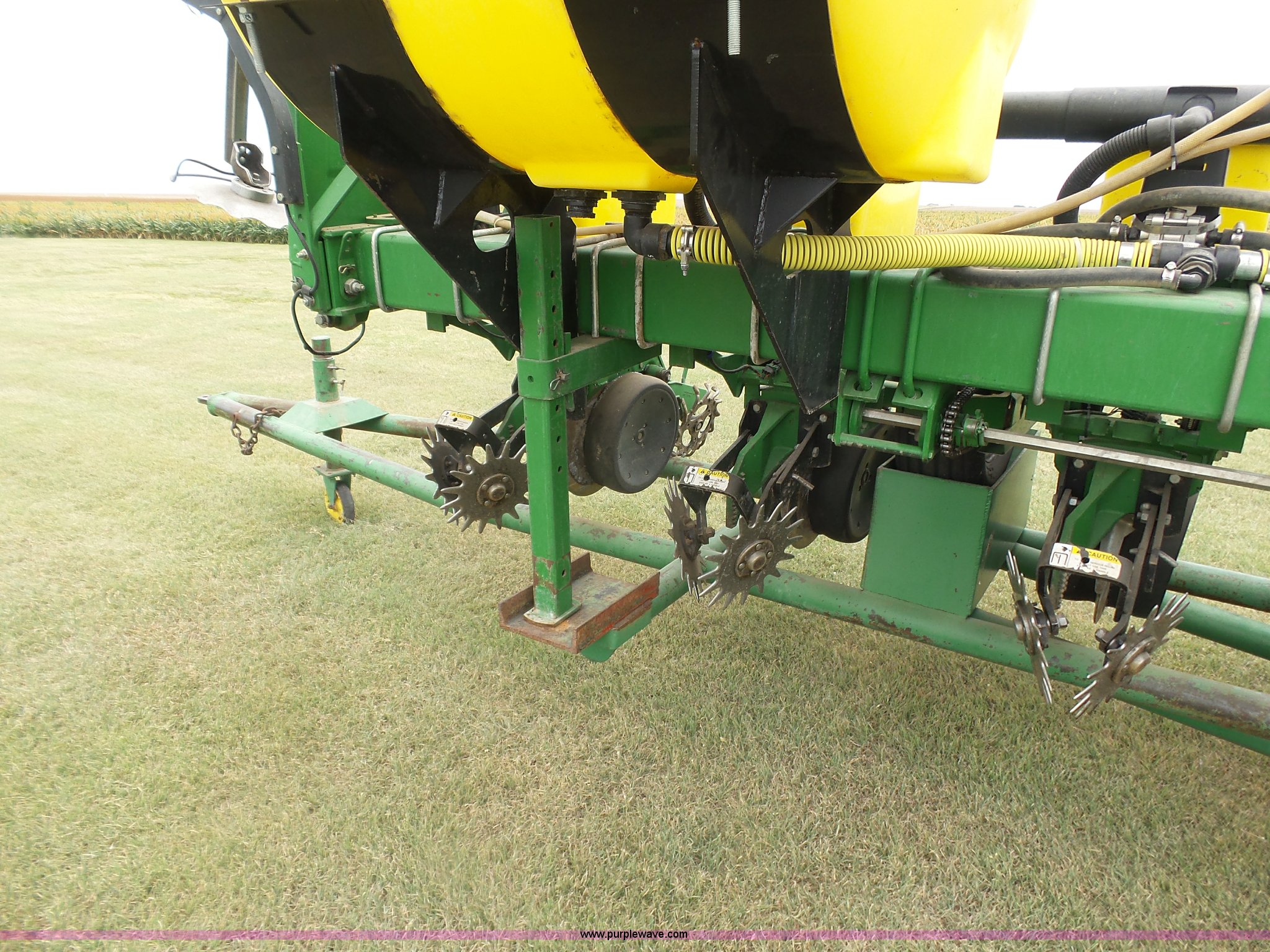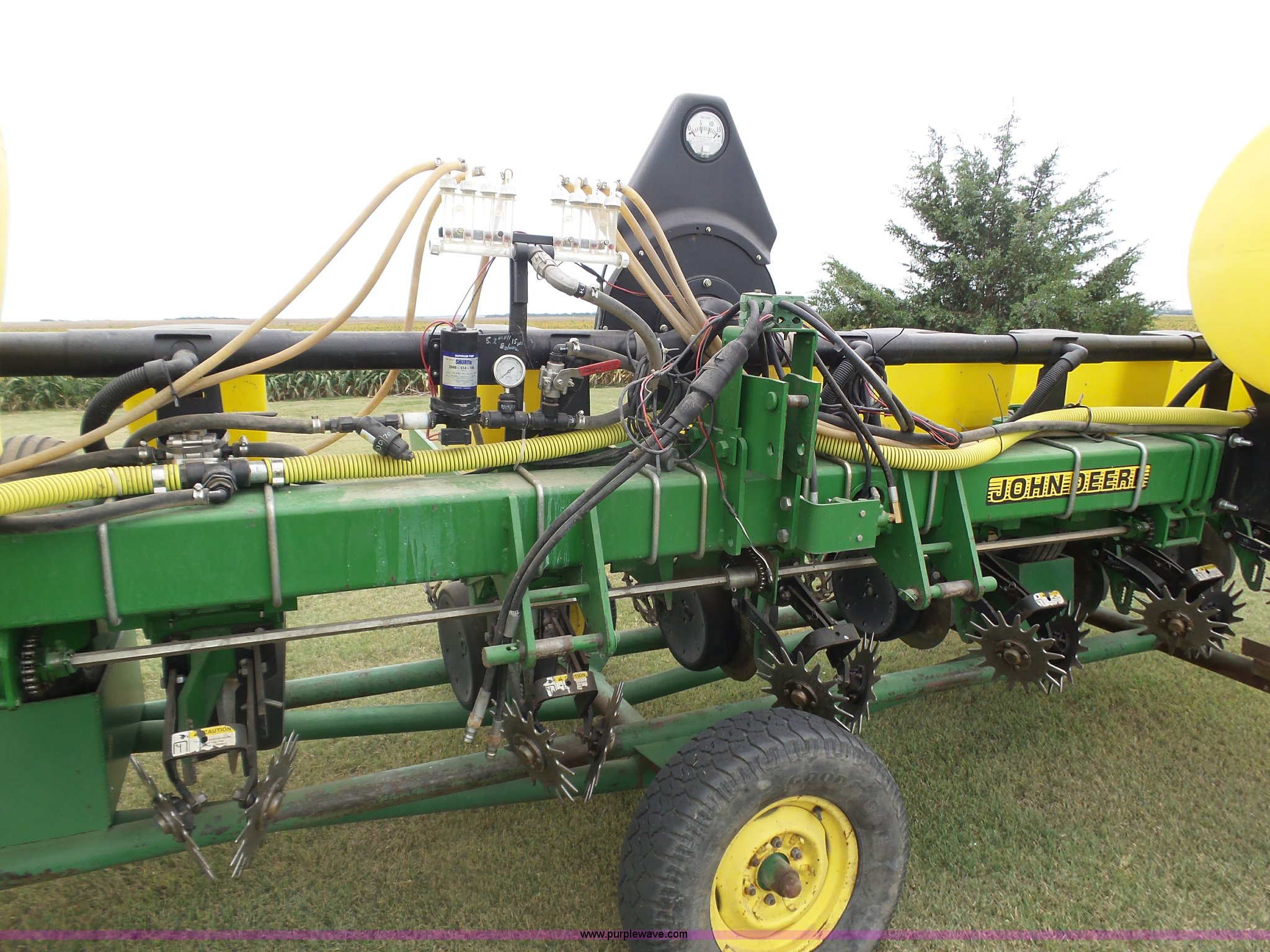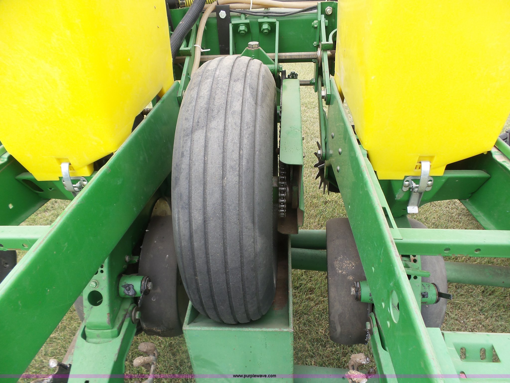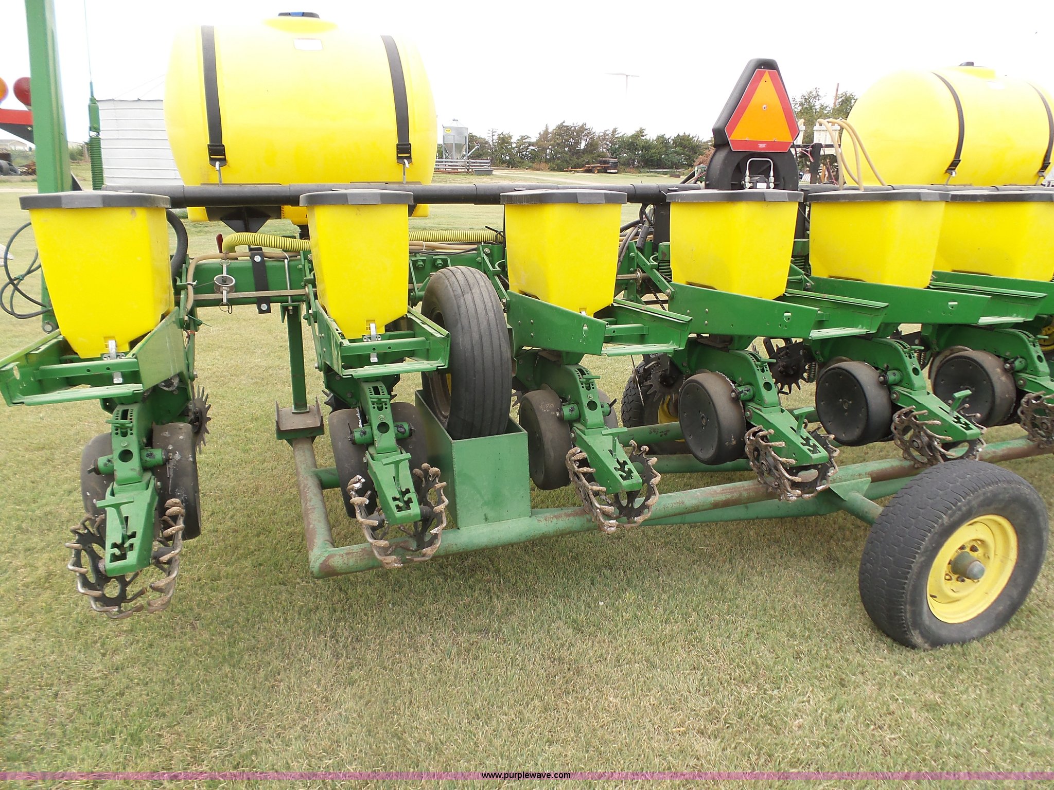 Purple Wave is selling a used Planter in Kansas. This item is a 1998 John Deere 1700 Max Emerge Plus Vacumeter no-till planter with the following: 19'W, Eight rows, 30" row spacing, Hydraulic marker arms, Individual seed hoppers, Vacuum metering, Ground meter drive, Double disk openers, Double gauge wheels, Double spiked closing system, (2) 150 gallon liquid tanks, Coulter applicator, Shur-Flo 2088 electric diaphragm pump, 4 gpm, Red Ball monitors,, John Deere Computer Trak 250 monitor, (2) 7.60-15 drive/outside tires, Heavy residue no-till coulters, Chemical arms for rear of each row, Additional press wheels, Additional meters, Additional parts, Transport trailer, 23'L, Slab hitch, 235/75R15 tires, Stored inside, Serial H01700R670919