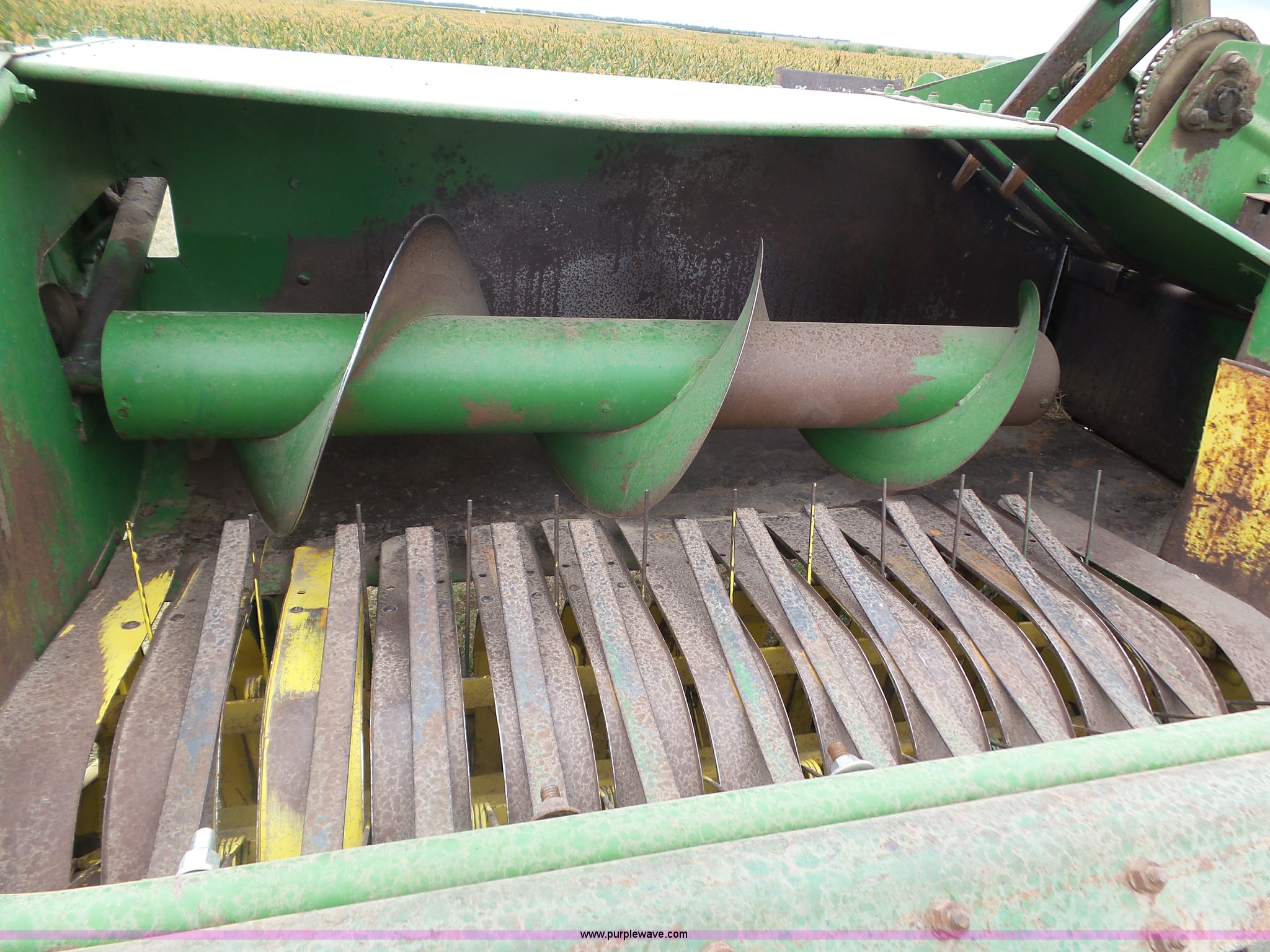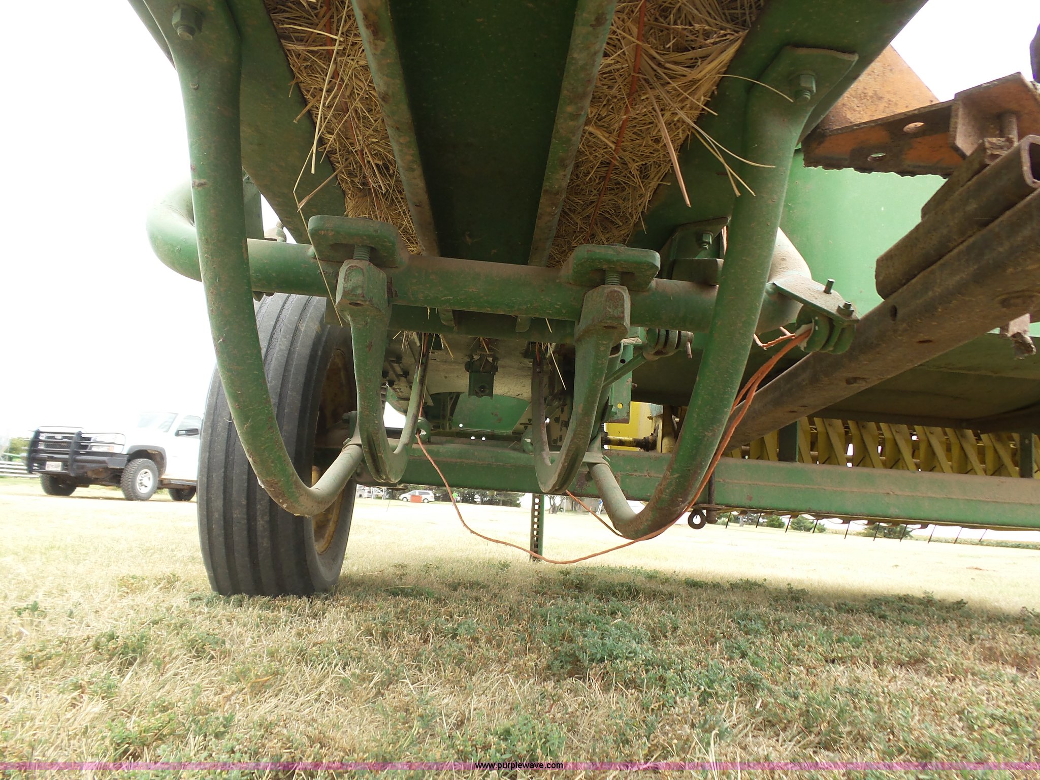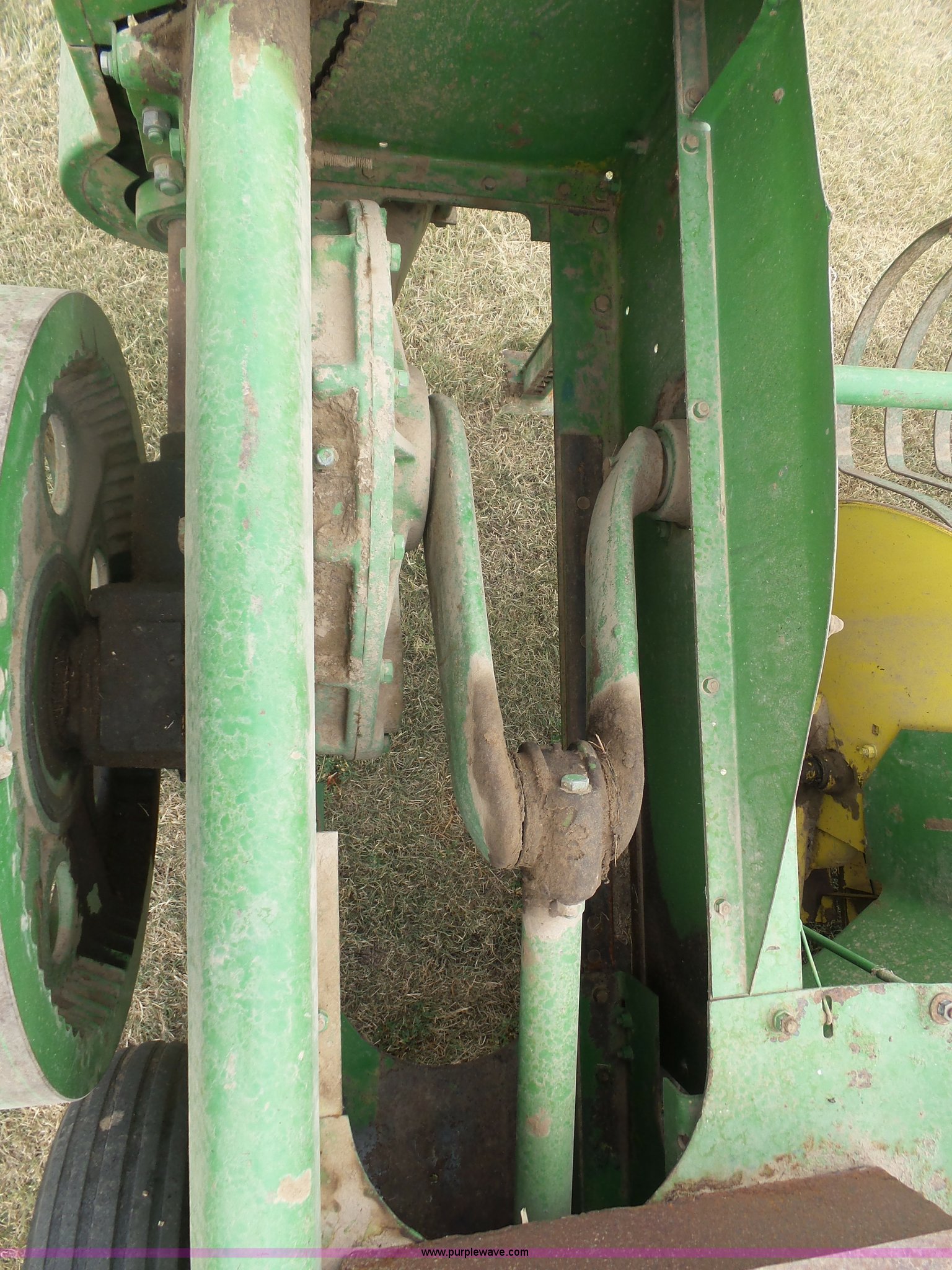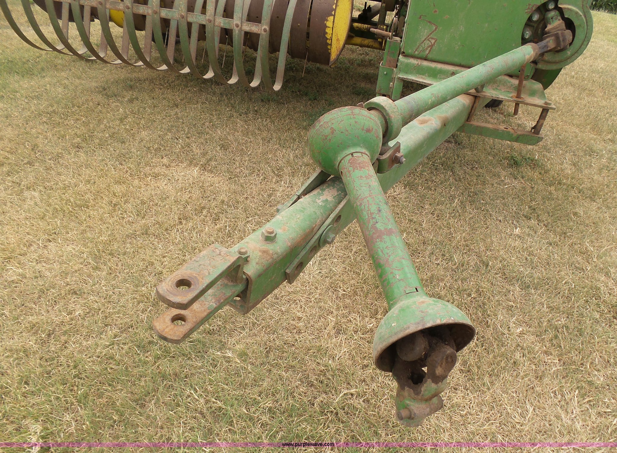 Purple Wave is selling a used Square Baler in Kansas. This item is a John Deere 24T small square baler with the following: 14" x 18" bale capacity, 52"W pickup, (2) knotters, Twine tie, Bale chute, 540 PTO, Pin hitch, 6.70-15 left side tire, 5.00-15 right side tire, Type E0024, Operator's manual, Stored inside, Serial 056144E