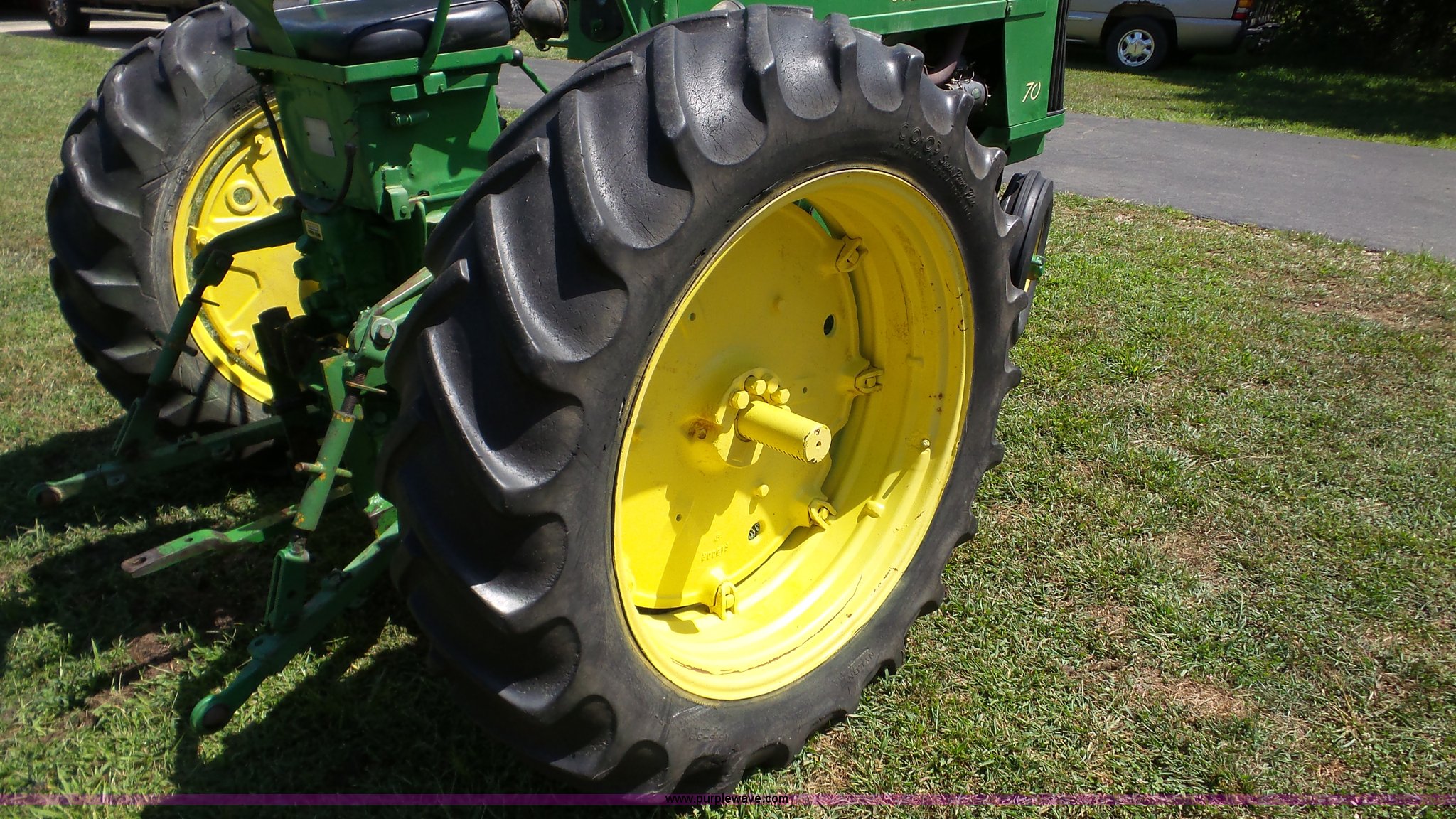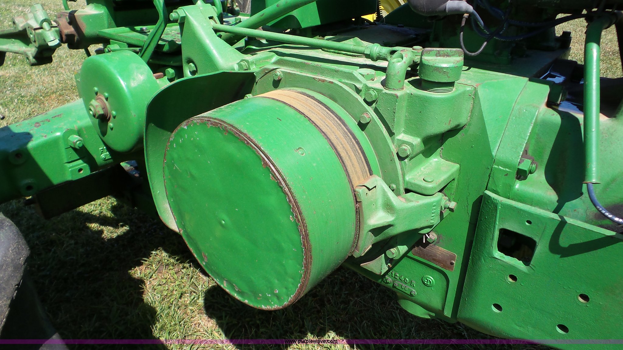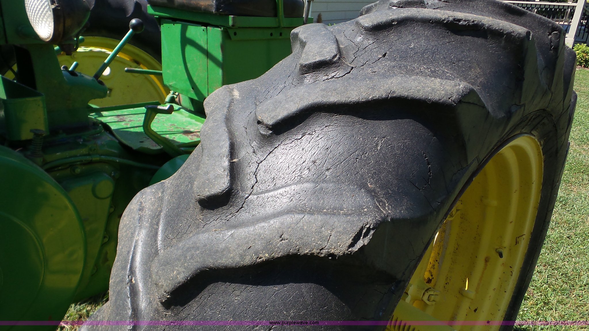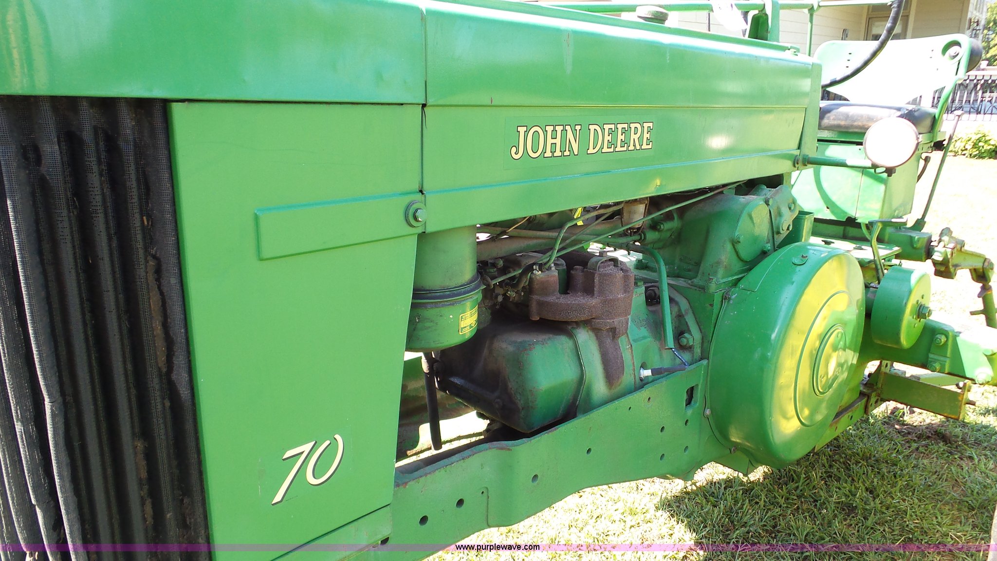 Purple Wave is selling a used Tractor in Kansas. This item is a John Deere 70 tractor with the following: Two cylinder gas engine, Manual transmission, 6F-1R gears, 540 PTO, 6.50-16 front tires, 15.5-38 rear tires, Serial 7010430