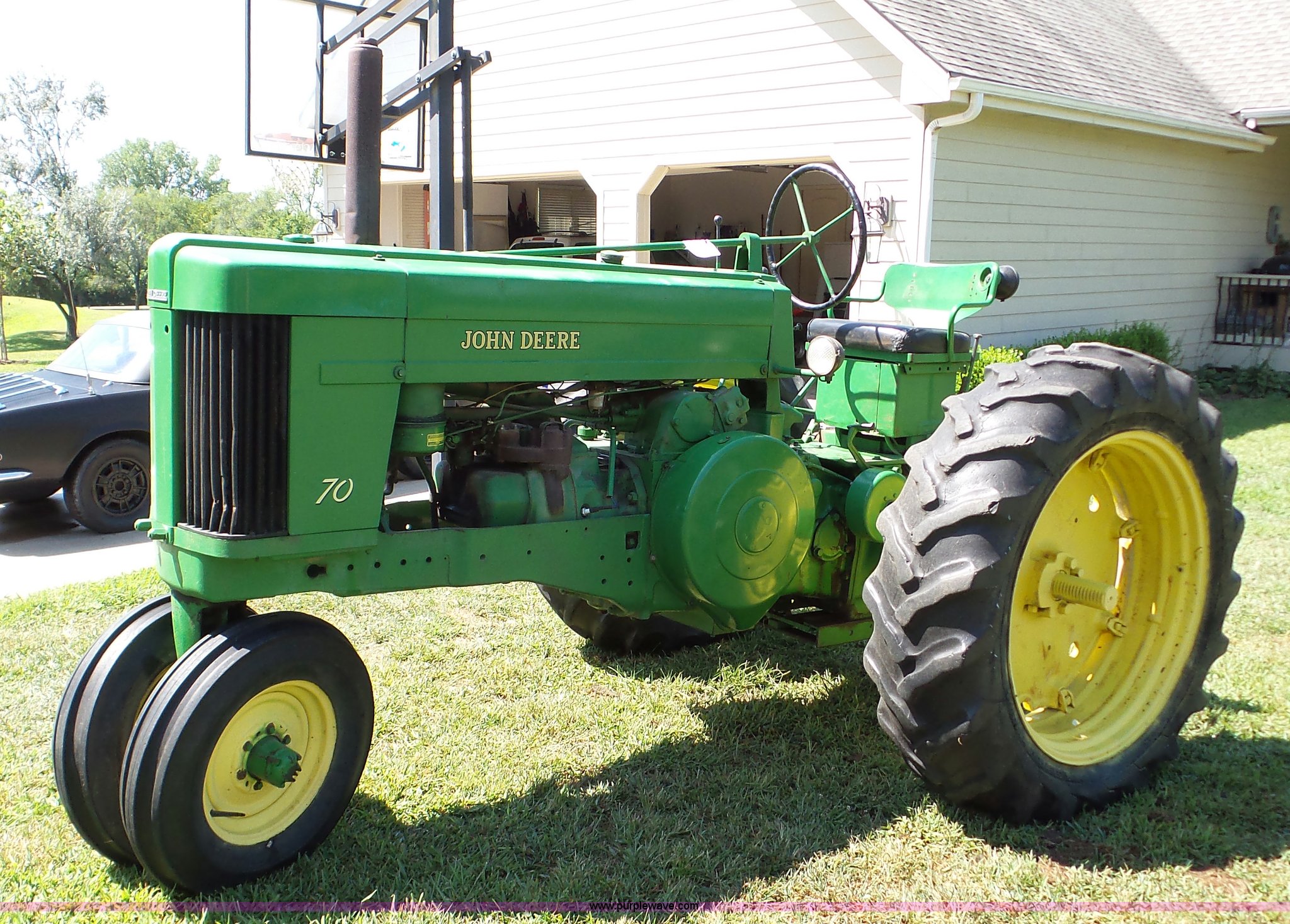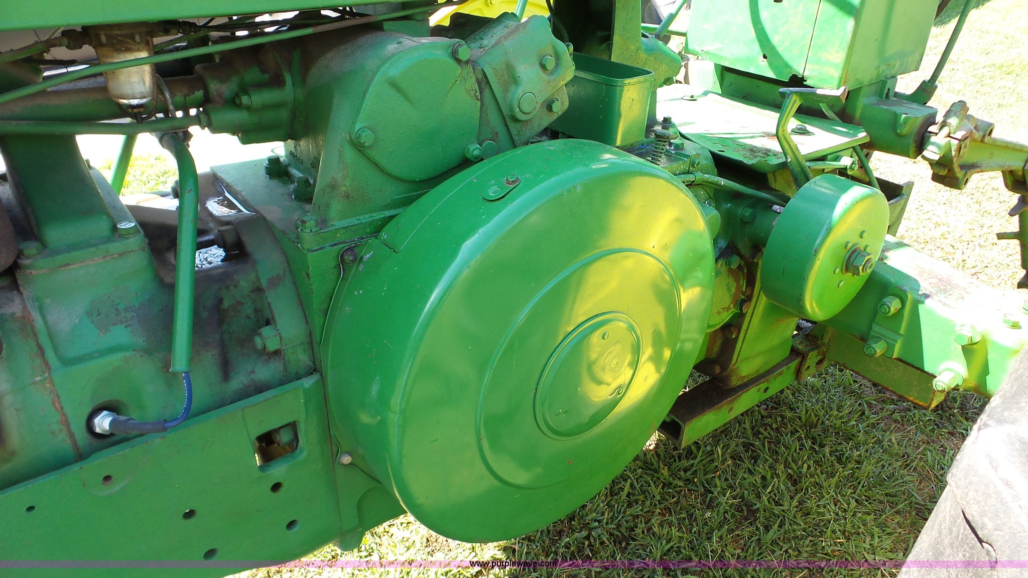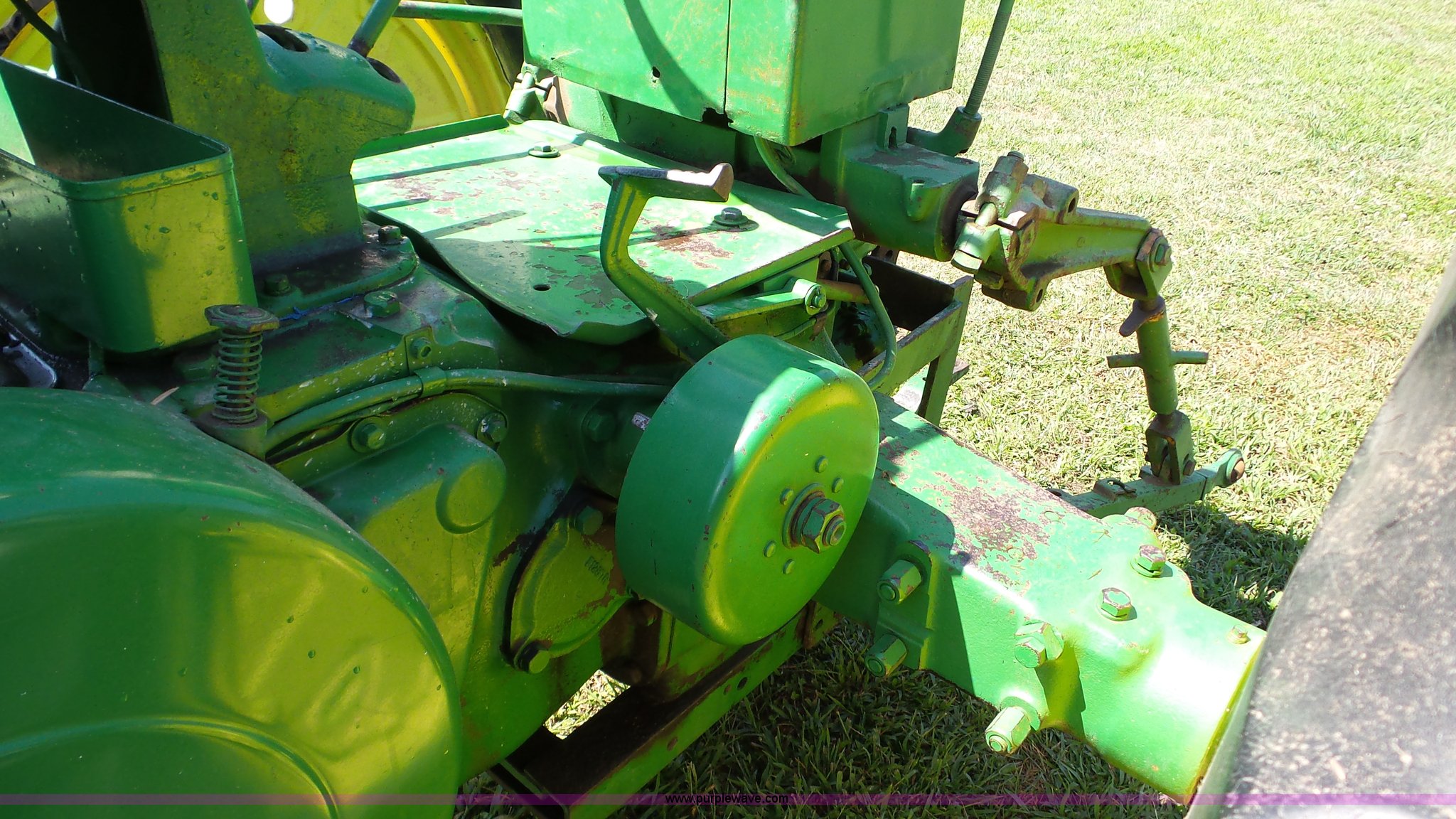Purple Wave is selling a used Tractor in Kansas. This item is a John Deere 70 tractor with the following: Two cylinder gas engine, Manual transmission, 6F-1R gears, 540 PTO, 6.50-16 front tires, 15.5-38 rear tires, Serial 7010430