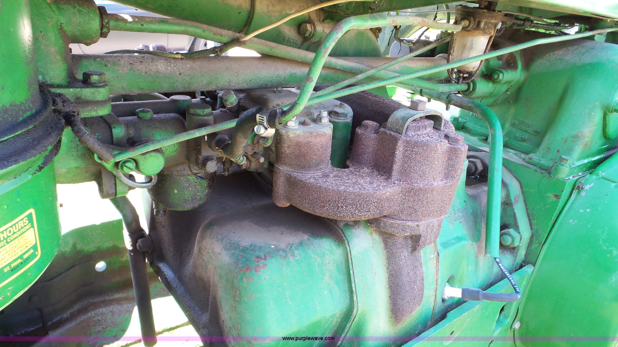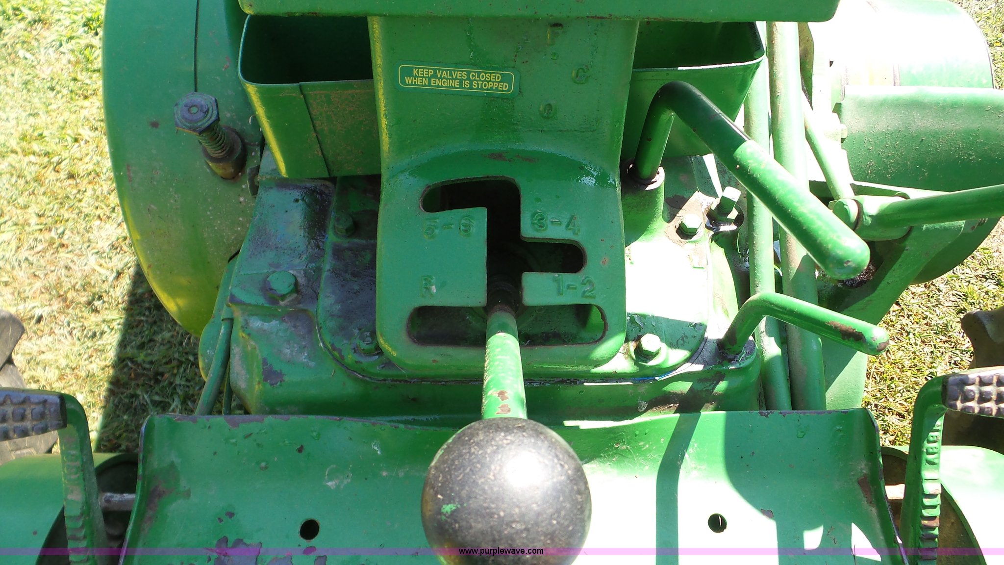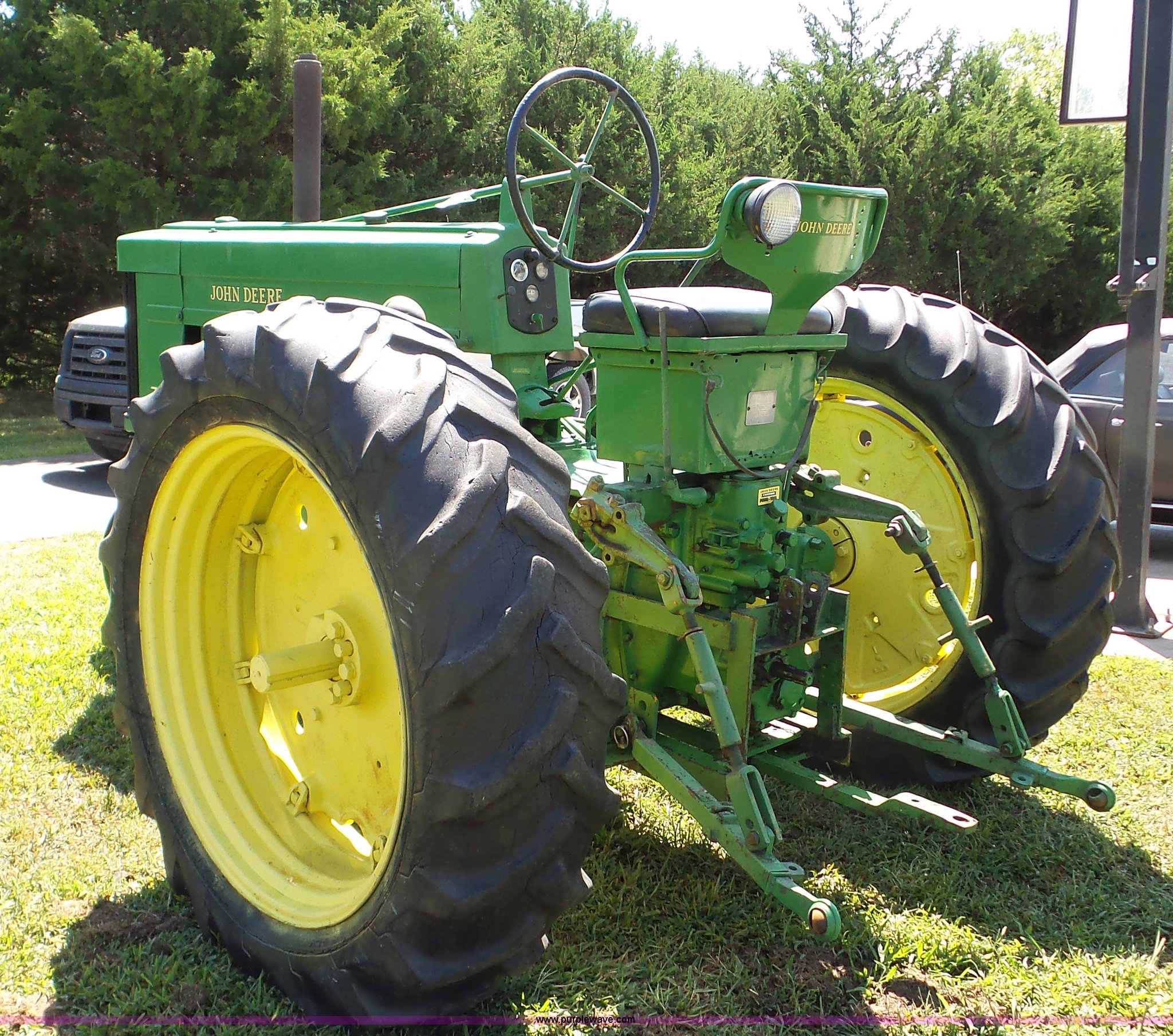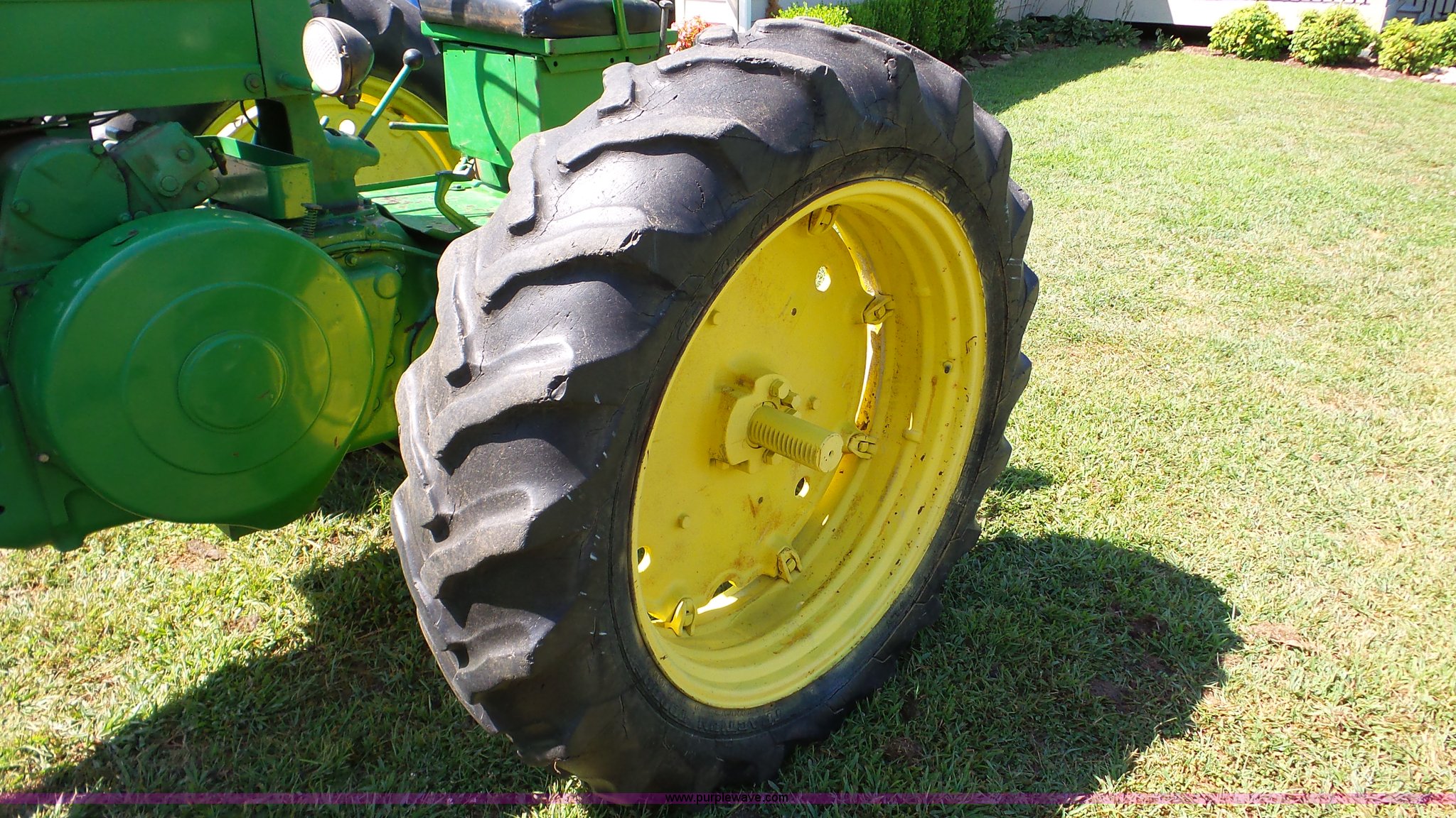 Purple Wave is selling a used Tractor in Kansas. This item is a John Deere 70 tractor with the following: Two cylinder gas engine, Manual transmission, 6F-1R gears, 540 PTO, 6.50-16 front tires, 15.5-38 rear tires, Serial 7010430