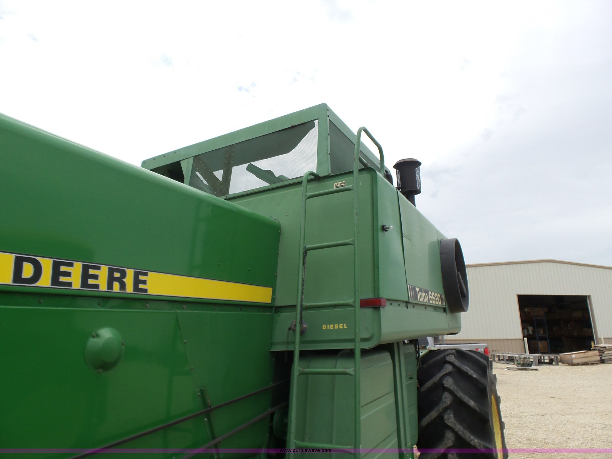 Purple Wave is selling a used Combine in Kansas. This item is a 1981 John Deere 6620 Turbo combine with the following: 1,904 engine hours on meter, John Deere six cylinder diesel engine, Hydrostatic transmission, 4F-4R gears, AC and heat, Tilt steering wheel, AM/FM, Spring suspension seat, Chaff spreader, Yield monitor, Work lights, 28L-26 front tires, 11.2-24 rear tires, Serial 456040, Unit# 41495
