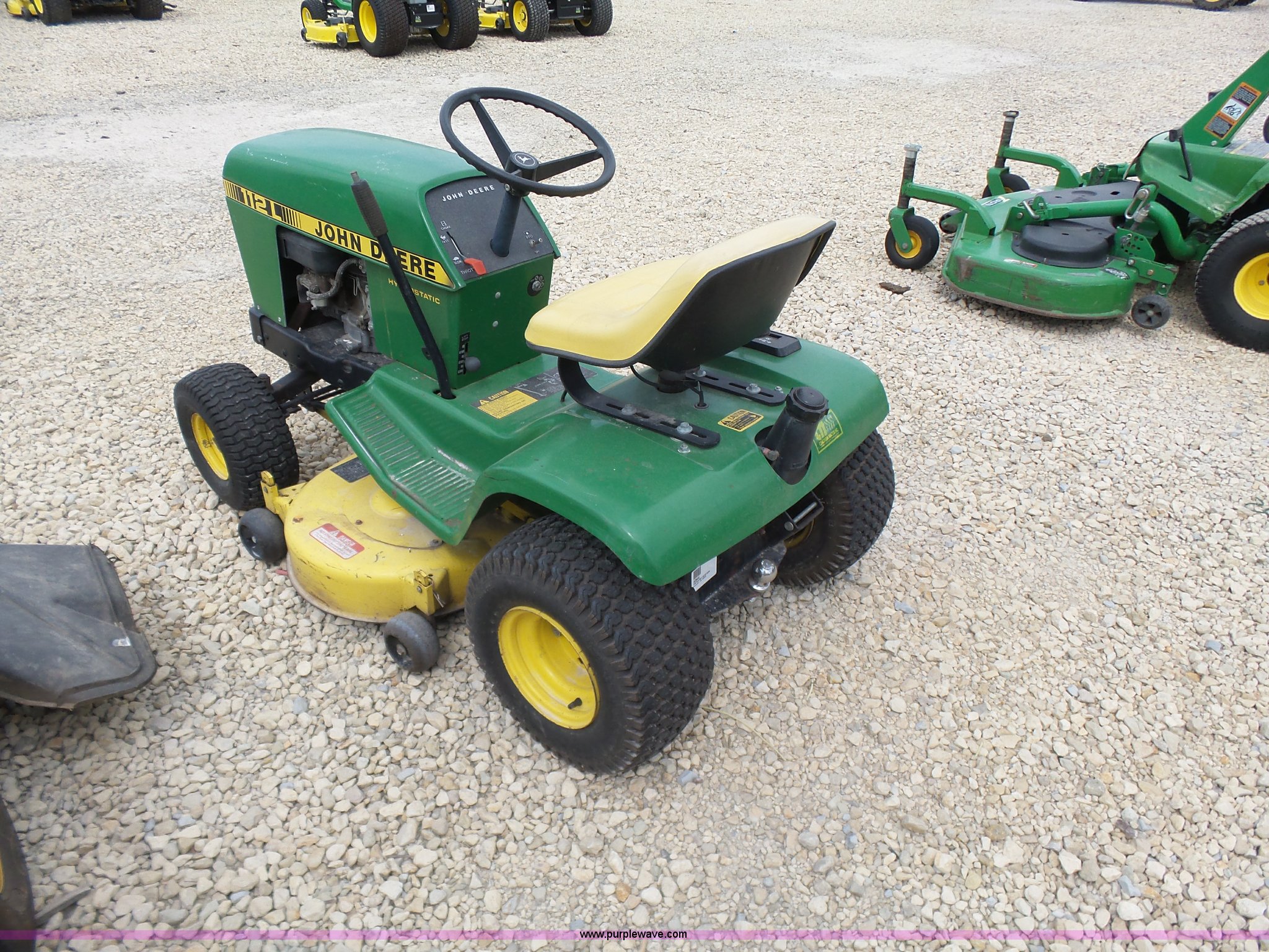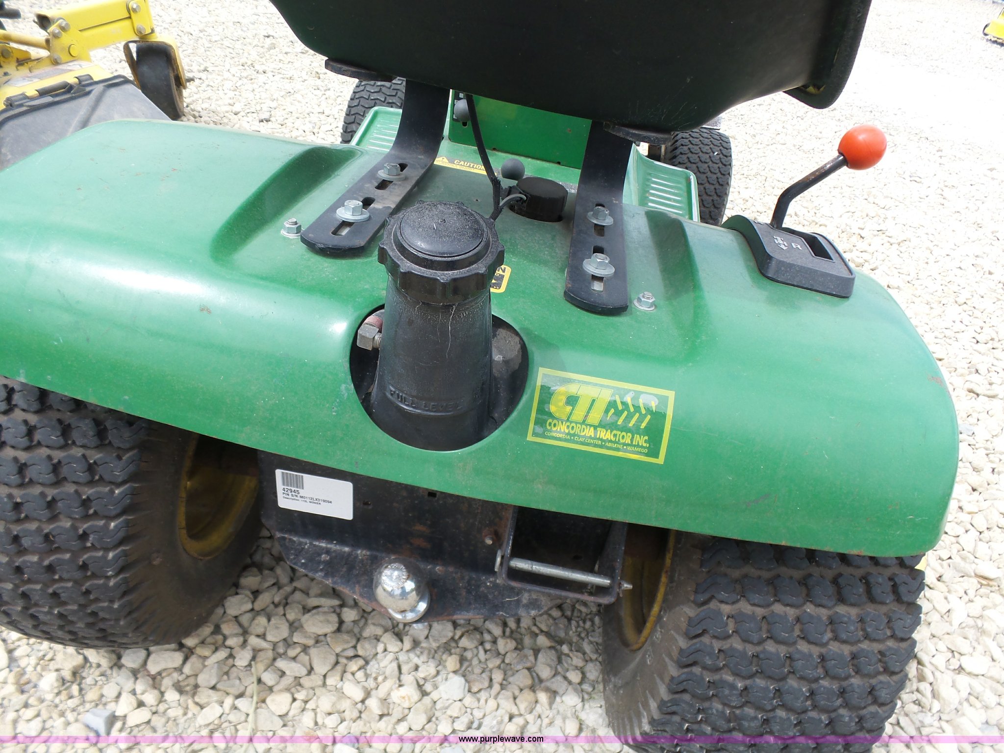 Purple Wave is selling a used Lawn Mower in Kansas. This item is a John Deere 112L lawn mower with the following: 36" cut, Gas engine, Hydrostatic transmission, 15x6.00-6 NHS tires, 18x8.50-8 NHS tires, Serial M0112LX319094, Unit# 42945