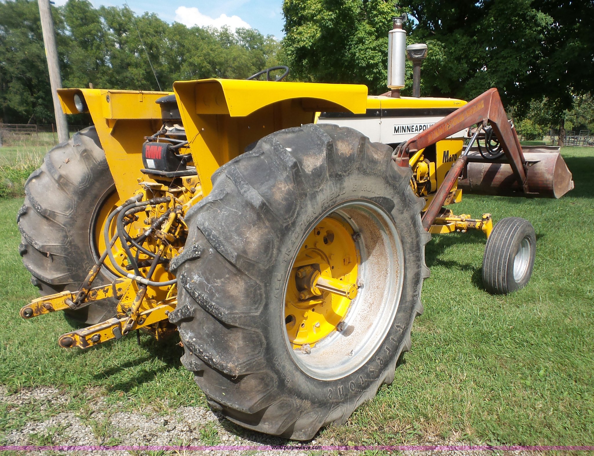 Purple Wave is selling a used Tractor in Kansas. This item is a 1969 Minneapolis Moline Super M670 tractor with the following: Minneapolis Moline four cylinder gas engine, Manual transmission, 5F-1R gears, Minneapolis Moline loader, 68"W bucket, Two-lever controls, Three point, Draw bar, 540 PTO, (2) rear hydraulic remote sets, 11L-15 front tires, 18.4-34 rear tires, Recently rebuilt starter, Operator's manual, Serial 29904748