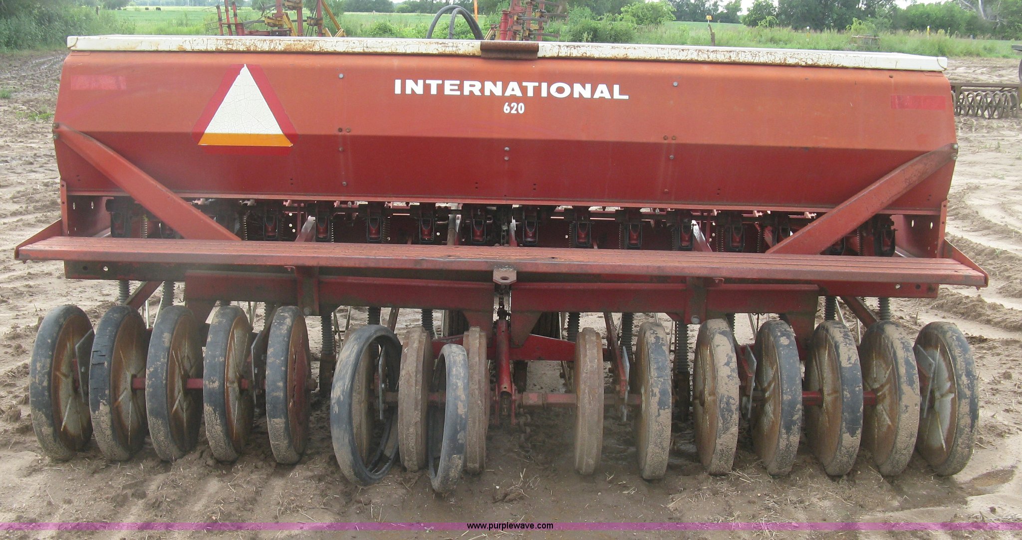 Purple Wave is selling a used Grain Drill or Seeder in Kansas. This item is a International 620 grain drill with the following: 16 row units, 8" row spacing, Hydraulic lift, Pin hitch, Serial 620C1311