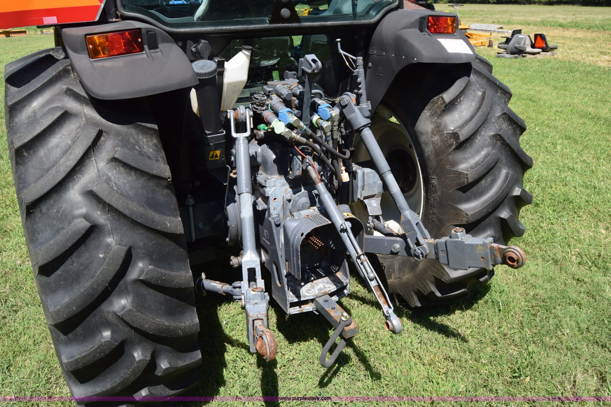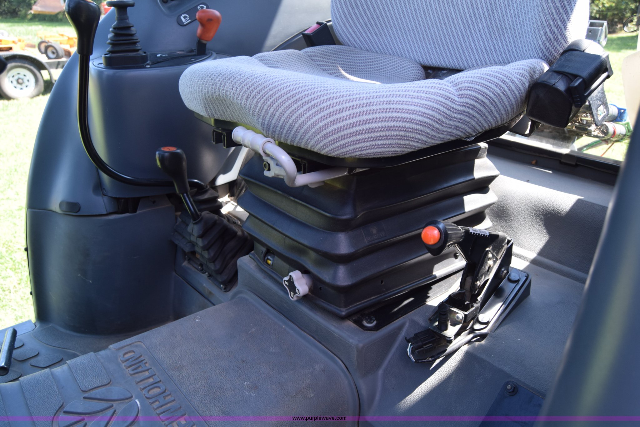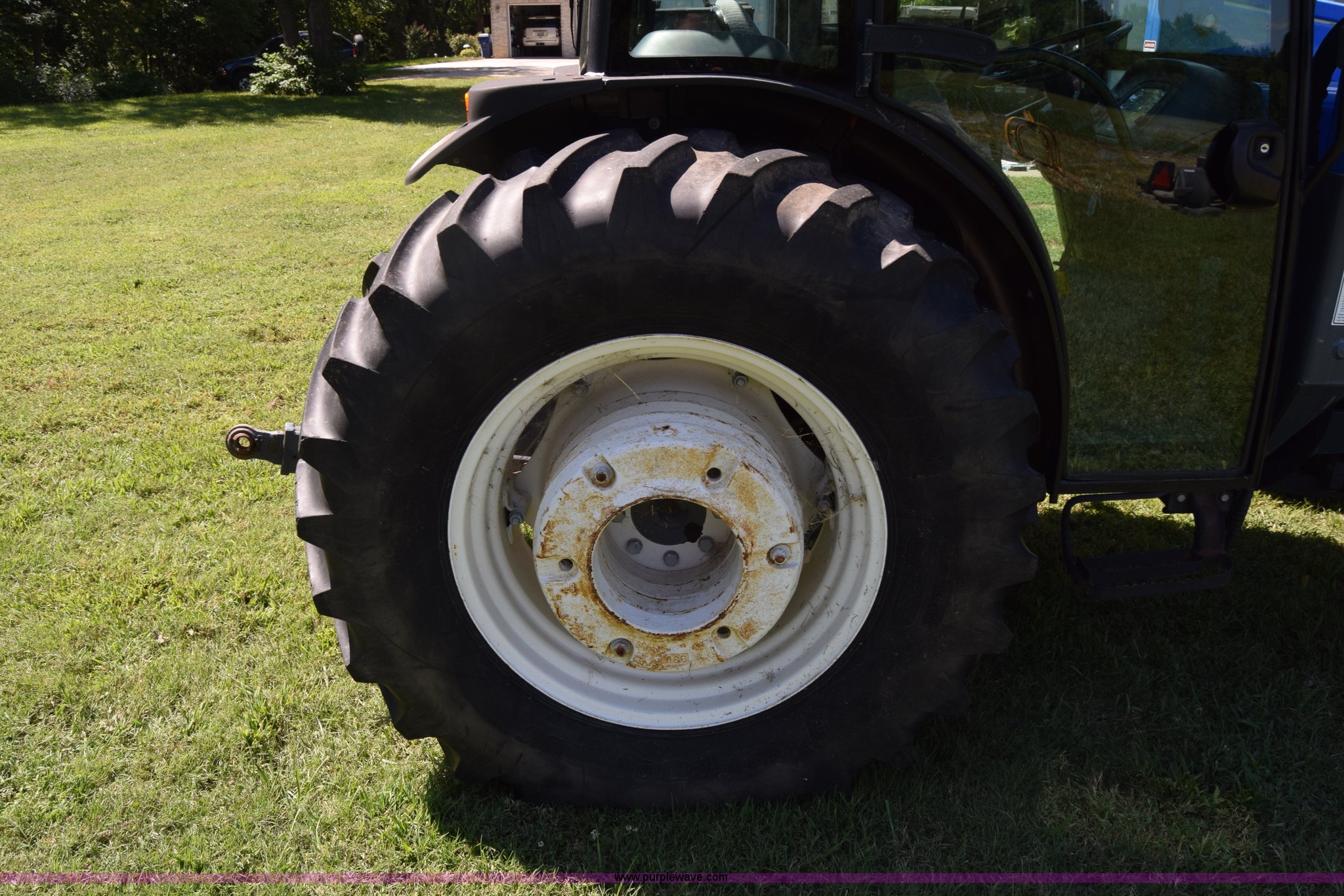 Purple Wave is selling a used Tractor in Kansas. This item is a New Holland D65CVS MFWD tractor with the following: 594 hours on meter, New Holland 2.9L three cylinder diesel engine, 65 HP, Shuttle forward and reverse, 8F-8R gears, AC and heat, Tilt steering wheel, AM/FM, Suspension seat, Shade, New Holland 33LA loader, Quick attach, 72"W bucket, Self leveling, Joystick controls, Three point, Top link, 540 PTO, (2) rear hydraulic remote sets, (4) wheel weights per rear wheel, 11.2-24 front tires, 16.9-30 rear tires, Serial 111239238