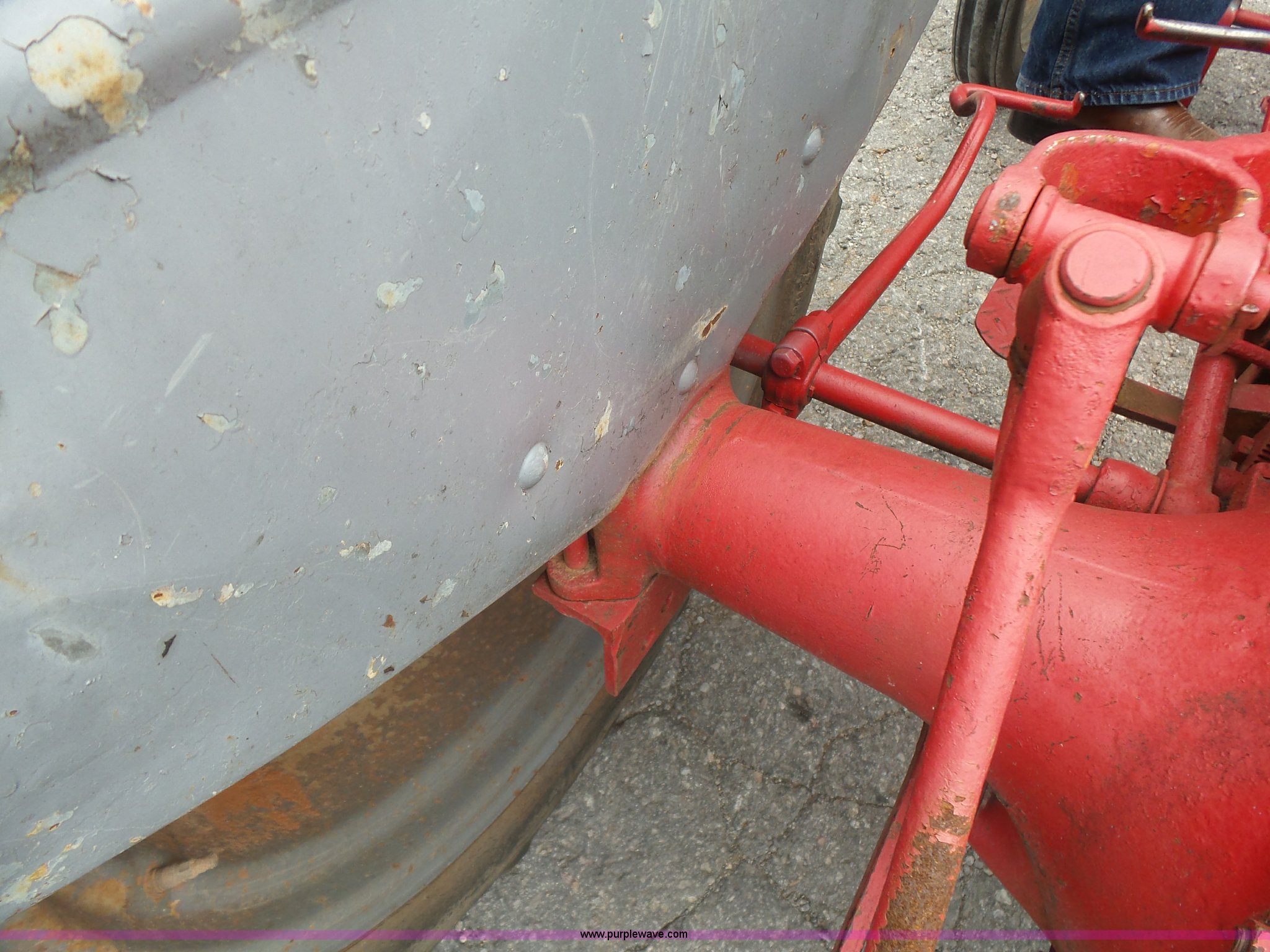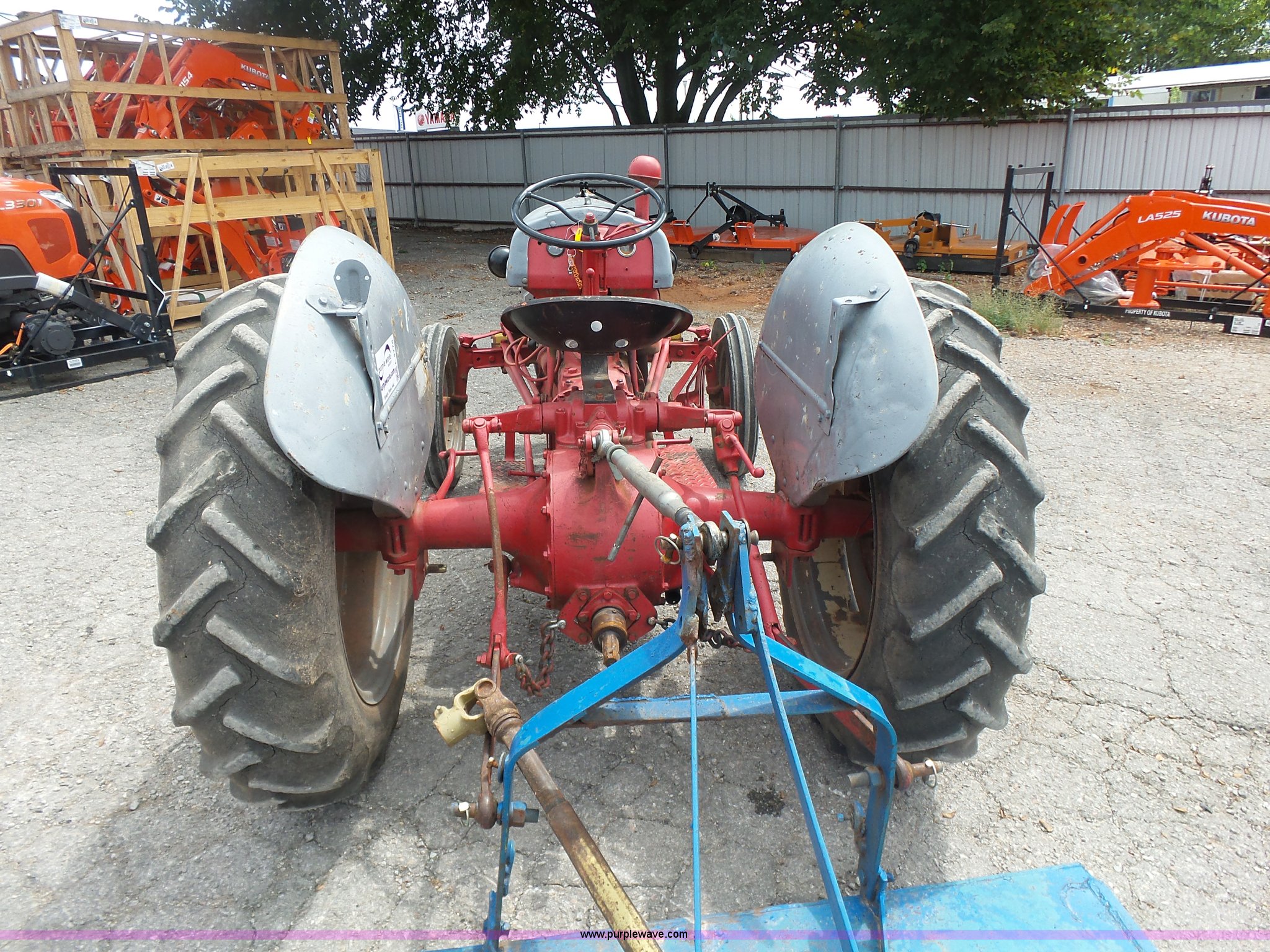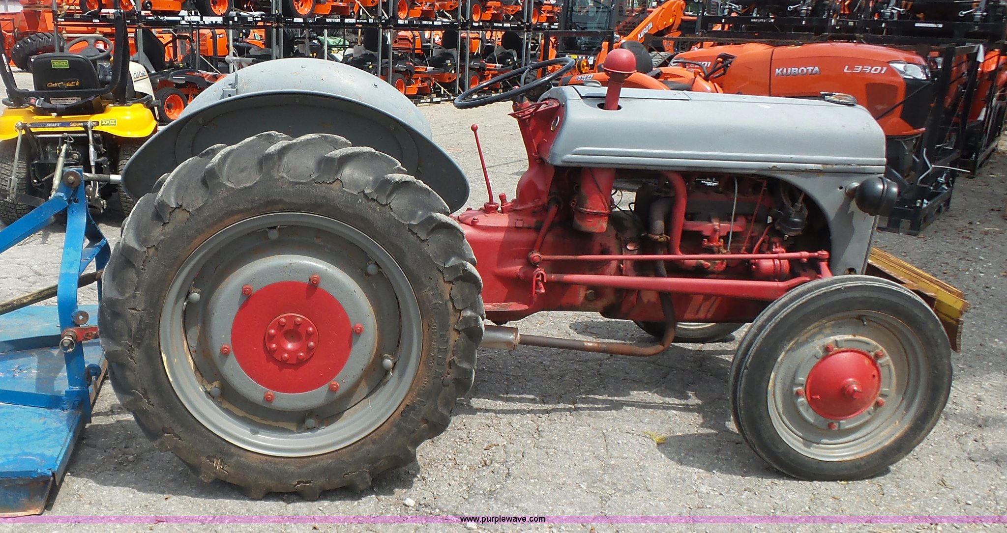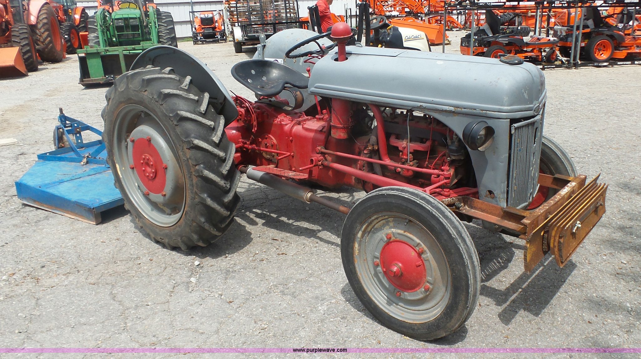 Purple Wave is selling a used Tractor in Oklahoma. This item is a 1952 Ford 8N tractor with the following: Four cylinder gas engine, Manual transmission, 4F-1R gears, Brush guard, 60" rotary mower, Three point, 540 PTO, 4.00-19 front tires, 11.2-28 rear tires, Serial 8N423714