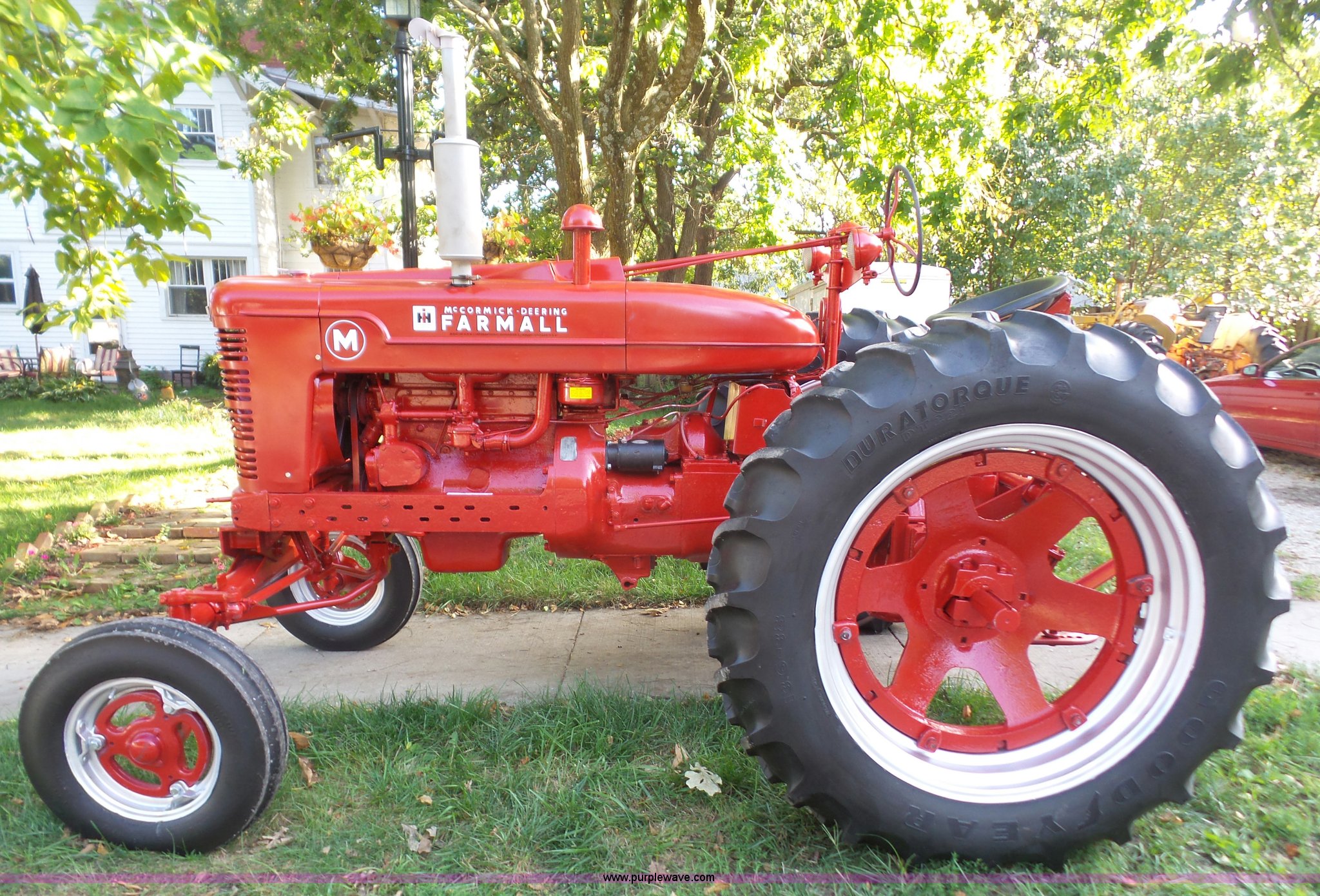 Purple Wave is selling a used Tractor in Kansas. This item is a 1949 Farmall M tractor with the following: International Harvester 4.1L four cylinder gas engine, 38 HP, Manual transmission, 5F-1R gears, Three point, 540 PTO, 6.00-16 front tires, 13.6-38 rear tires, Serial FBK207497X1