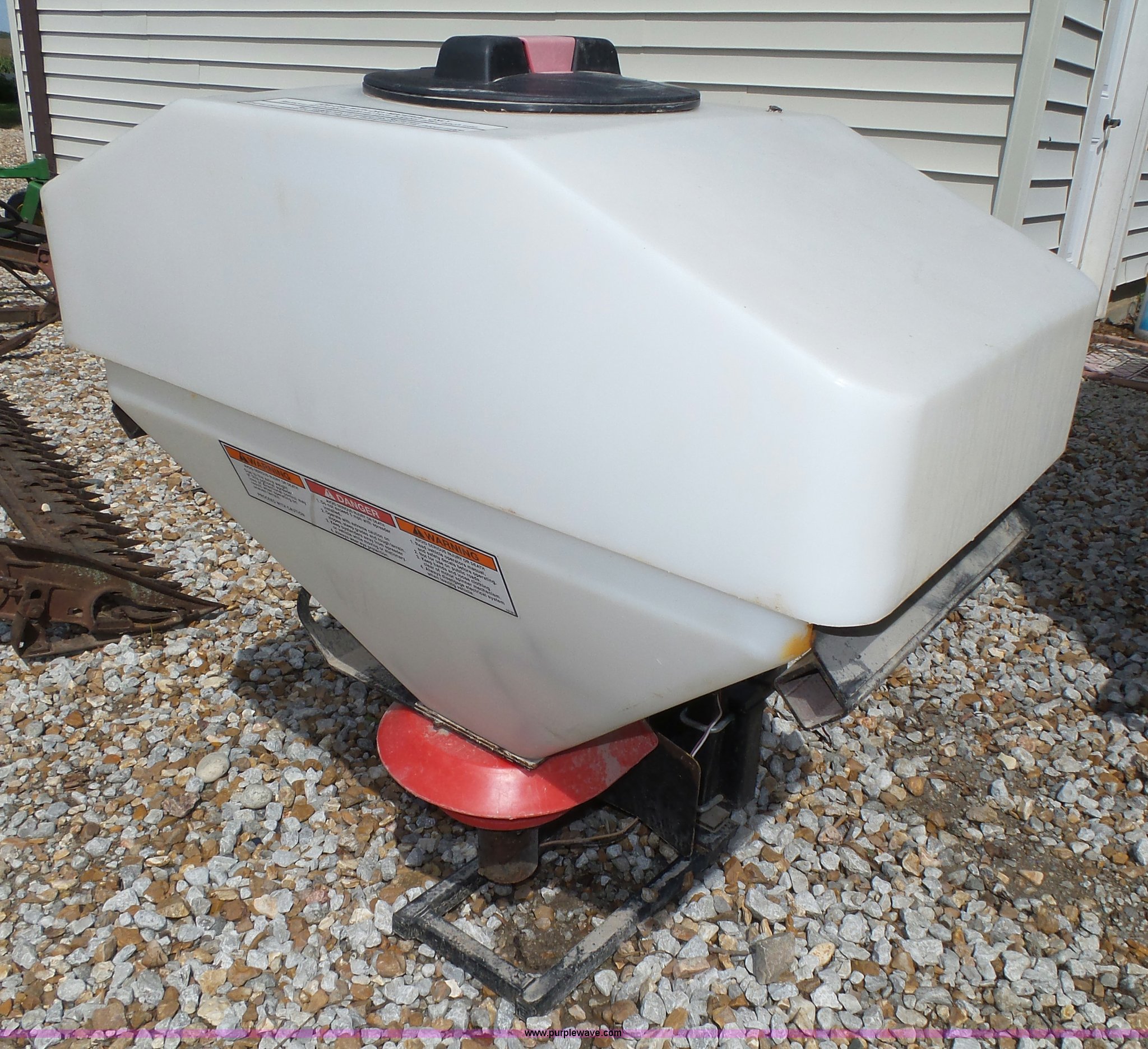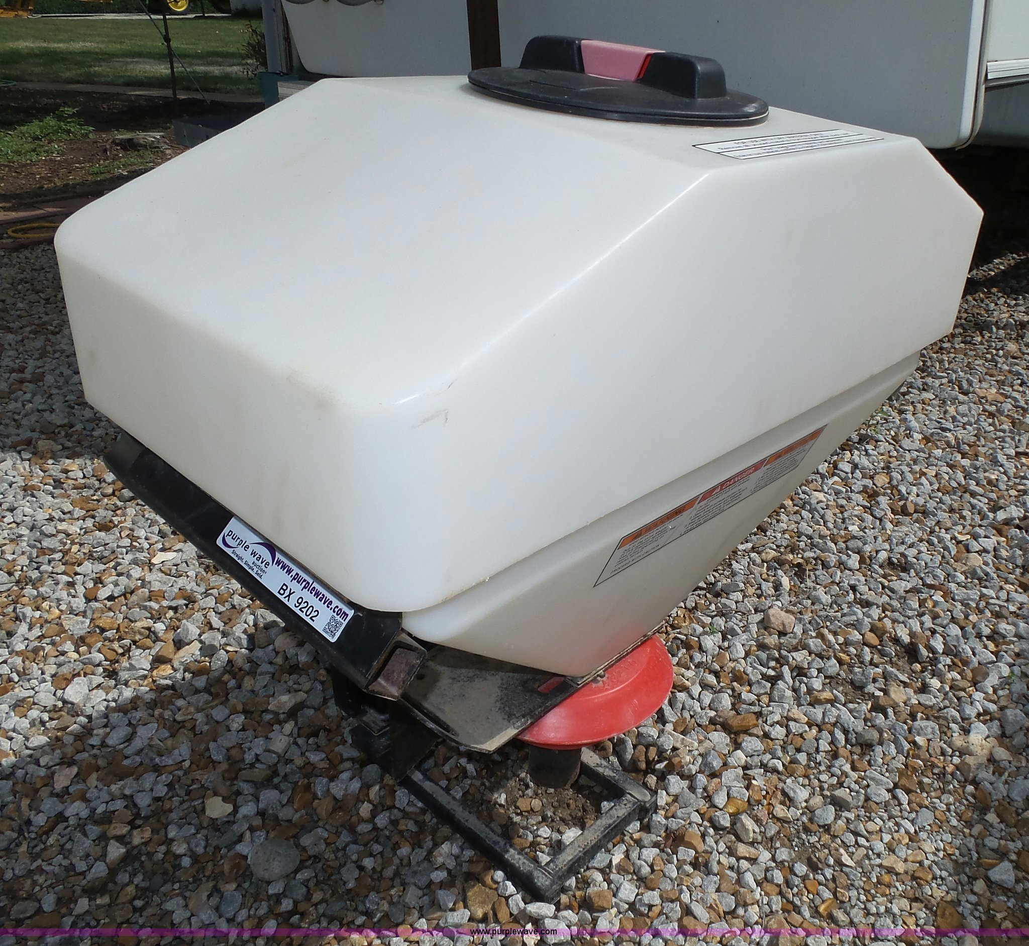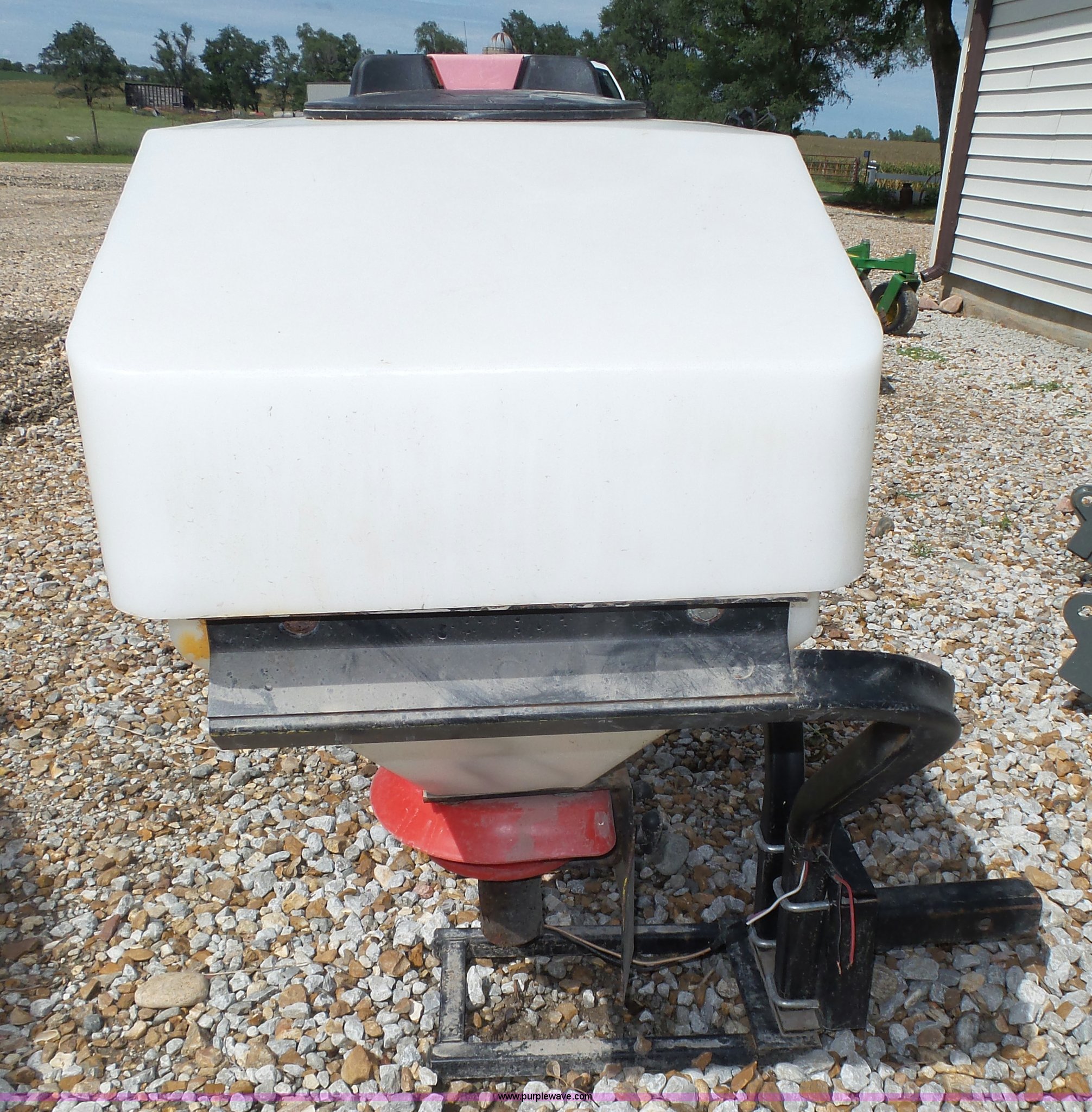 Purple Wave is selling a used Lawn and Garden in Nebraska. This item is a Spreader with the following: Poly tank, Single spinner, 12V operation, Receiver hitch mounted