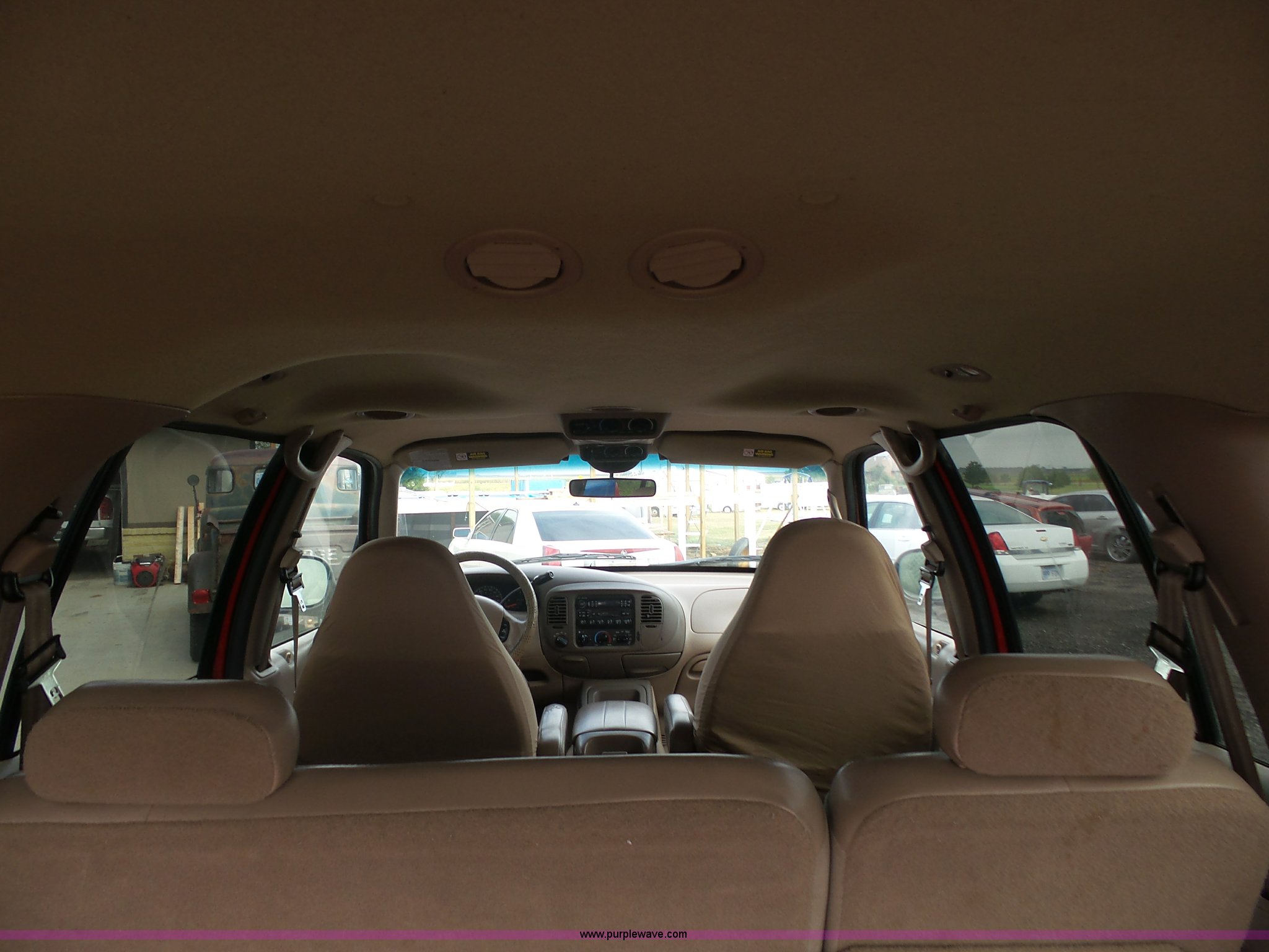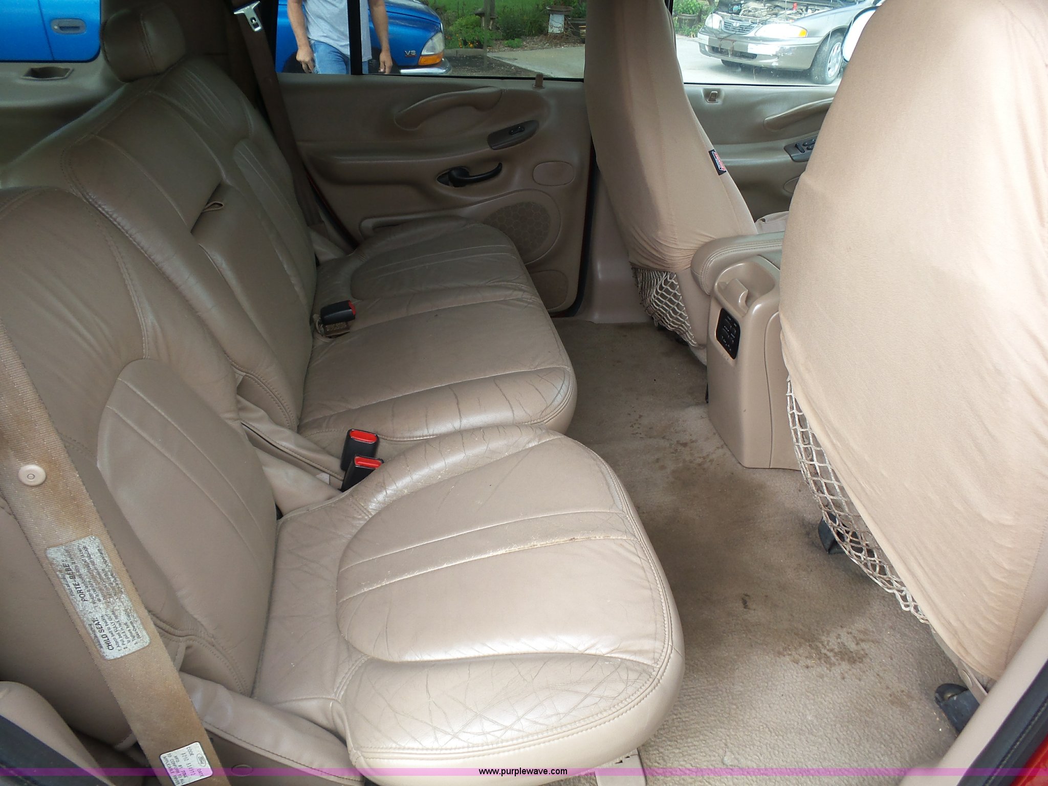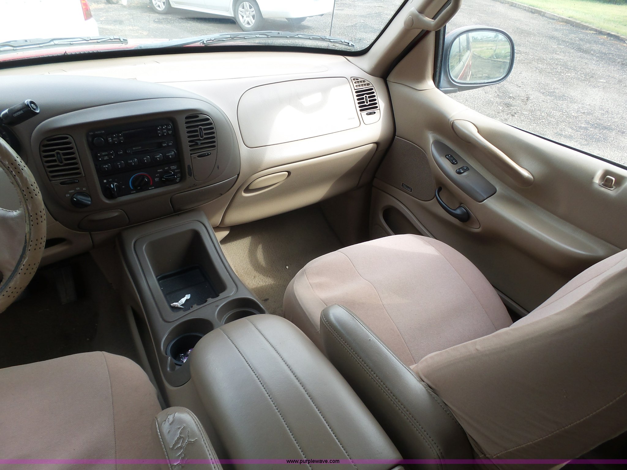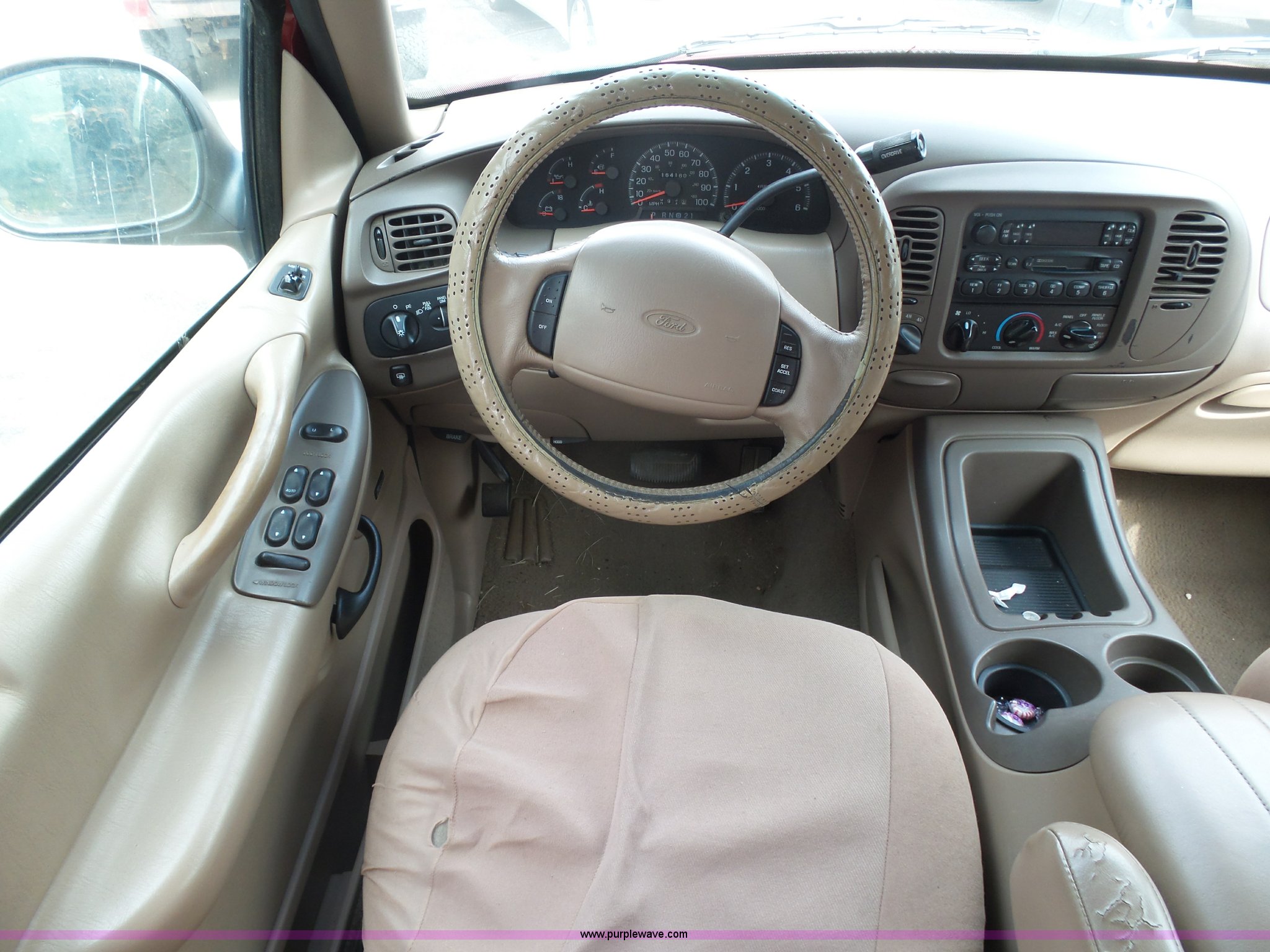Purple Wave is selling a used Passenger Vehicle in Kansas. This item is a 1998 Ford Expedition Eddie Bauer SUV with the following: 164,160 miles on odometer, 5.4L V8 SOHC 16V gas engine, Automatic transmission, Four wheel drive, AC and heat, Tilt, Cruise, AM/FM/CD/cassette, Six disc cd player, Power windows, locks, mirrors, and seat, Leather interior, Rear climate control, Fog lights, Front tow hooks, Running boards, LT265/70R17 tires, Check engine light on, Third row seat missing