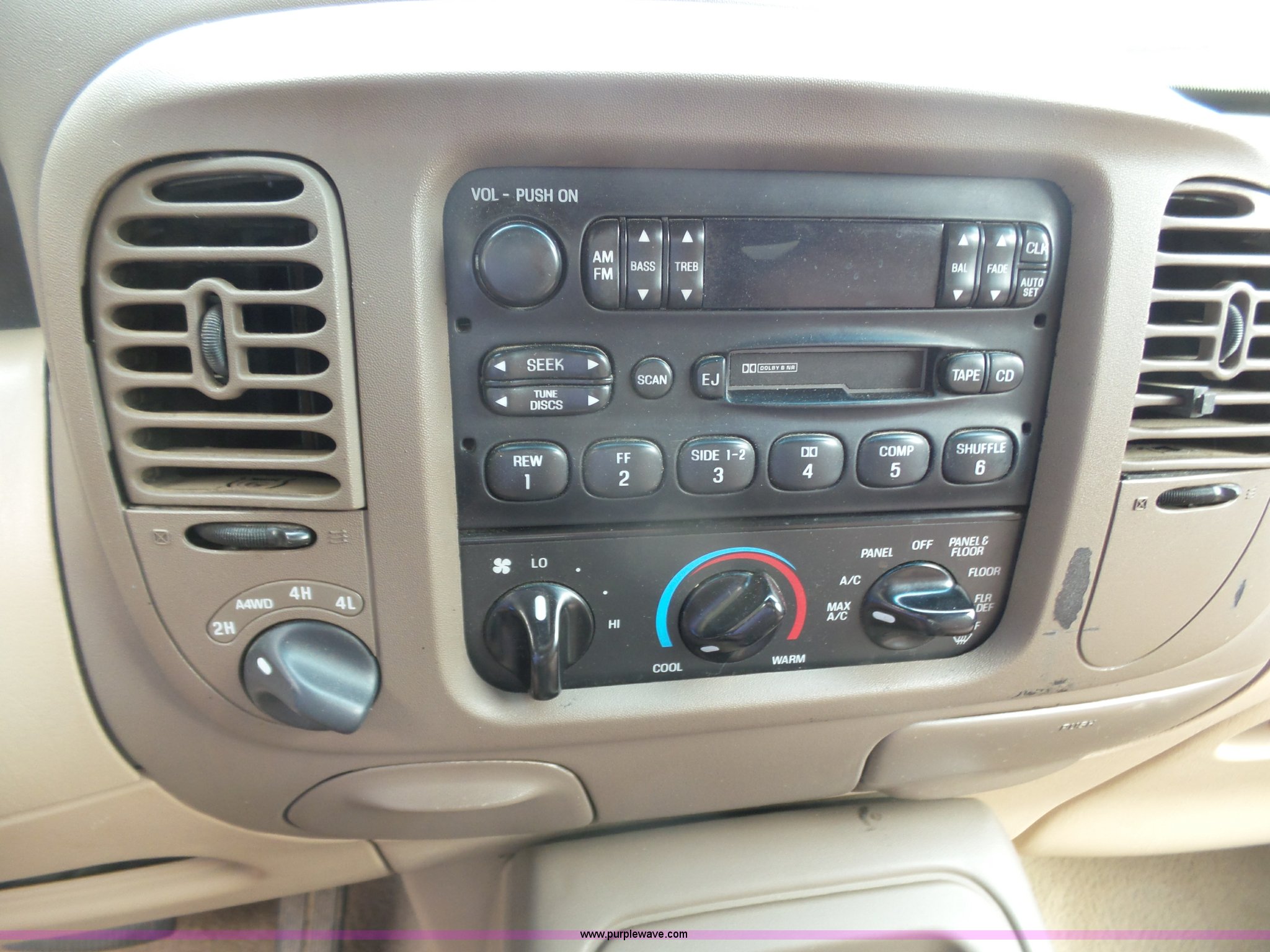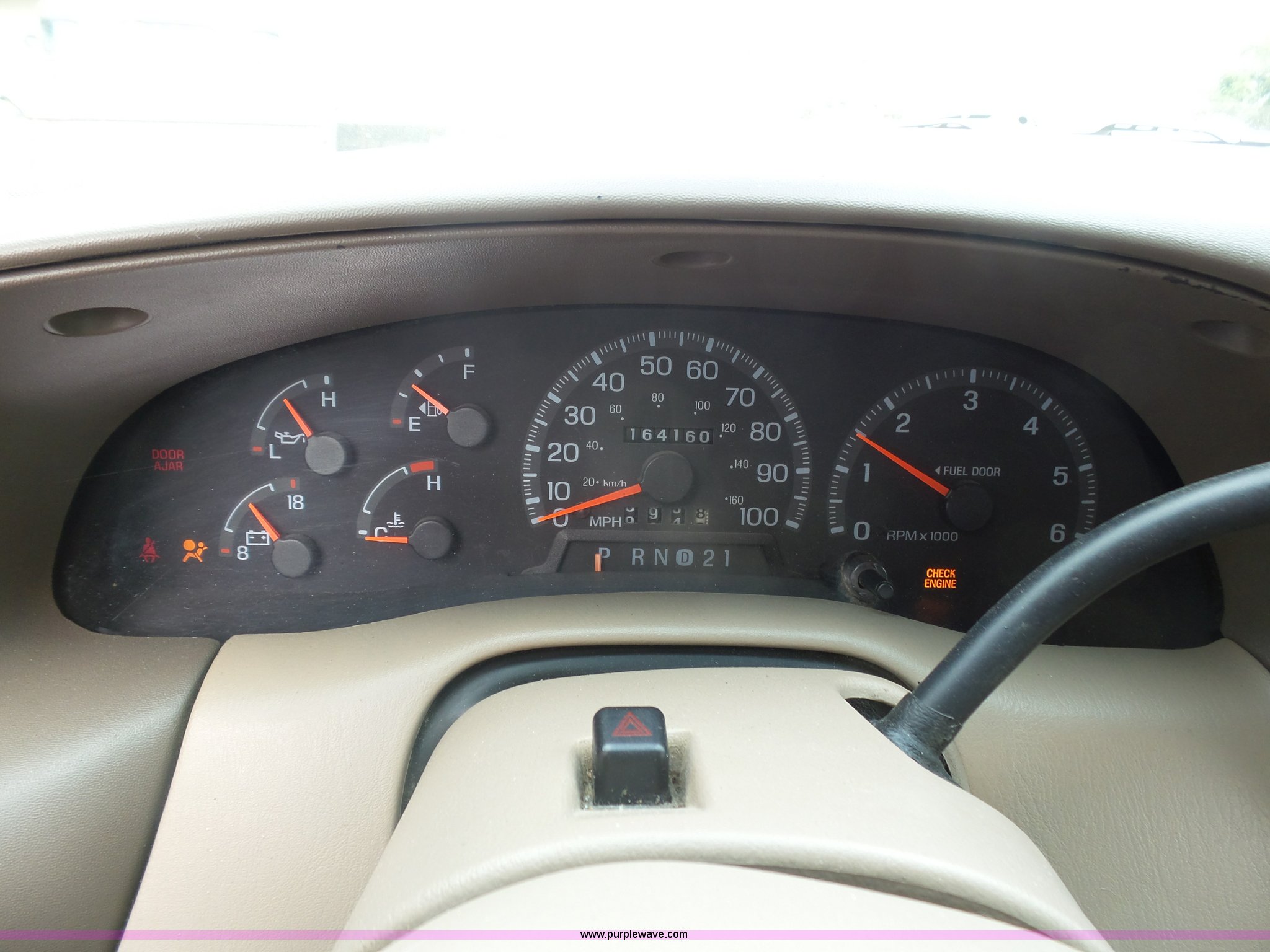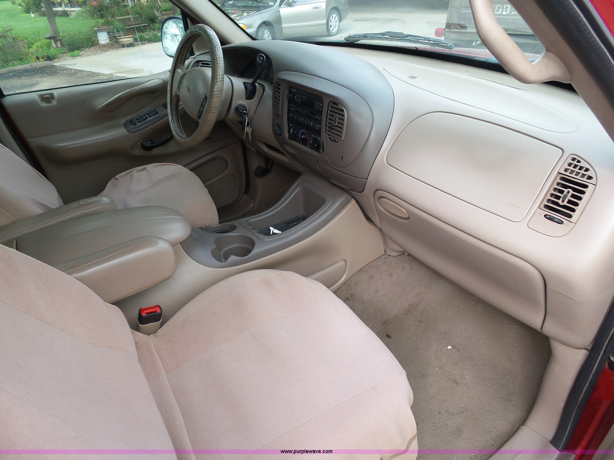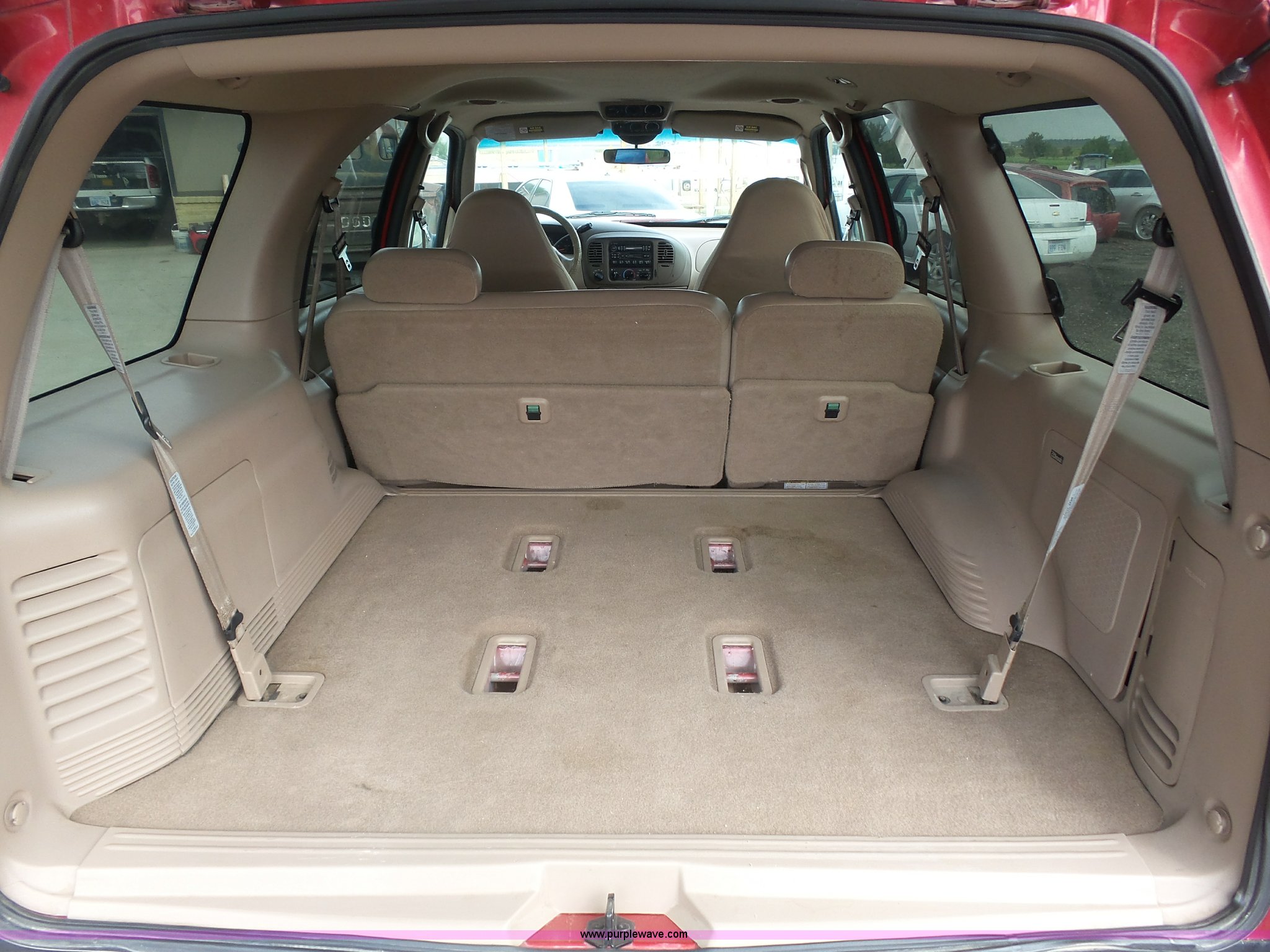 Purple Wave is selling a used Passenger Vehicle in Kansas. This item is a 1998 Ford Expedition Eddie Bauer SUV with the following: 164,160 miles on odometer, 5.4L V8 SOHC 16V gas engine, Automatic transmission, Four wheel drive, AC and heat, Tilt, Cruise, AM/FM/CD/cassette, Six disc cd player, Power windows, locks, mirrors, and seat, Leather interior, Rear climate control, Fog lights, Front tow hooks, Running boards, LT265/70R17 tires, Check engine light on, Third row seat missing