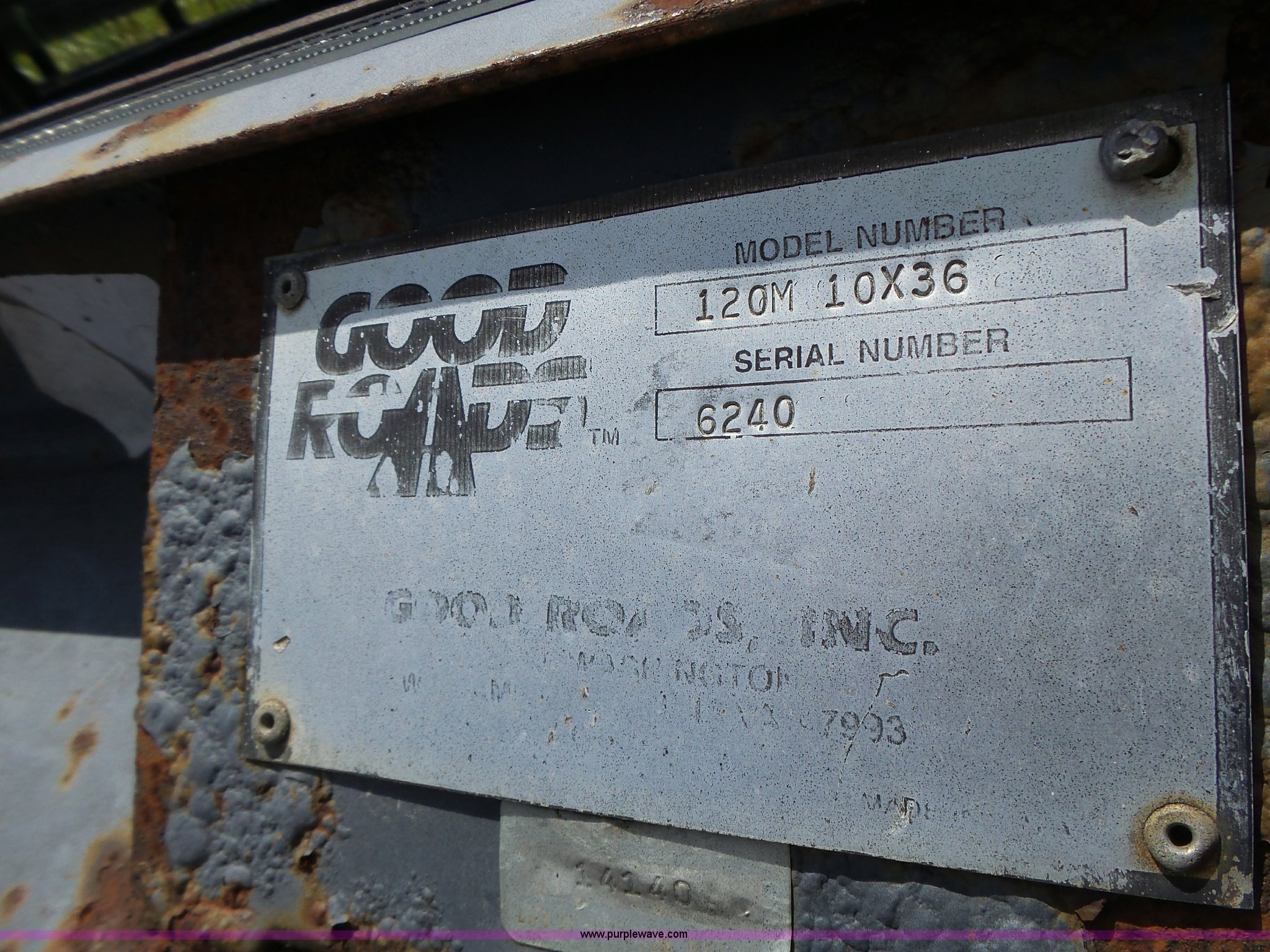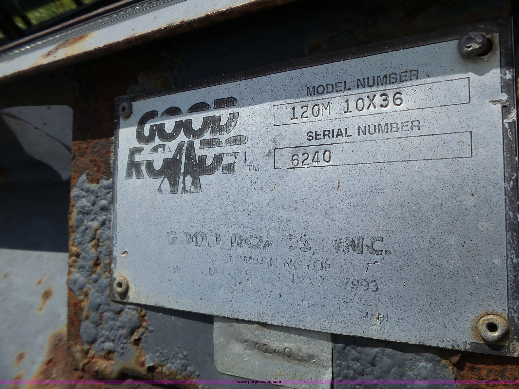 Purple Wave is selling a used Truck Part and Attach. in Missouri. This item is a Good Roads 120M plow with the following: 10'W, Mount, Serial 6240