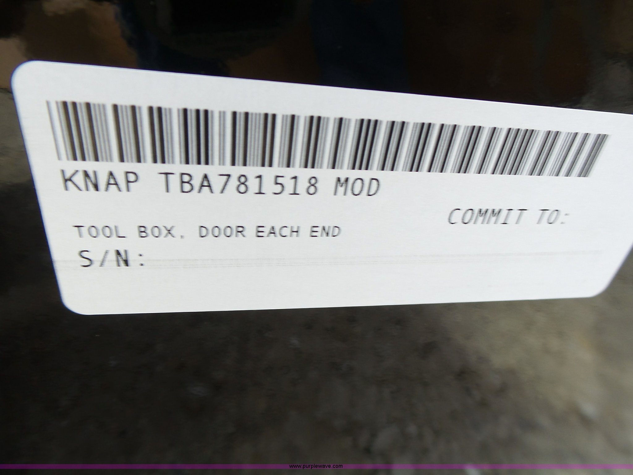Purple Wave is selling a used Automotive Parts or Acces. in Missouri. This item is a Knapheide TBA781518 toolbox with the following: 78" x 16"W x 18"H, Opens on end