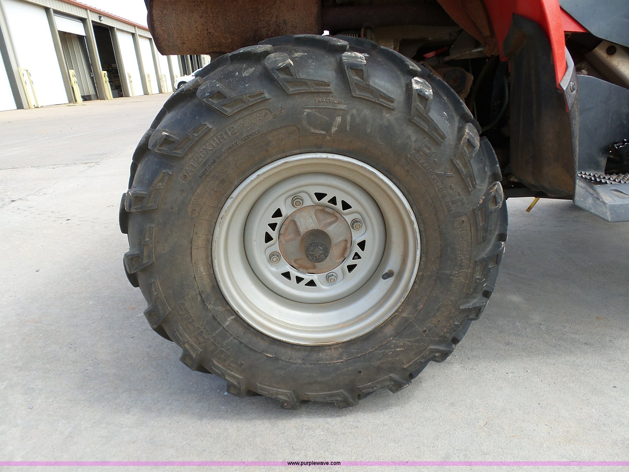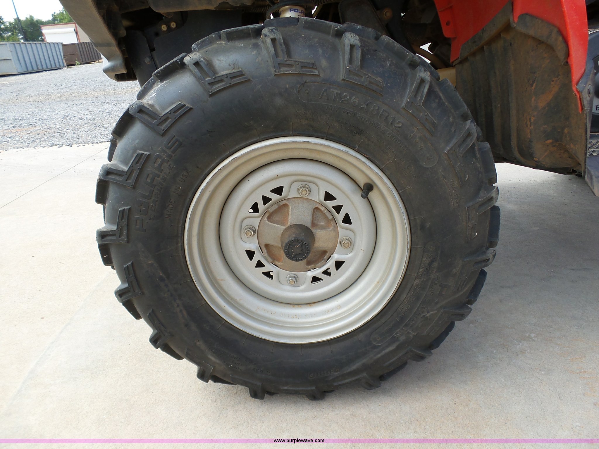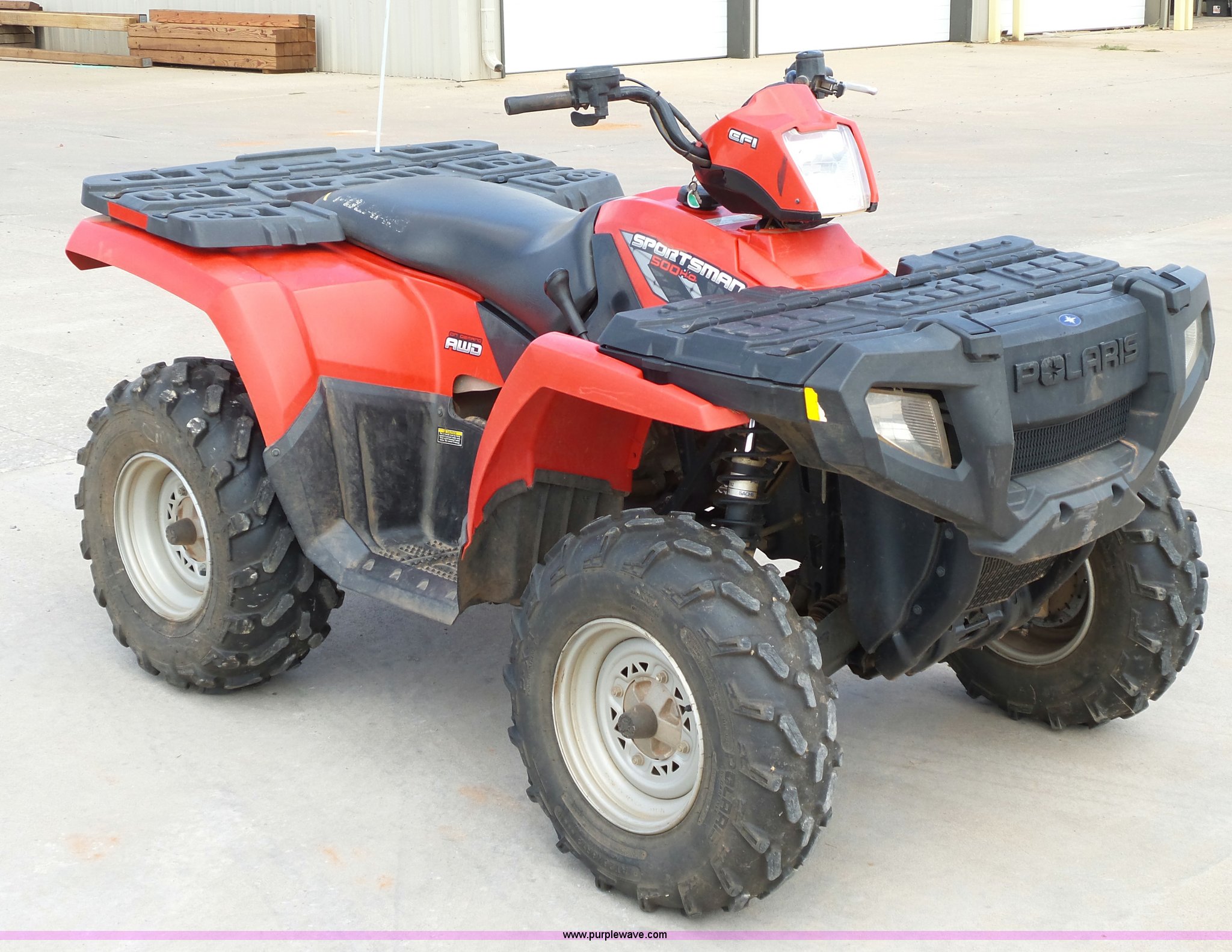 Purple Wave is selling a used ATV in Oklahoma. This item is a 2008 Polaris Sportsman 500 ATV with the following: 2,834 miles on odometer, Automatic transmission, All wheel drive, Polaris AT26x8R12 front tires, Polaris AT26x11R12 rear tires, G-Max helmet, Owner's manual