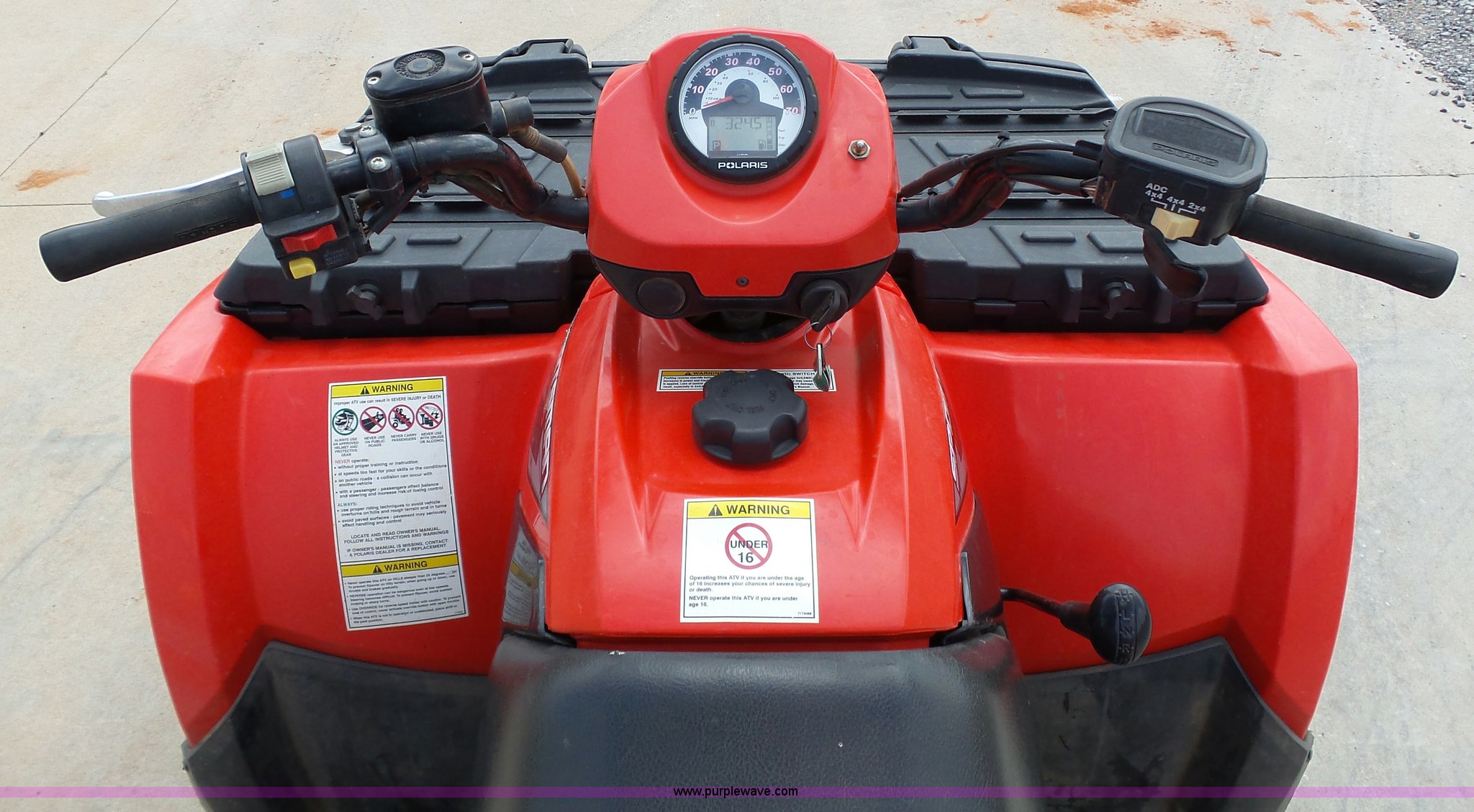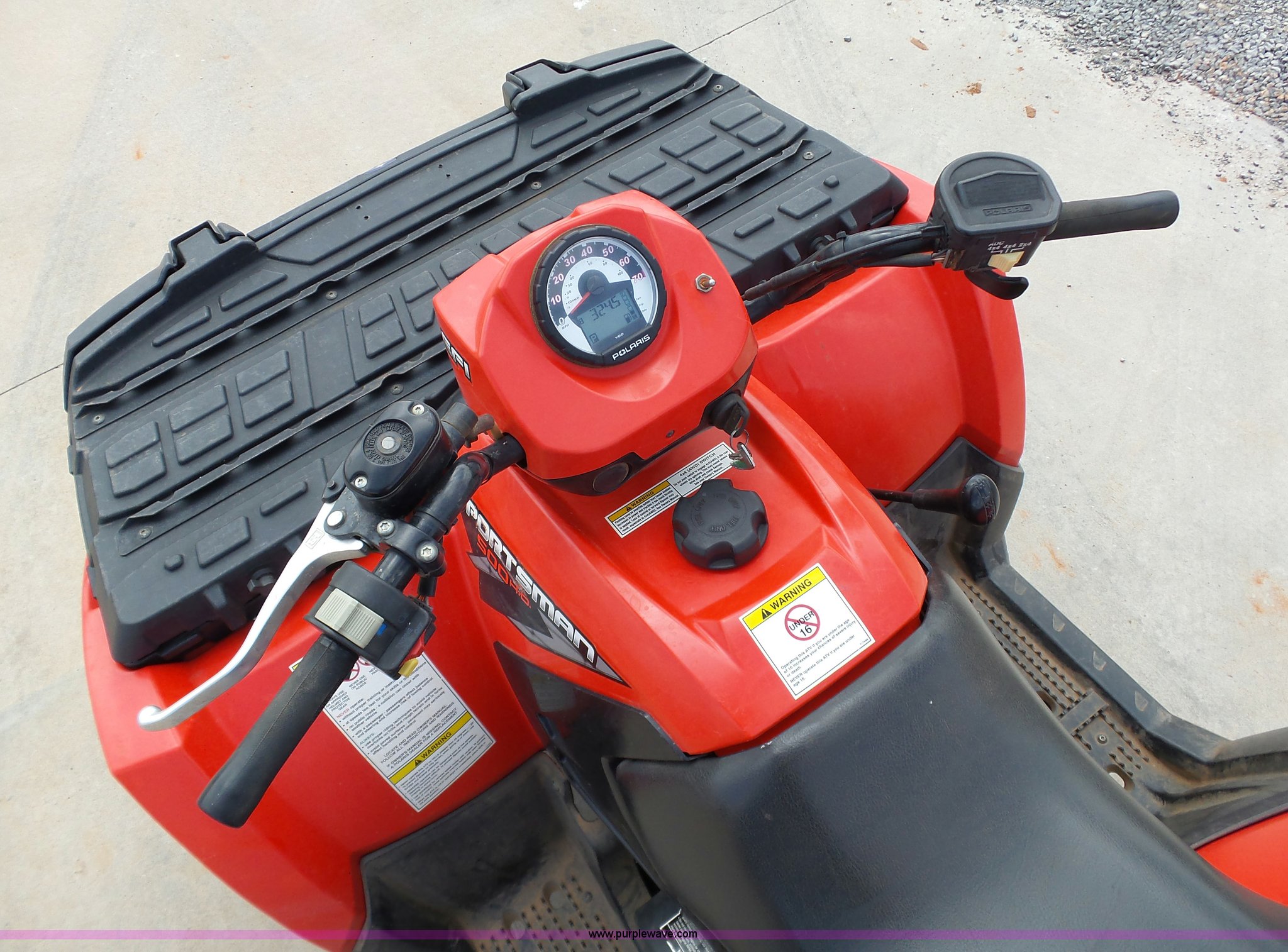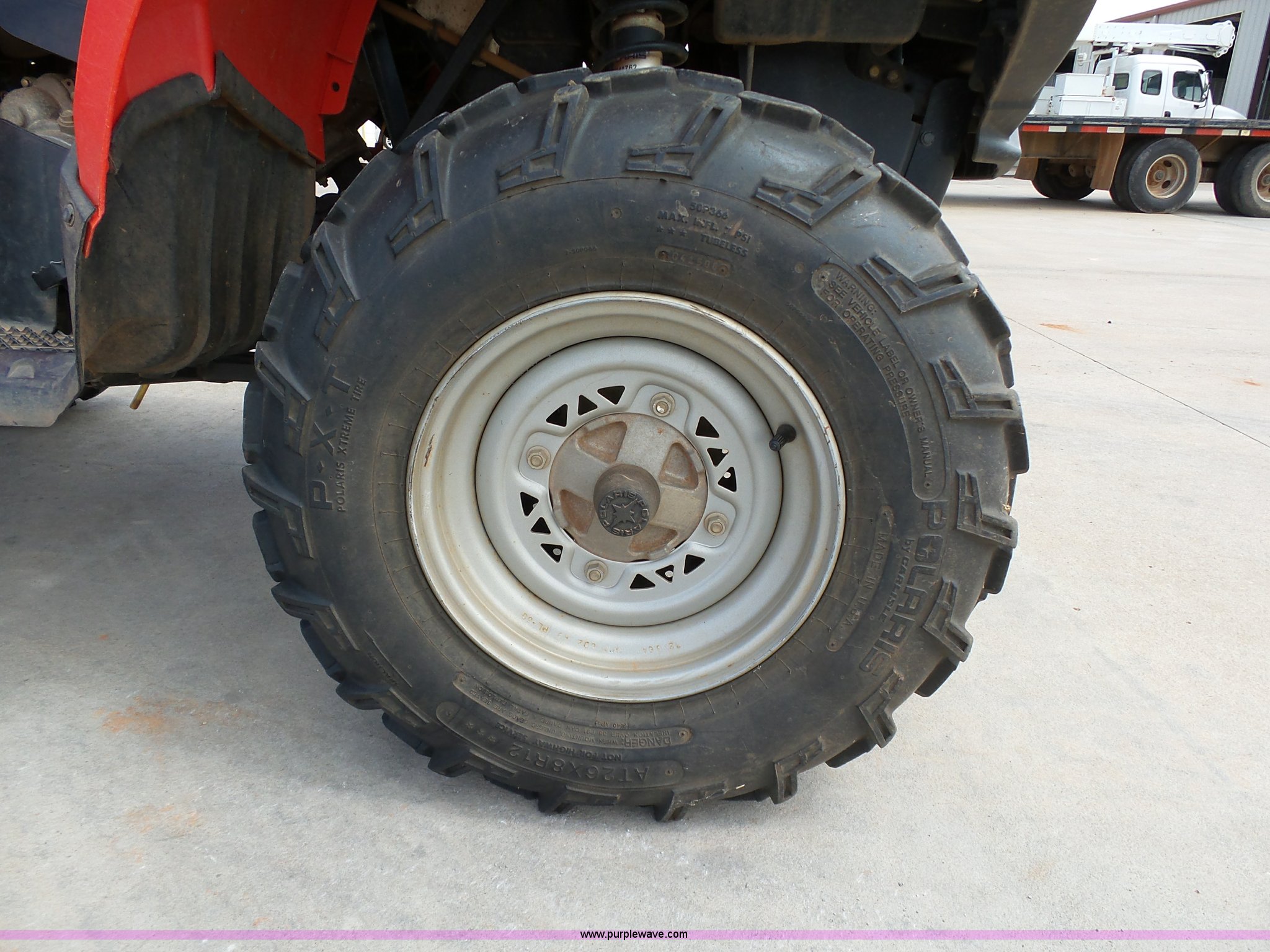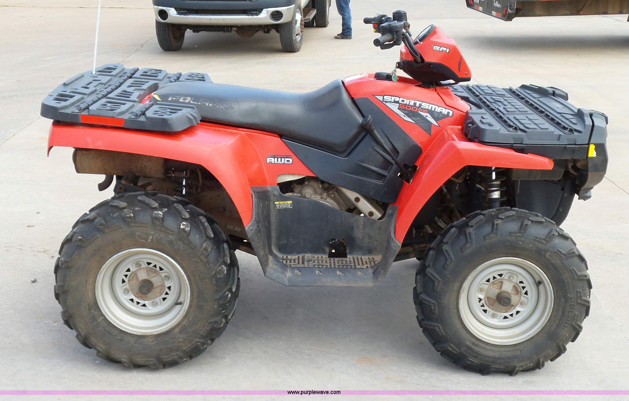 Purple Wave is selling a used ATV in Oklahoma. This item is a 2008 Polaris Sportsman 500 ATV with the following: 2,834 miles on odometer, Automatic transmission, All wheel drive, Polaris AT26x8R12 front tires, Polaris AT26x11R12 rear tires, G-Max helmet, Owner's manual