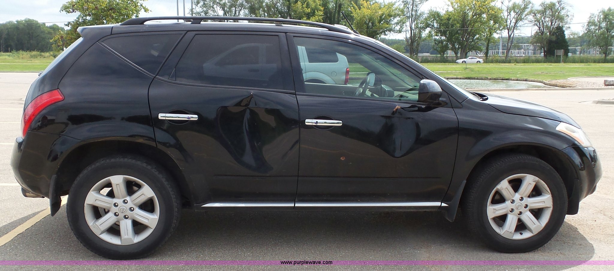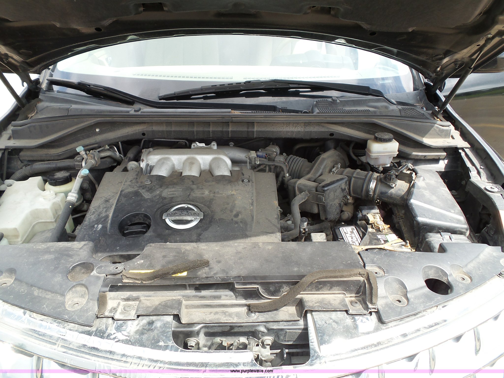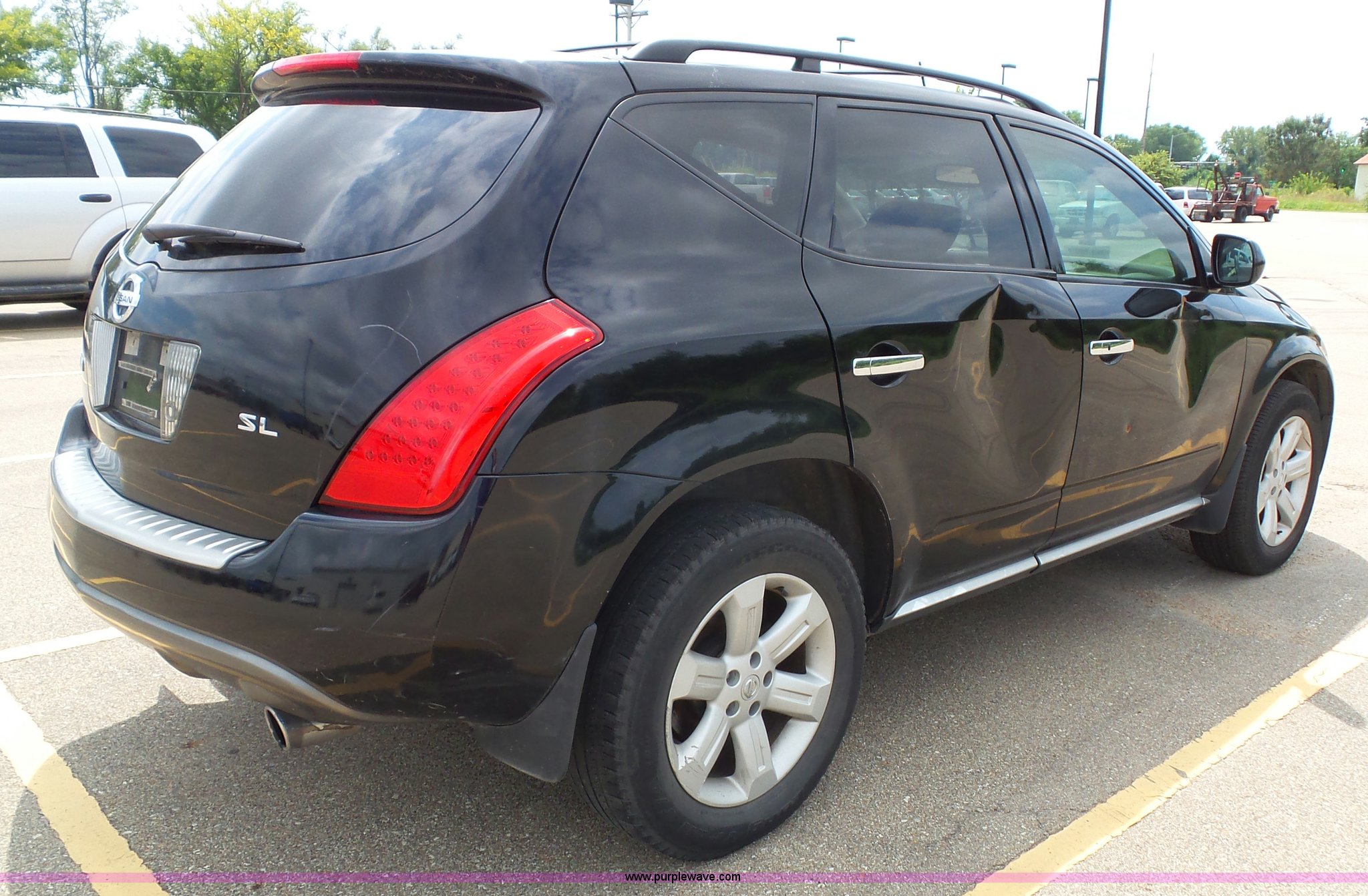 Purple Wave is selling a used Passenger Vehicle in Kansas. This item is a 2006 Nissan Murano SL SUV with the following: 156,982 miles on odometer, 3.5L V6 DOHC 24V gas engine, Automatic transmission, AC and heat, Tilt, Cruise, AM/FM/CD/cassette, Power windows, locks, mirrors, and seats, Leather interior, Sunroof, 235/65R18 tires, Battery dead, Rust, Passenger side cosmetic damage