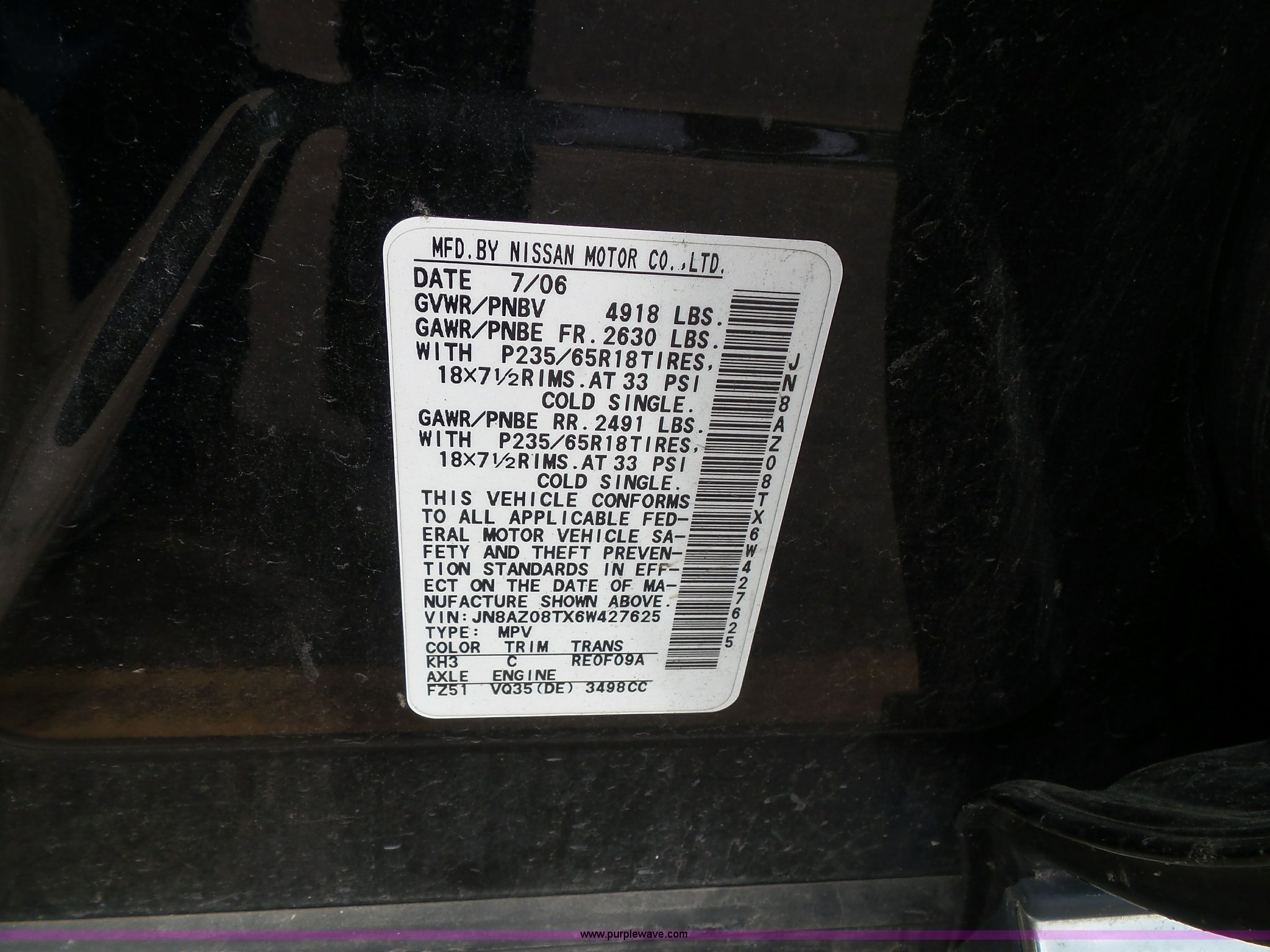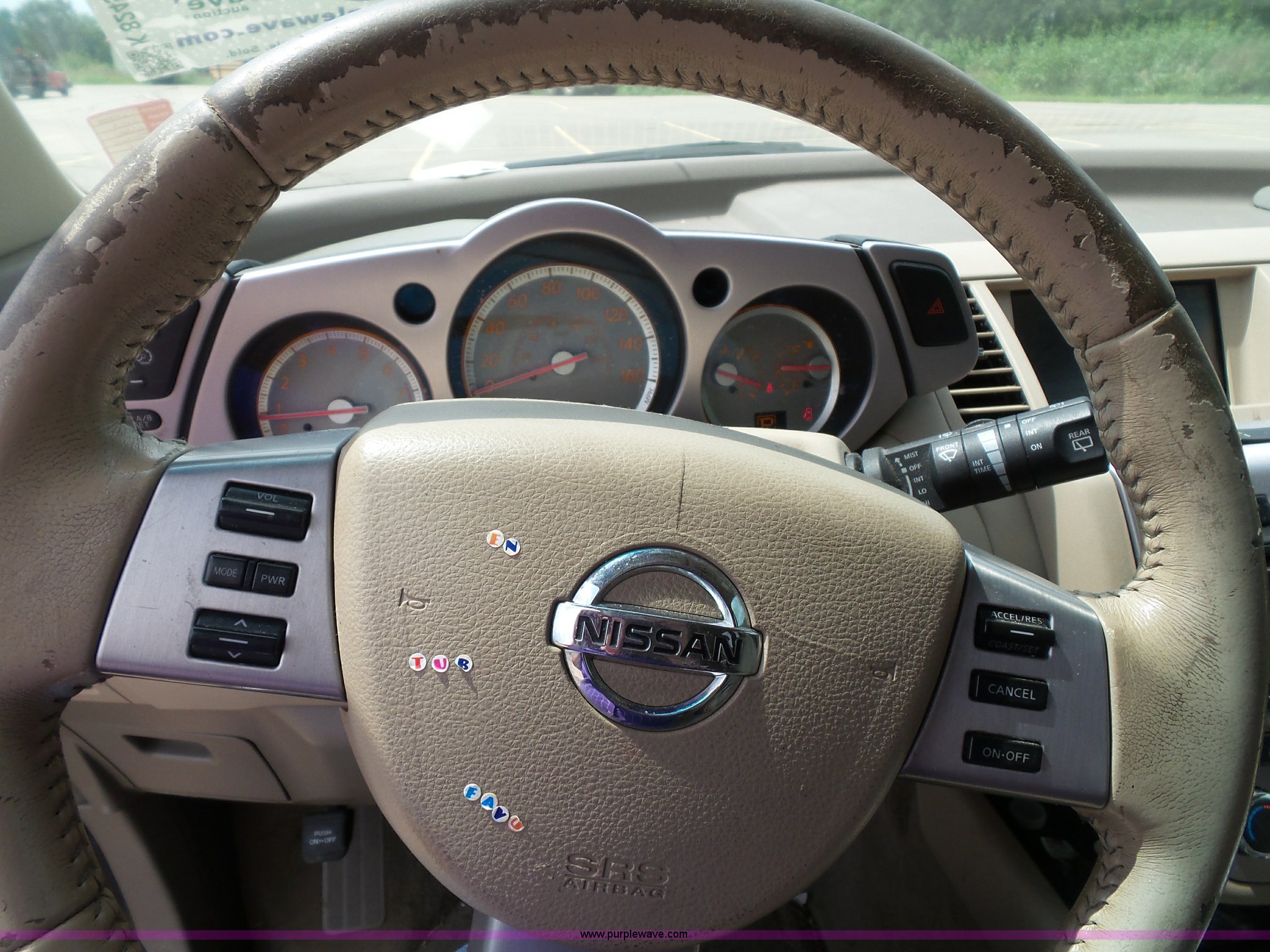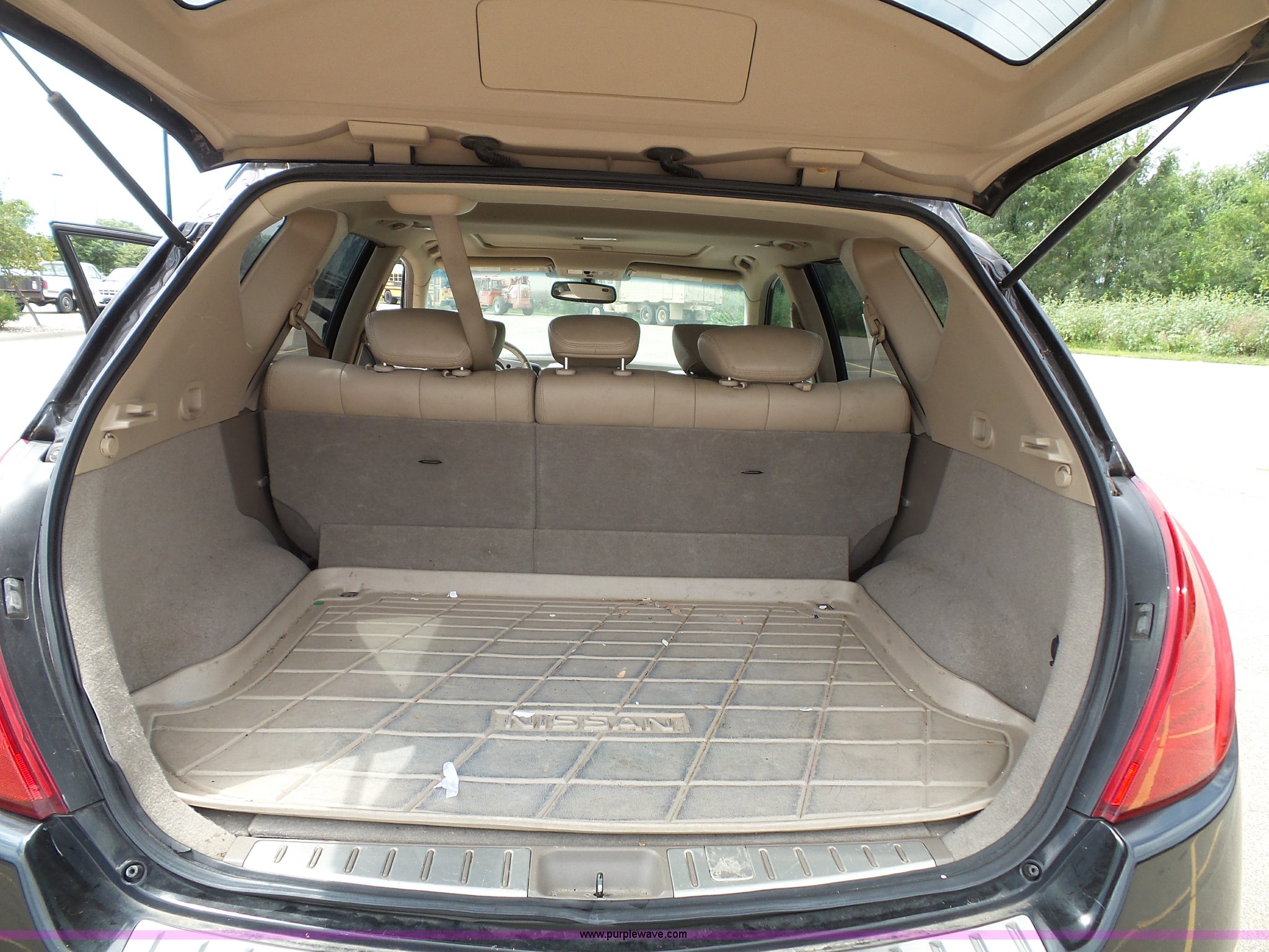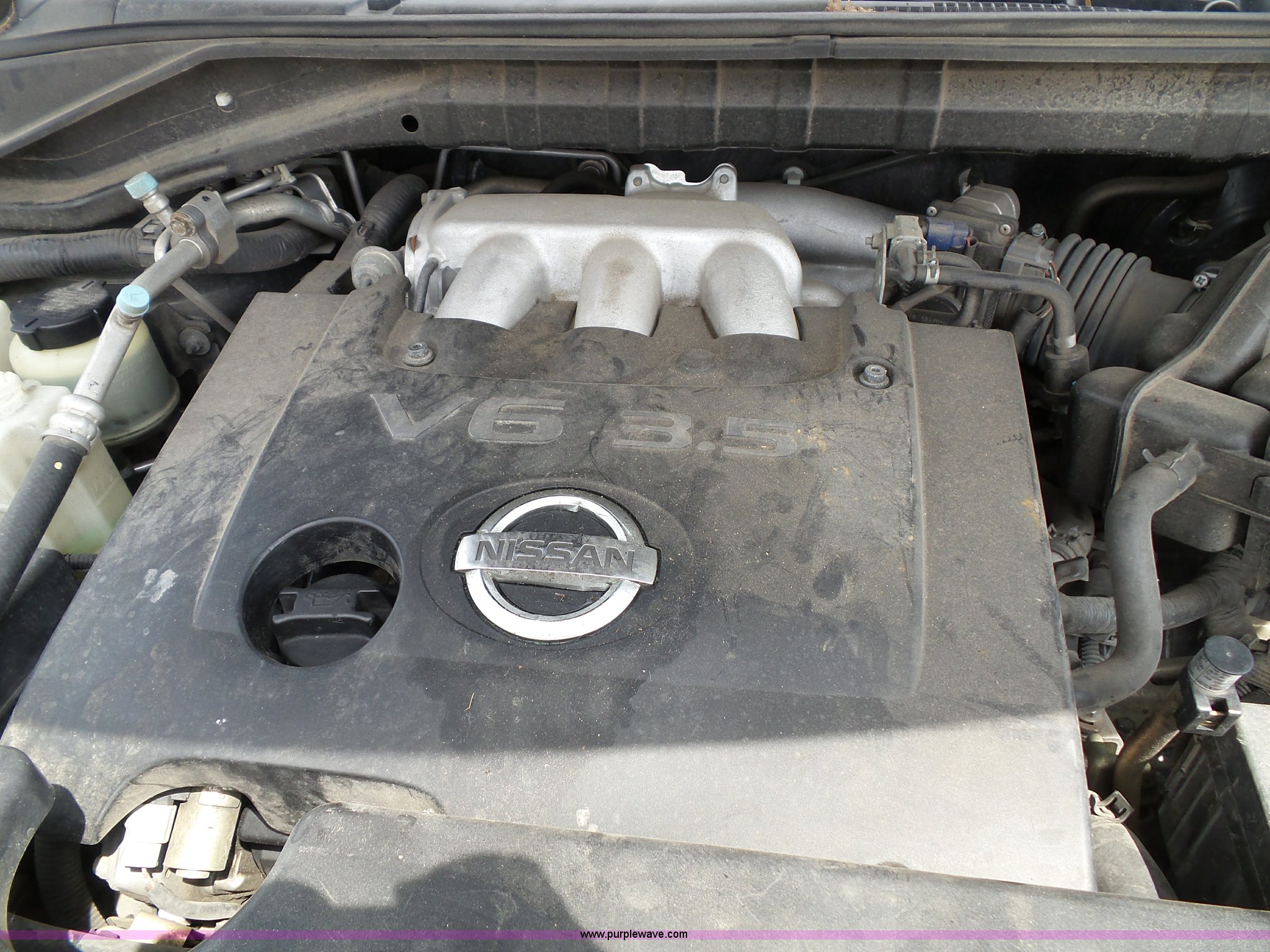 Purple Wave is selling a used Passenger Vehicle in Kansas. This item is a 2006 Nissan Murano SL SUV with the following: 156,982 miles on odometer, 3.5L V6 DOHC 24V gas engine, Automatic transmission, AC and heat, Tilt, Cruise, AM/FM/CD/cassette, Power windows, locks, mirrors, and seats, Leather interior, Sunroof, 235/65R18 tires, Battery dead, Rust, Passenger side cosmetic damage