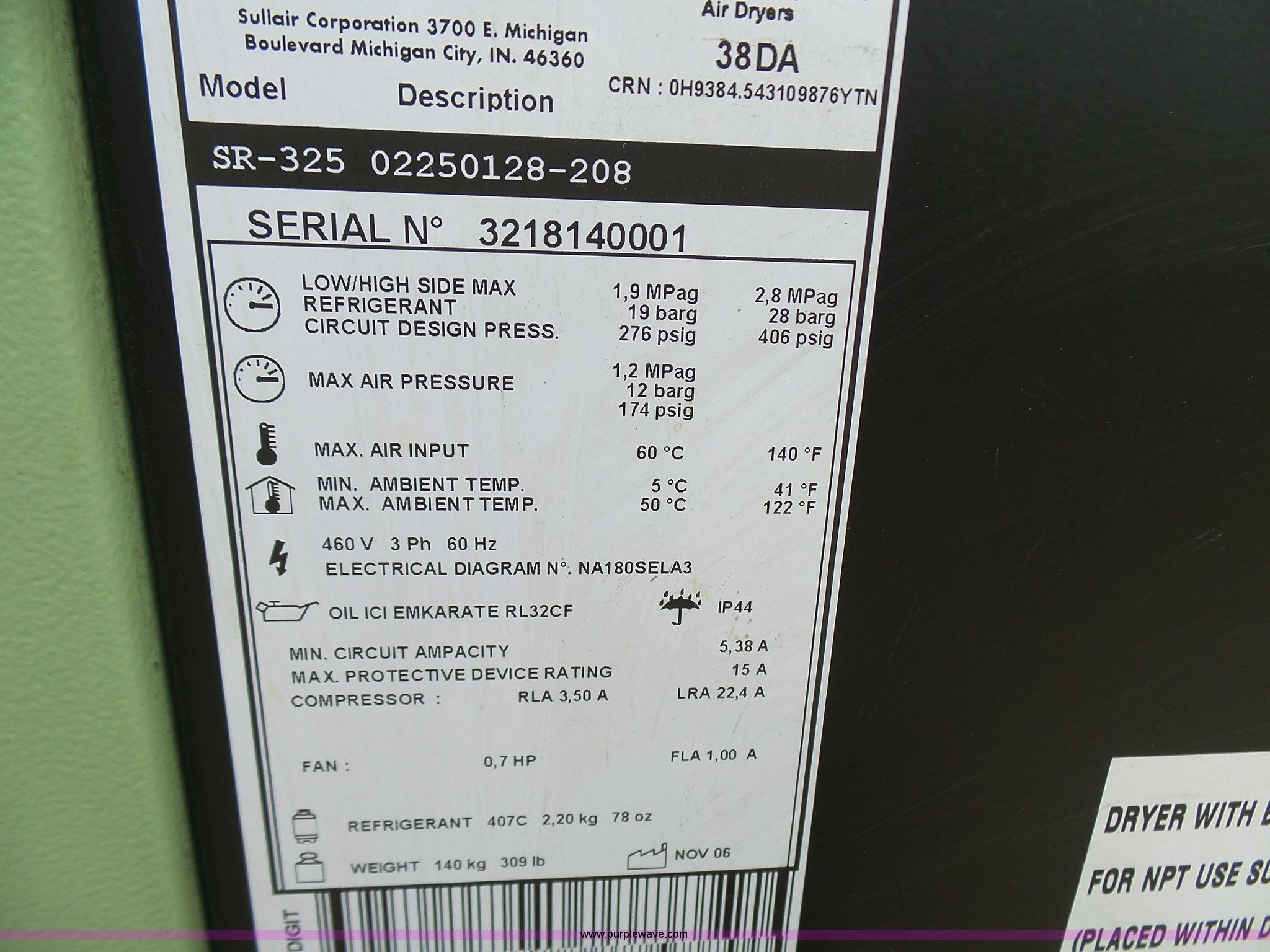 • N9464 image for item N9464 Sullair SR325 refrigerated air dryer