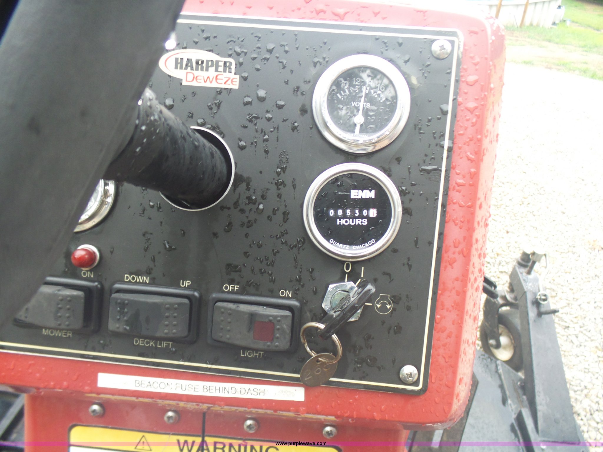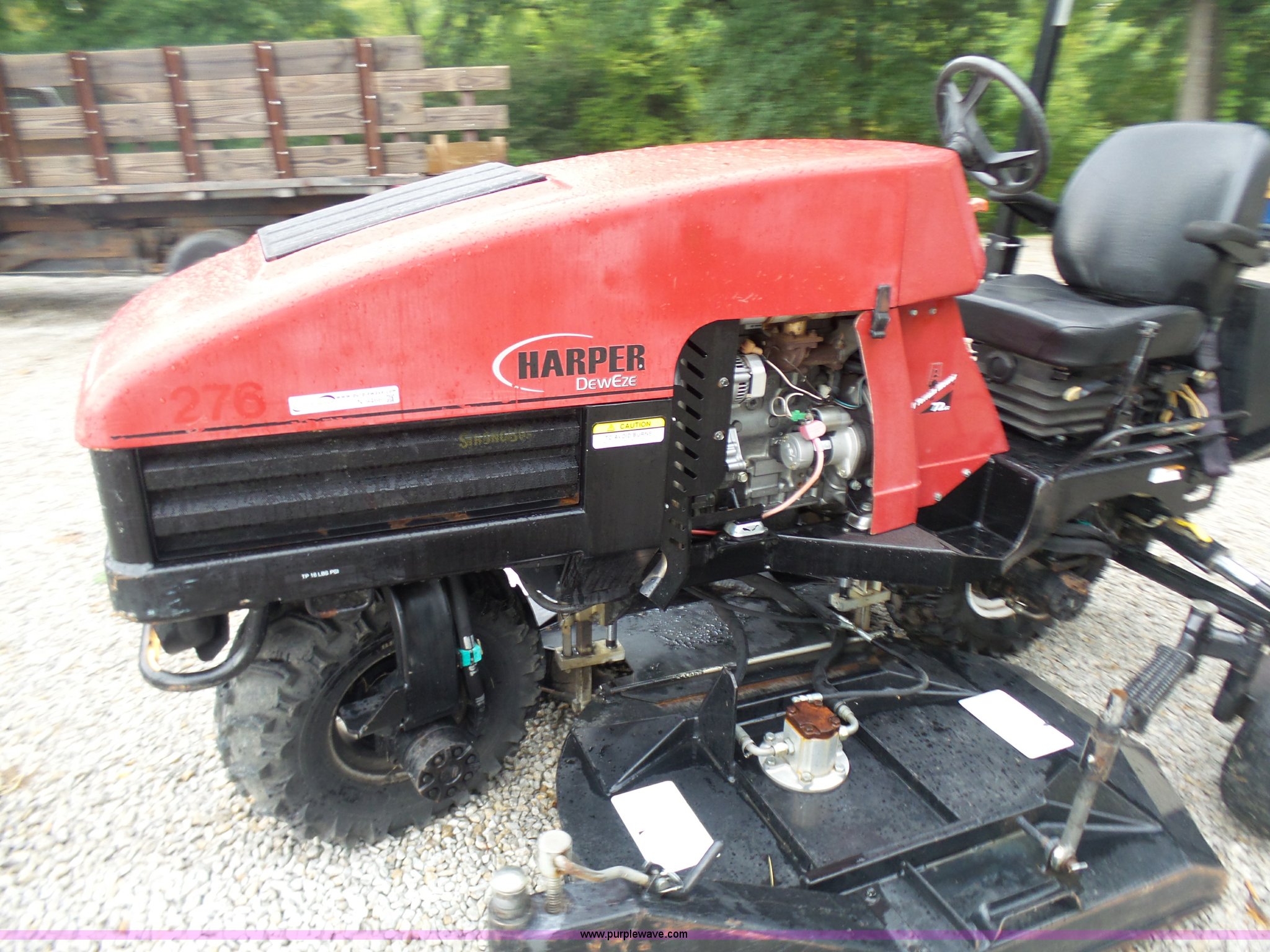 Purple Wave is selling a used Commercial Turf Mower in Missouri. This item is a 2005 Harper DewEze ATM72LC slope mower with the following: 530 hours on meter, 72" cut, Yanmar diesel engine, 30 HP, Hydrostatic transmission, All wheel drive, ROPS, Power steering, Articulating center deck, Hydraulic decks, 25x12.50-12 drive tires