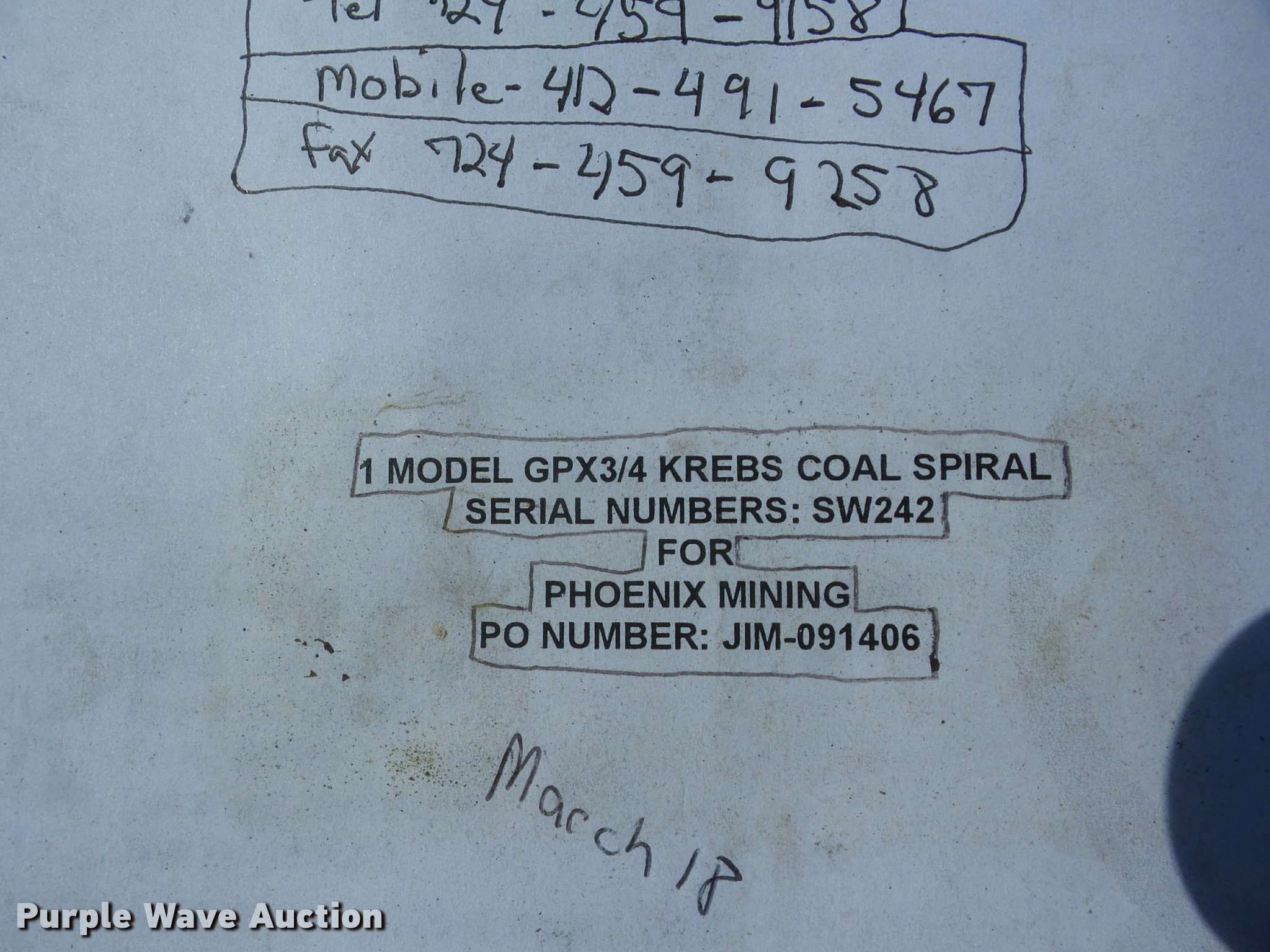 Take a look at this used Krebs GPX3/4 coal spiral being sold on September 29th, 2016 in the SOLD! September 29 Construction Equipment Auction made by Krebs. Take a look at all of the item information below or take a look at similar auctions for Mining Equipment.