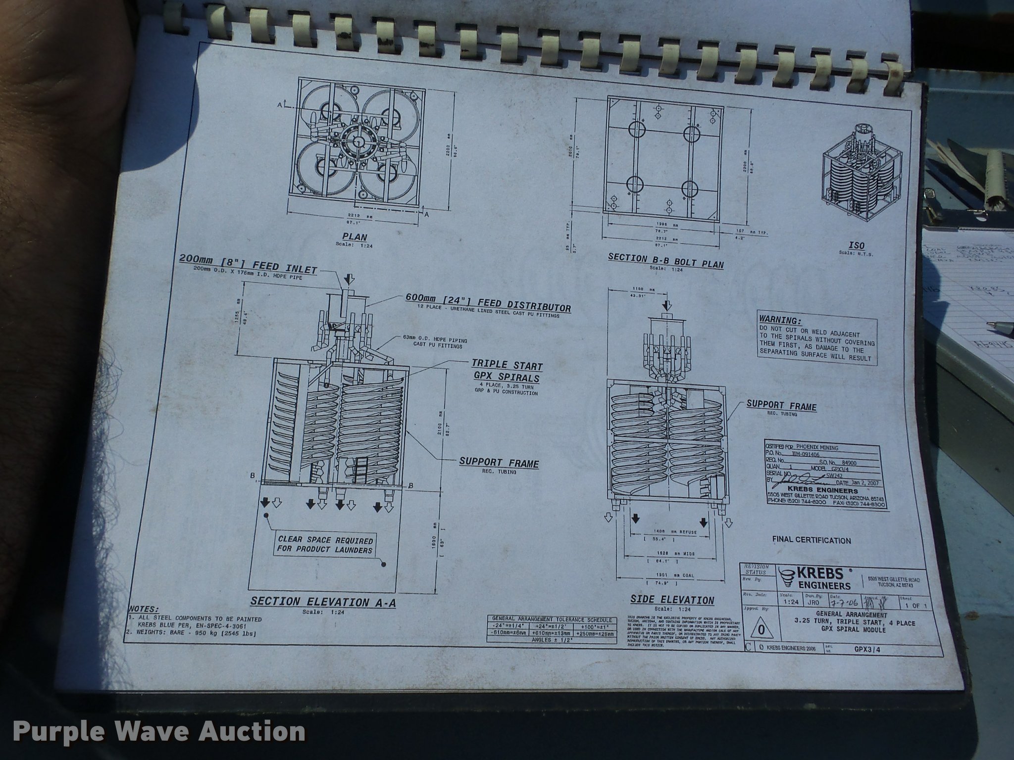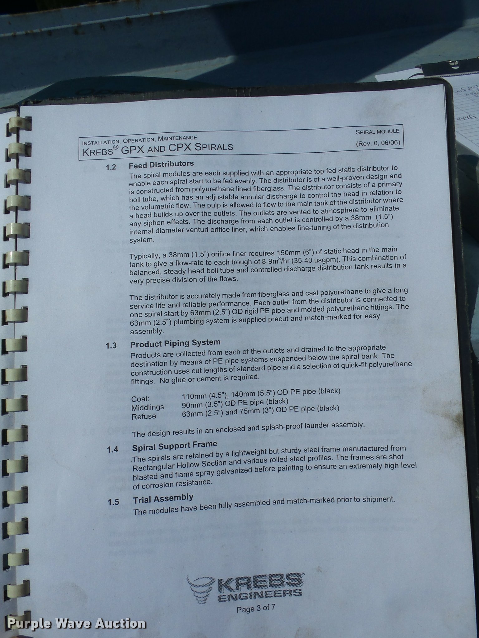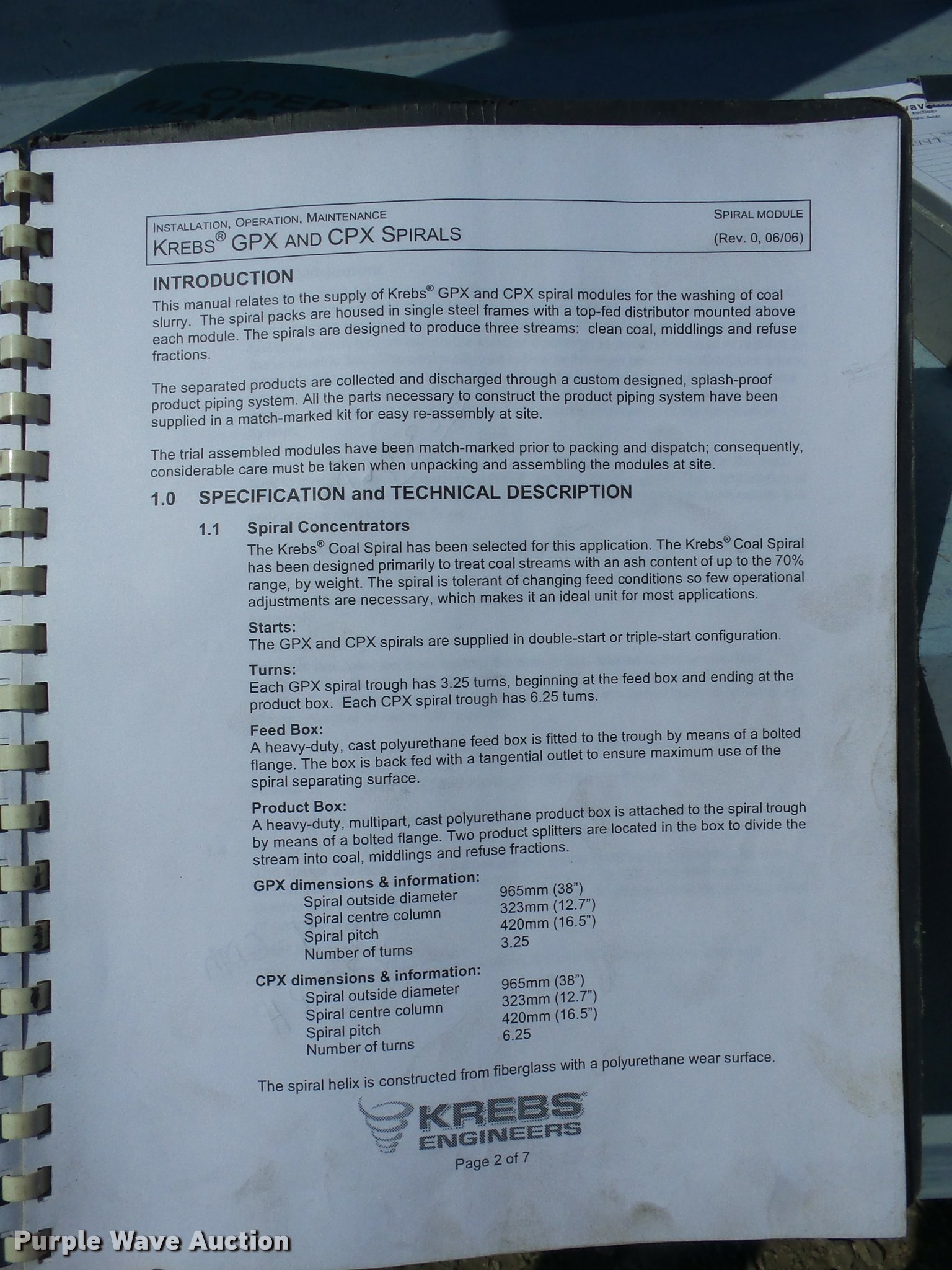Purple Wave is selling a used Mining Equip. in Kansas. This item is a Krebs GPX3/4 coal spiral with the following: (3) spirals, 38", 30.25 turns, 16.5 degree pitch, Serial SW242