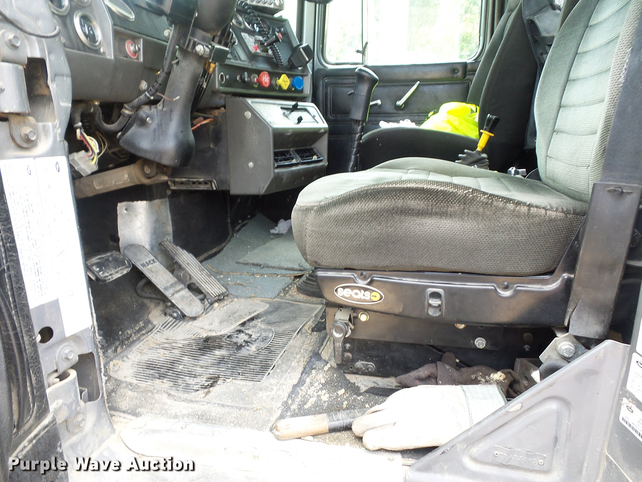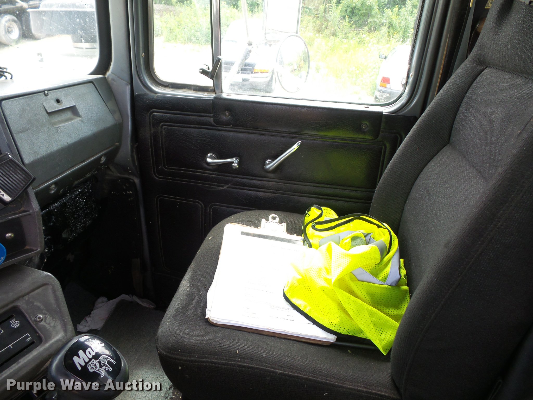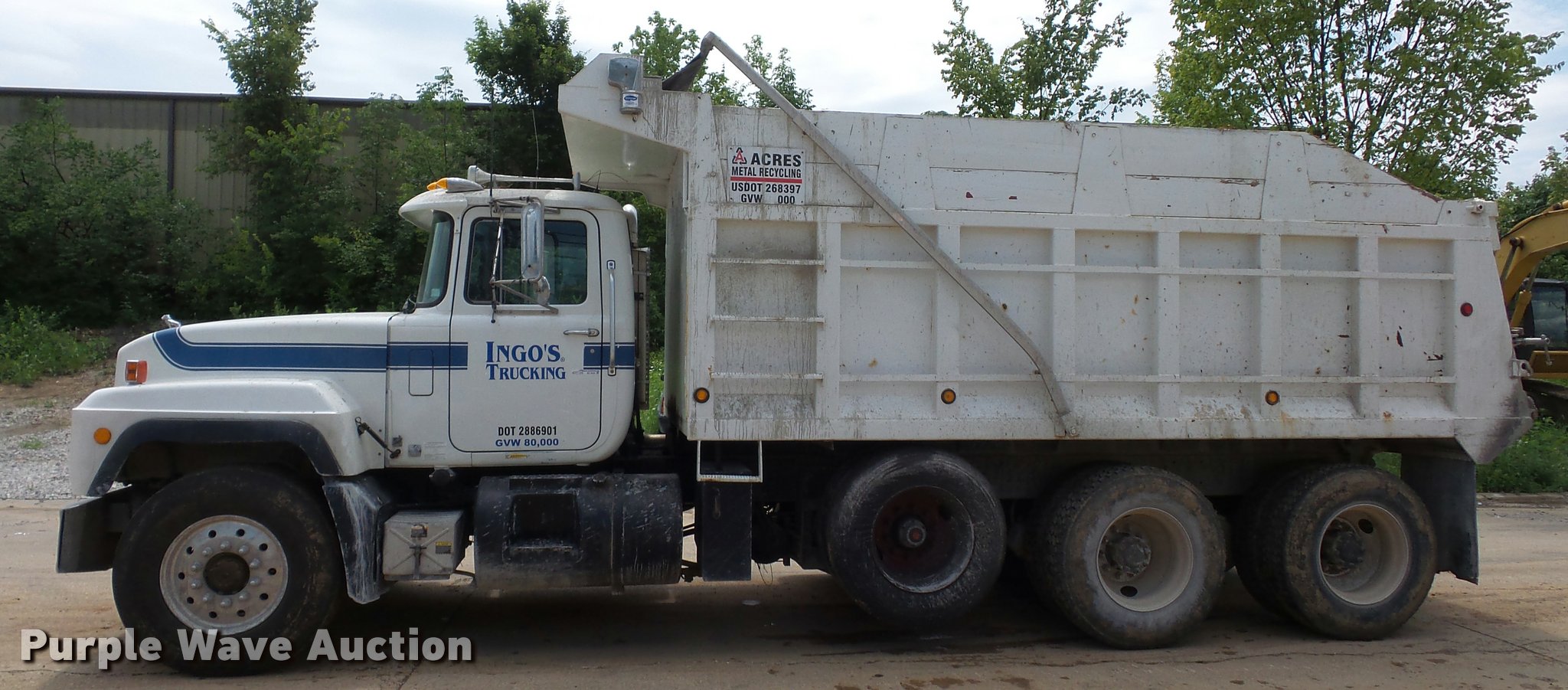 Purple Wave is selling a used Construction Dump Truck in Missouri. This item is a 2003 Mack RD688S dump truck with the following: 242,121 miles on odometer, 13,353 hours on meter, Mack E7 12.0L L6 turbo diesel engine, Manual transmission, Triple axle, Tag axle, AC and heat, Cruise, AM/FM/cassette, Power and heated mirrors, Air suspension seat, PTO, 17'L x 8'W steel dump bed, 46" side height, 21" side board height, Rollover tarp, Air operated end gate, Single ram hoist, Camelback suspension, Air brakes, 385/65R22.5 front tires, 11R22.5 rear tires, 295/75R22.5 tag axle tires, ABS light on