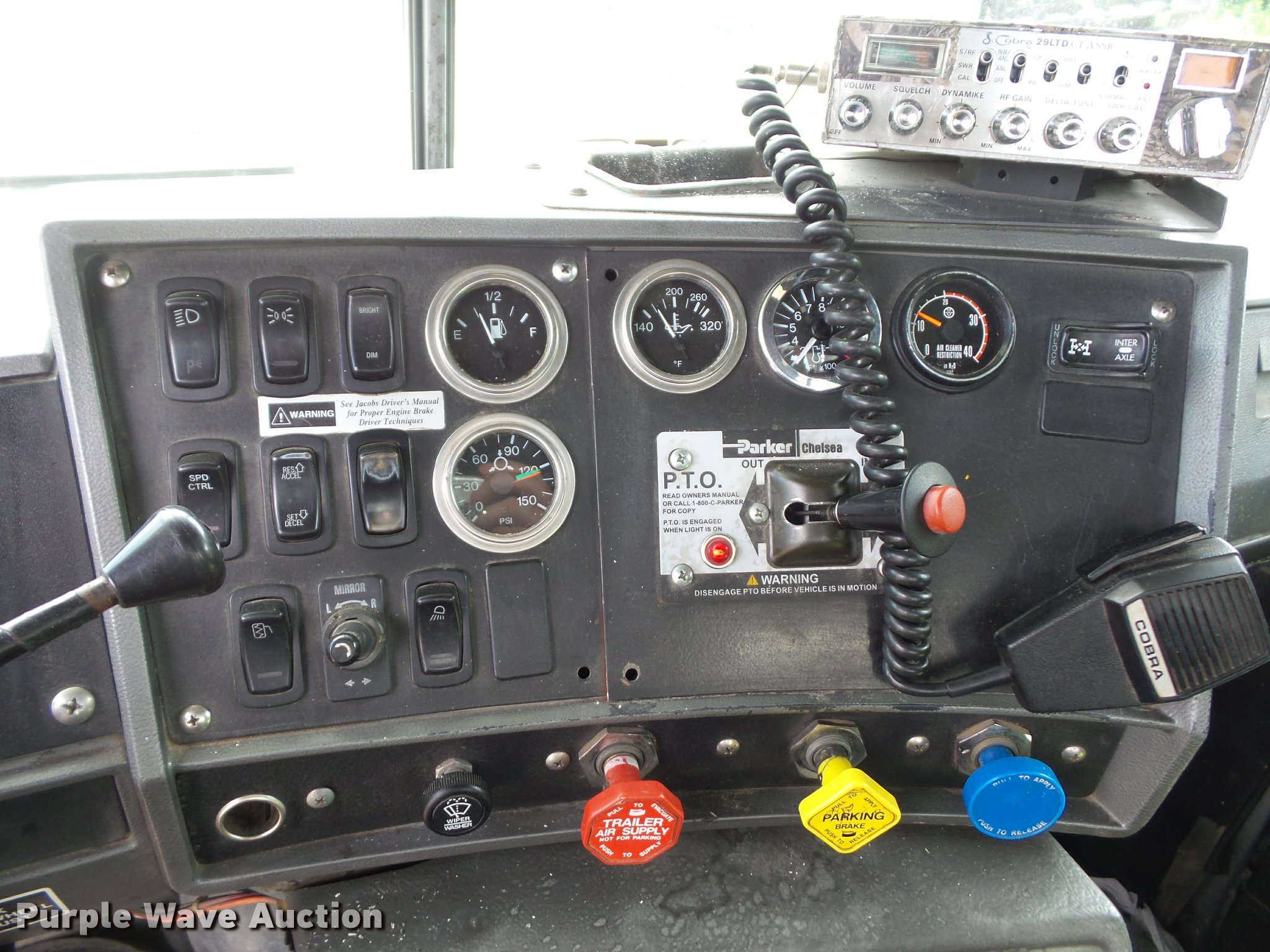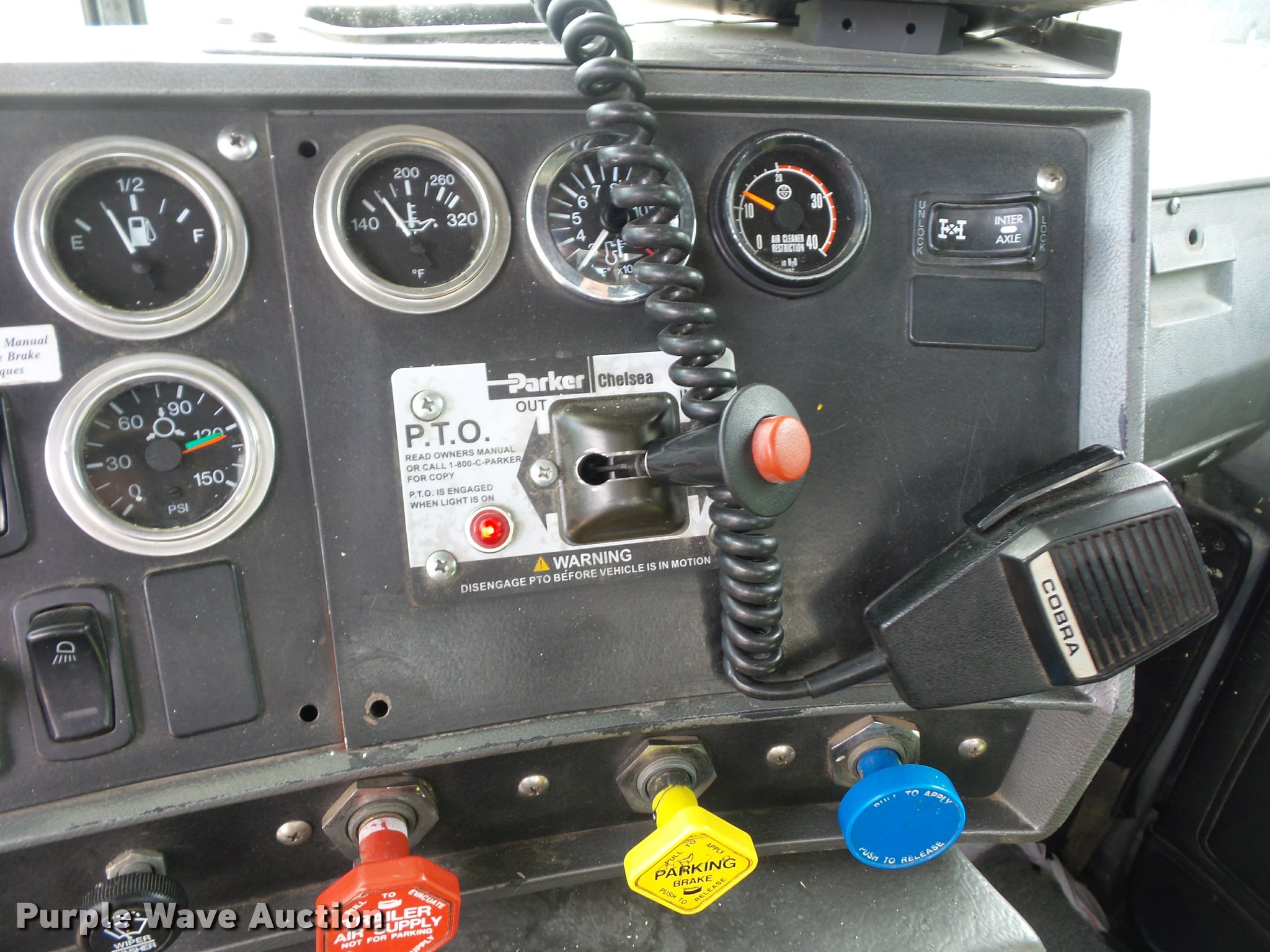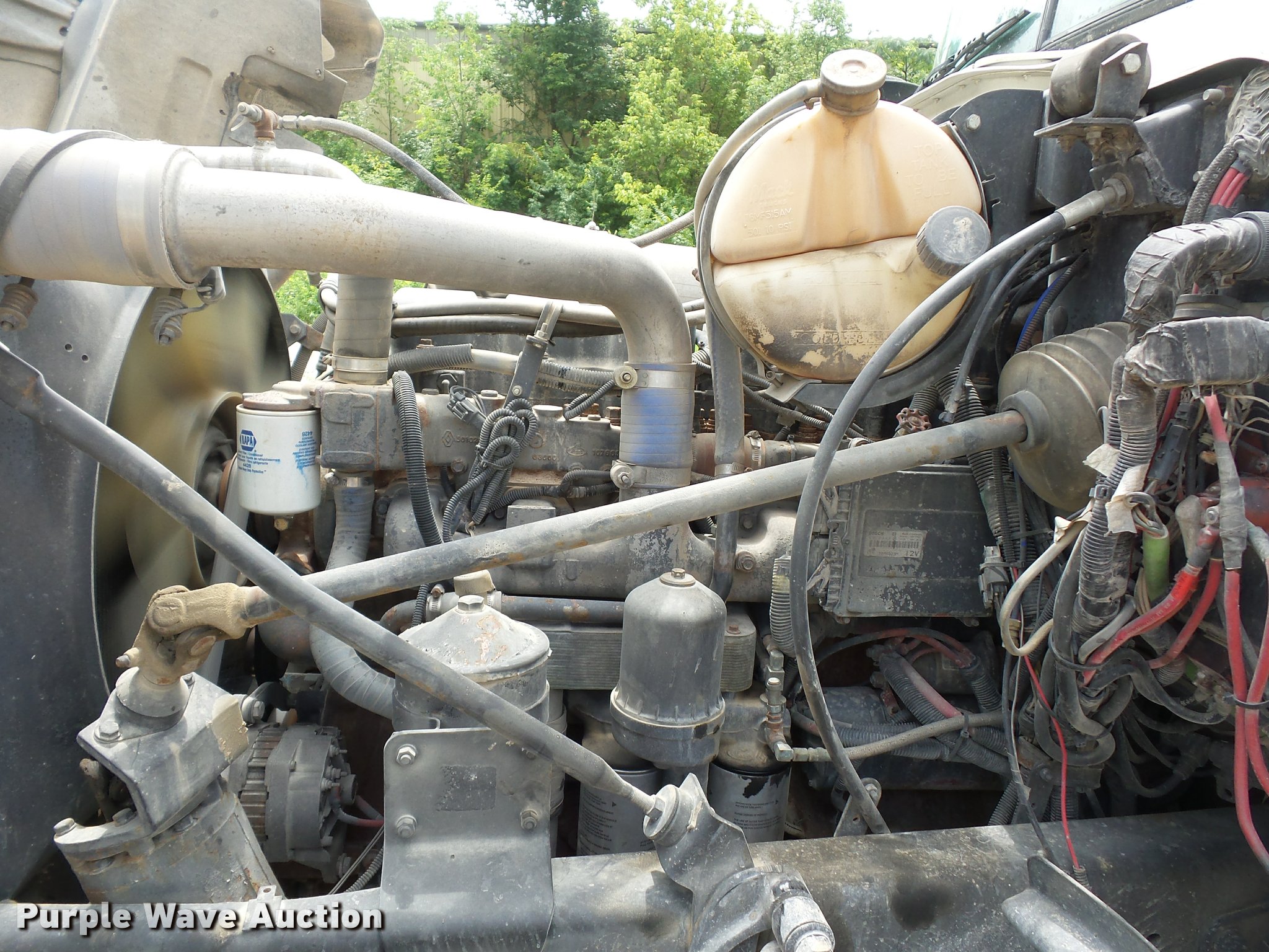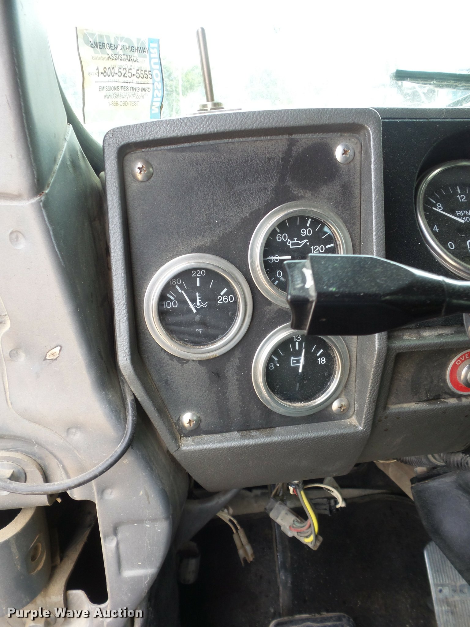 Purple Wave is selling a used Construction Dump Truck in Missouri. This item is a 2003 Mack RD688S dump truck with the following: 242,121 miles on odometer, 13,353 hours on meter, Mack E7 12.0L L6 turbo diesel engine, Manual transmission, Triple axle, Tag axle, AC and heat, Cruise, AM/FM/cassette, Power and heated mirrors, Air suspension seat, PTO, 17'L x 8'W steel dump bed, 46" side height, 21" side board height, Rollover tarp, Air operated end gate, Single ram hoist, Camelback suspension, Air brakes, 385/65R22.5 front tires, 11R22.5 rear tires, 295/75R22.5 tag axle tires, ABS light on