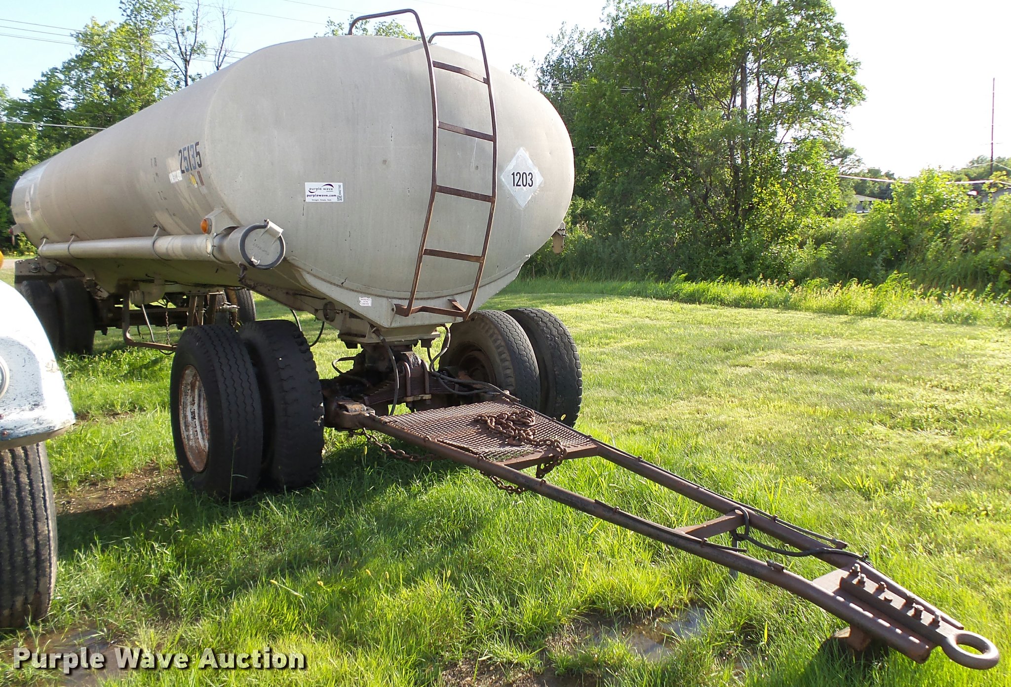 Purple Wave is selling a used Tank Trailer in South Dakota. This item is a 1958 Freuhauf CAUF-5-901 tank trailer with the following: 23'L x 8'W, 5,100 gallon capacity, Single 11"W manway, Aluminum construction, Fifth wheel plate, Single axle, Pintle hitch, Spring suspension, Air brakes, 11-22.5 tires