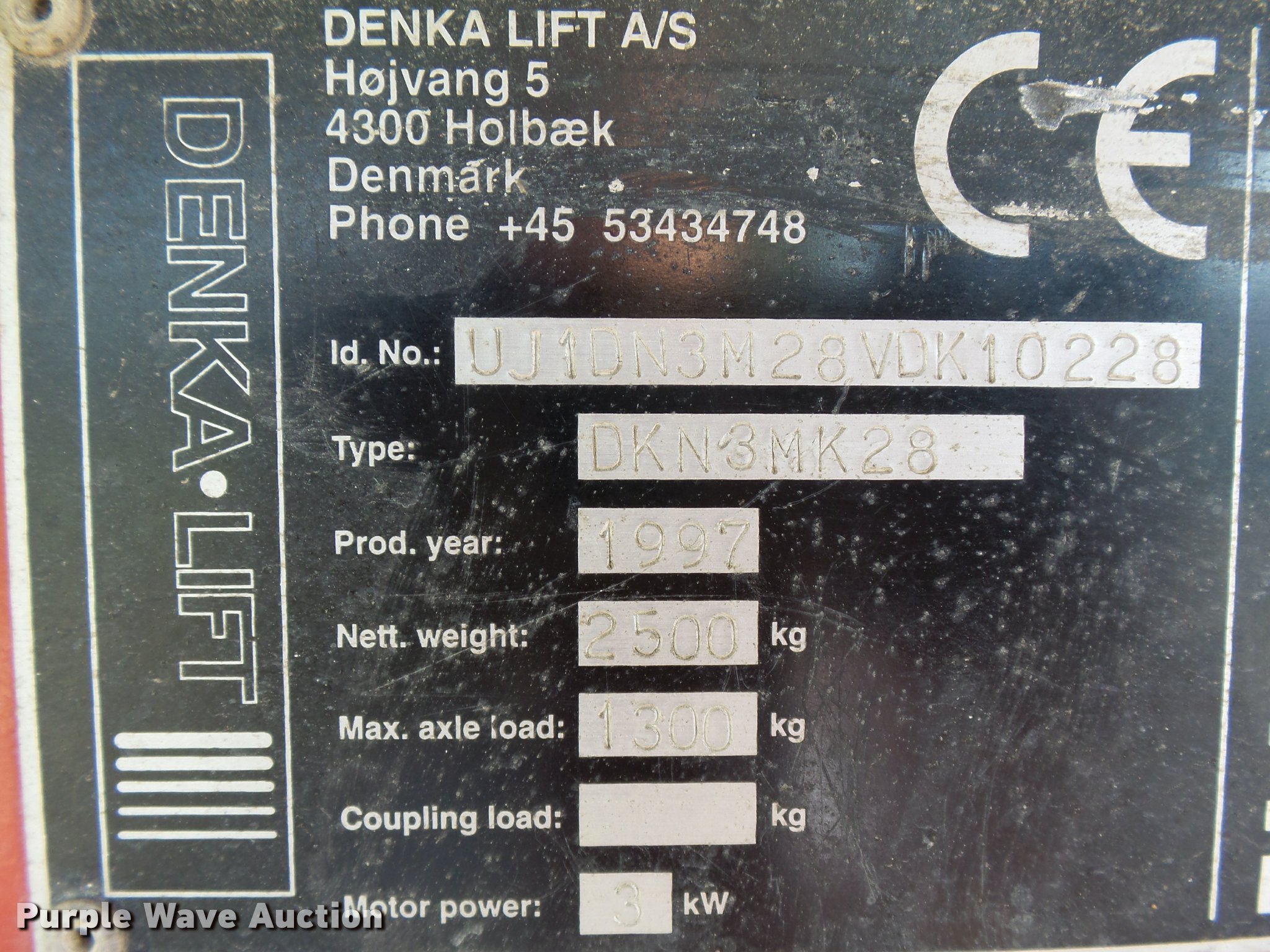 1997 Denka DKN3MK28 boom lift has sold in Fargo, North Dakota for $4950. Item J1636 sold on September 29th, 2016.