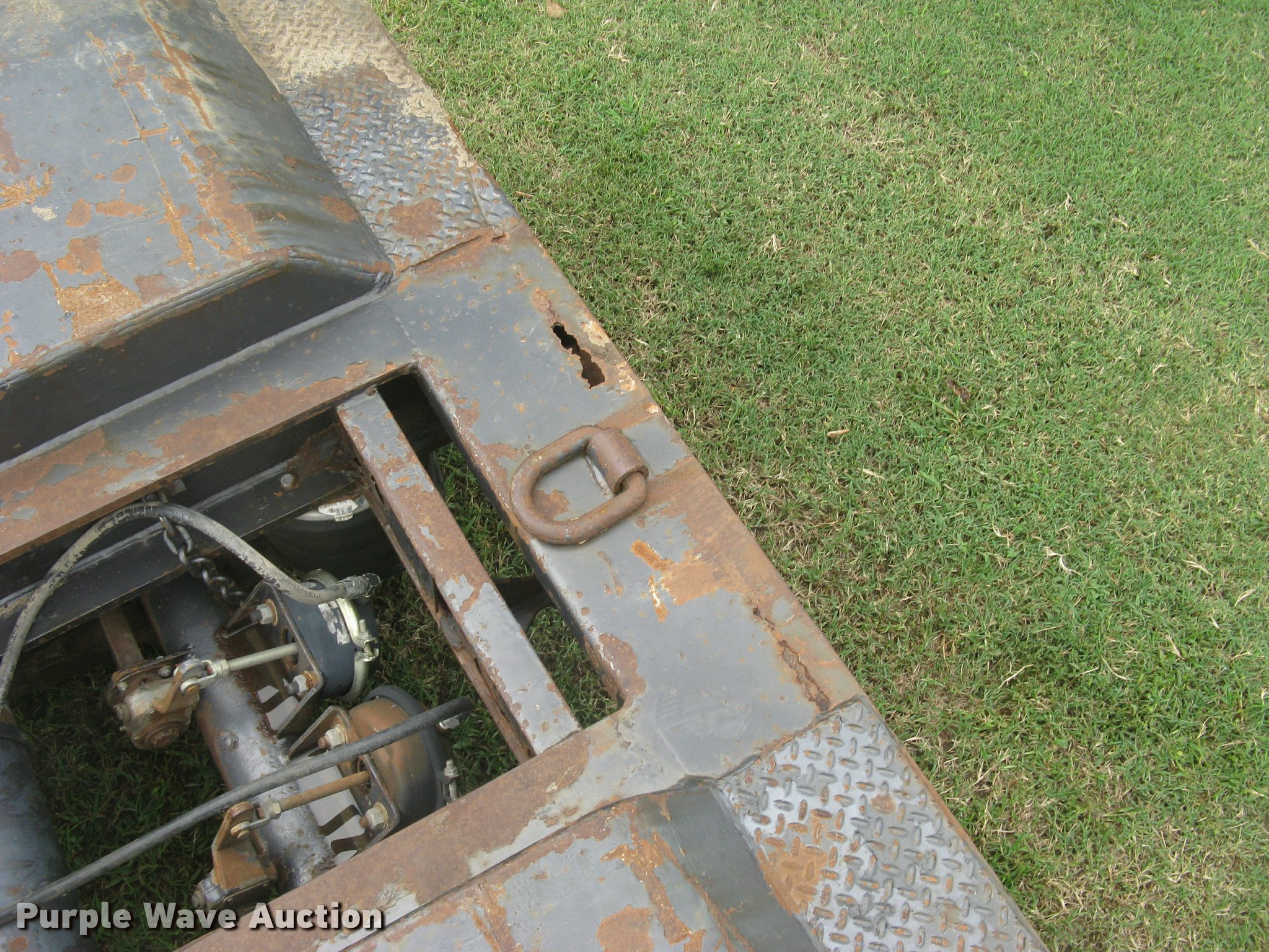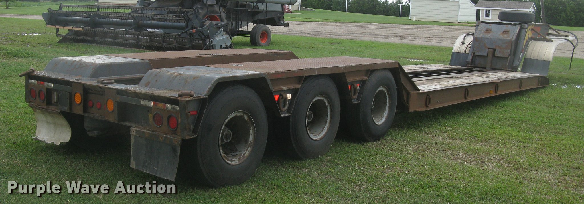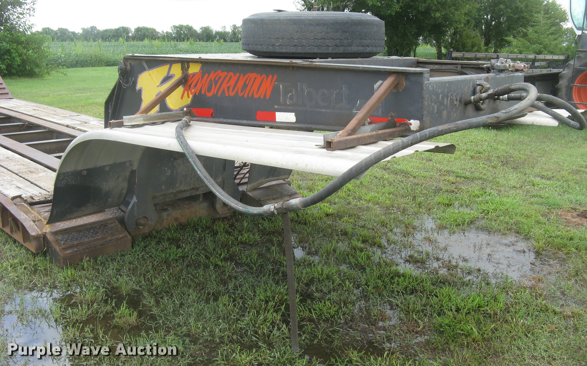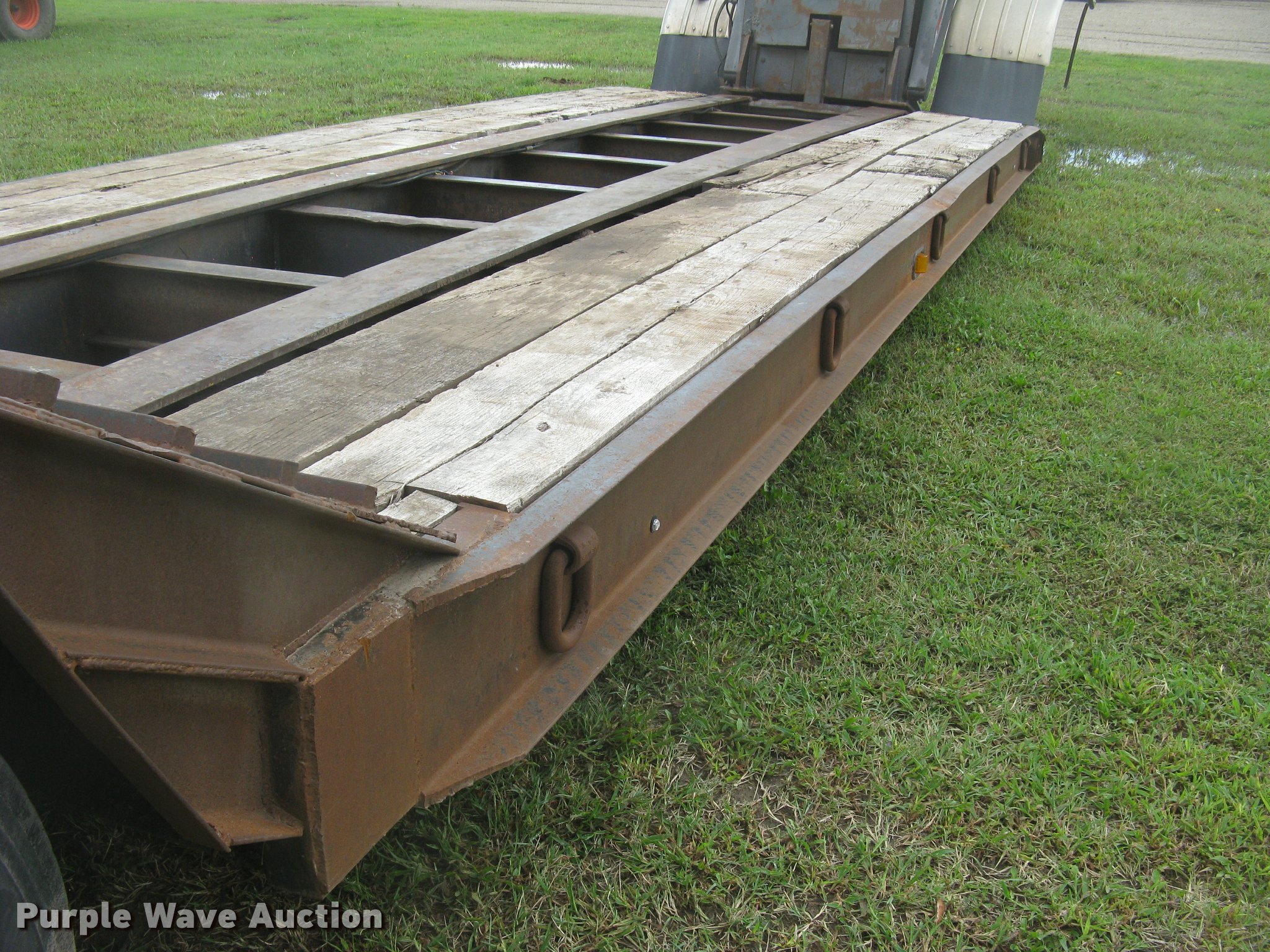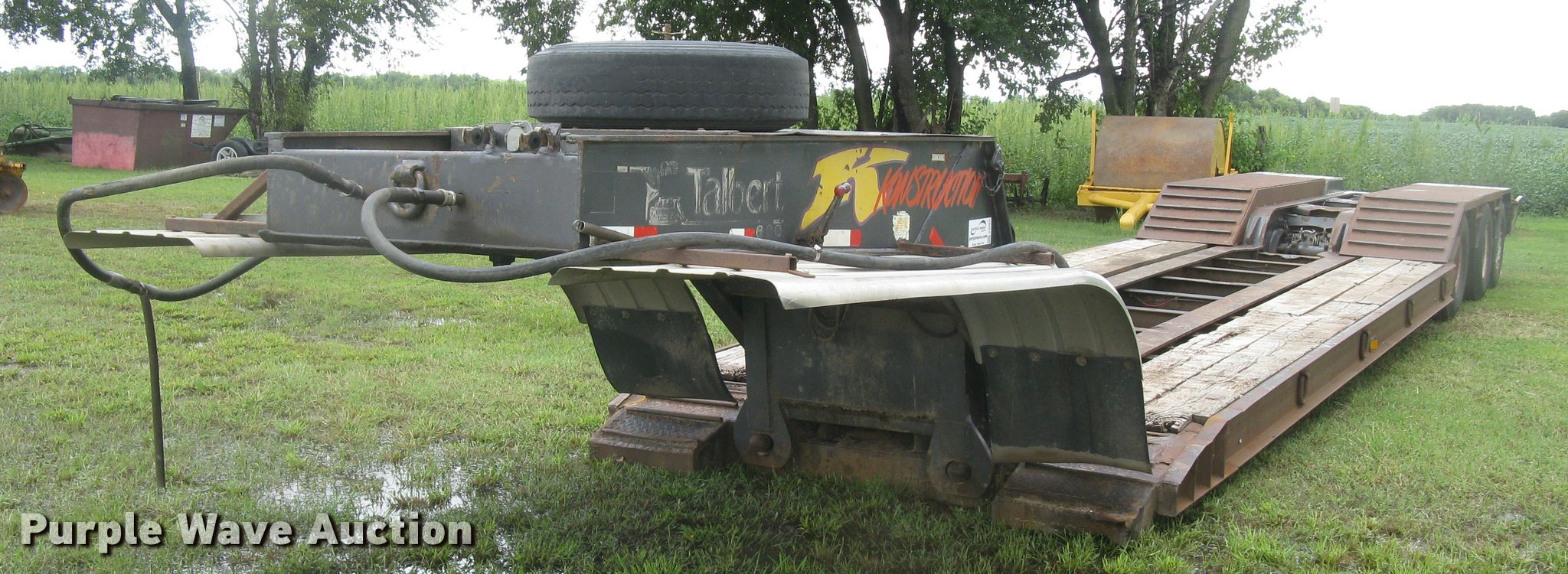 Purple Wave is selling a used Equip. Trailer in Kansas. This item is a Talbert RGN lowboy equipment trailer with the following: 21'L x 102"W main deck, 8'L over axle deck, 12'L rear deck, Wood deck, D-ring tie downs, Neck storage, Triple axle, Oil bath hubs, Air suspension, Air brakes, 10.00R15 tires, Rust, Chains and binders are not included, Unit# 5790
