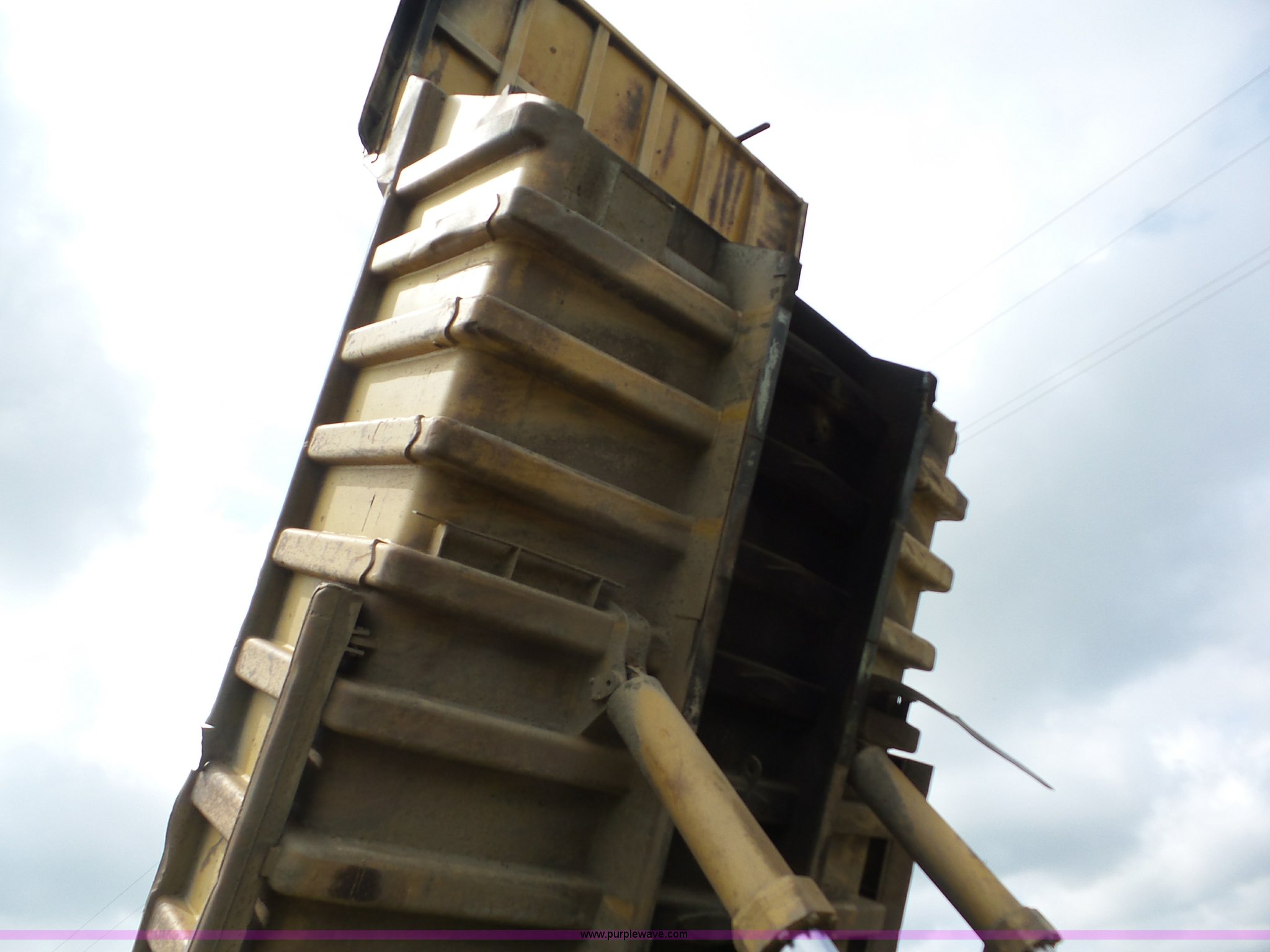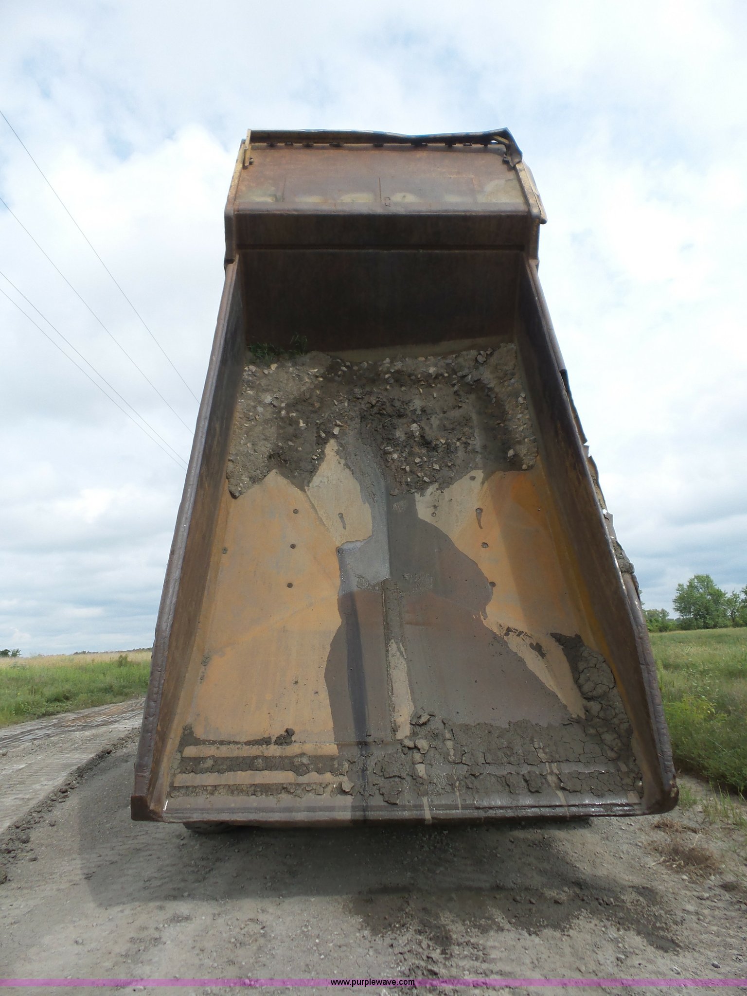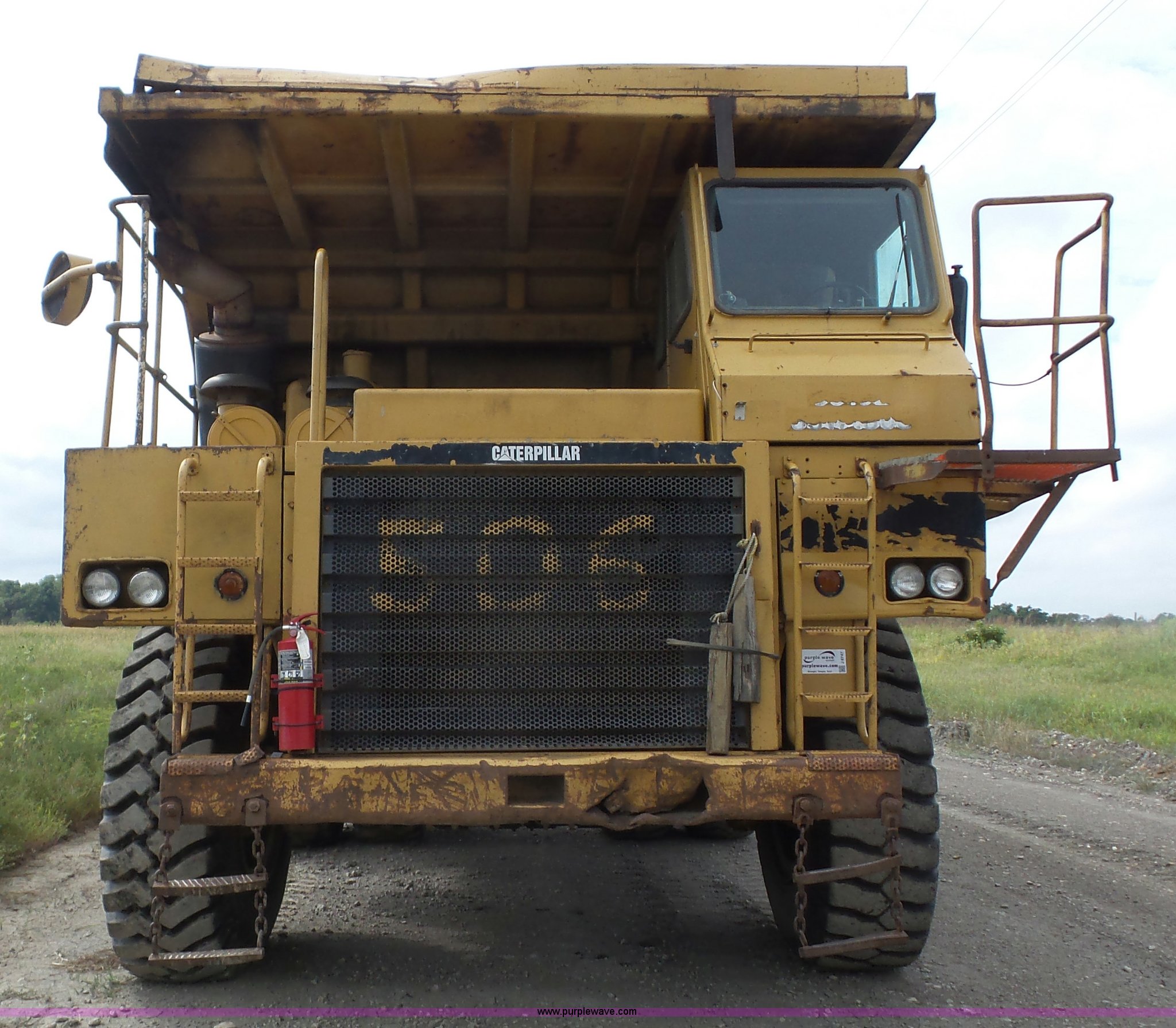 Purple Wave is selling a used Off Road Haul Truck in Kansas. This item is a 1987 Caterpillar 773B haul truck with the following: 60,442 miles on odometer, Approximately 40,182 hours on meter, Caterpillar 3412 12 cylinder twin turbo diesel engine, Automatic transmission, Single axle, AC and heat, Steel dump bed, Dual ram hoist, 50 ton capacity, Air over hydraulic brakes, 21.00-35 tires, Unit# 506