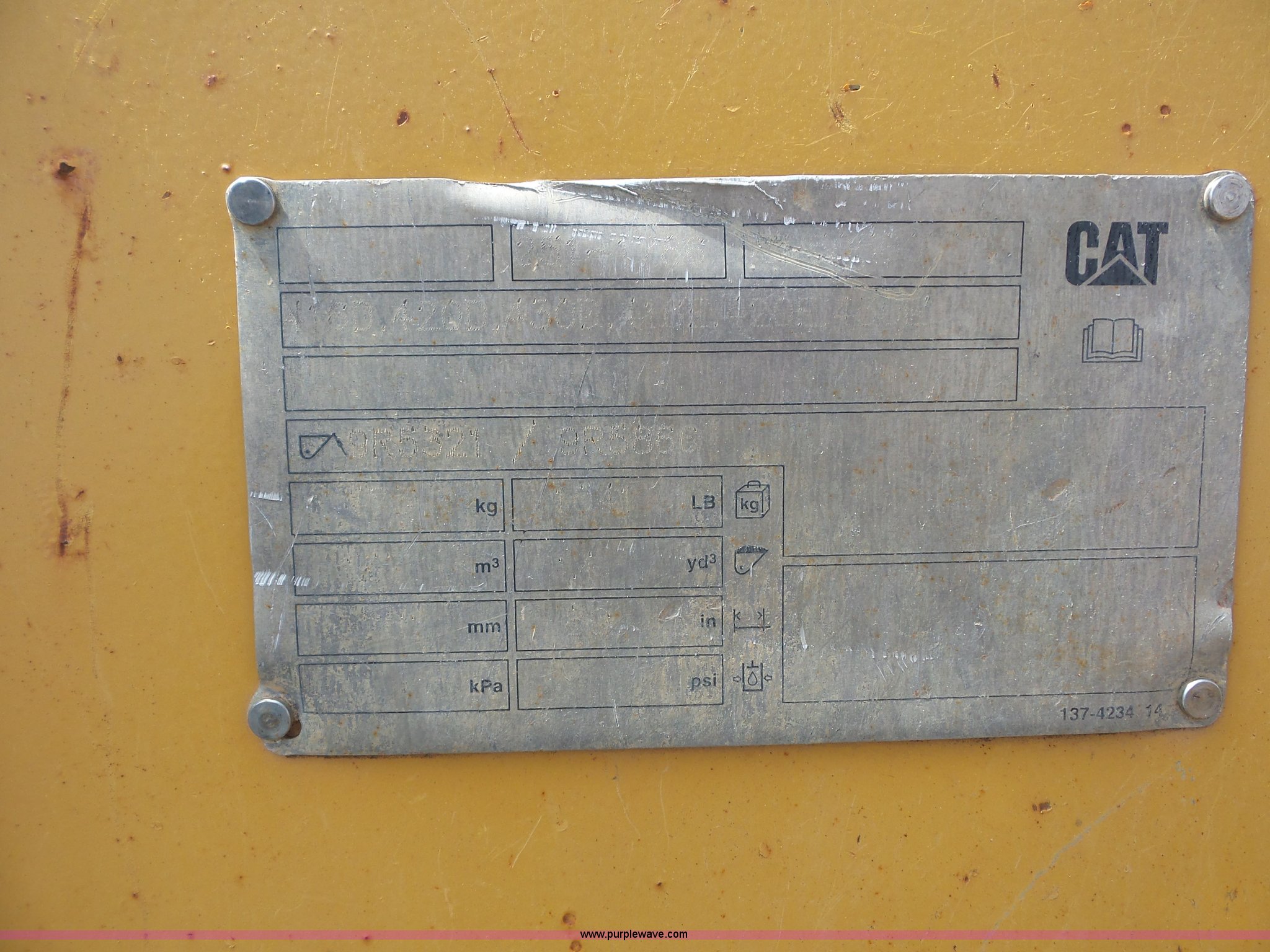 Purple Wave is selling a used Tractor Loader Backhoe in Missouri. This item is a 2005 Caterpillar 420D backhoe with the following: 4,570 hours on meter, Caterpillar four cylinder turbo diesel engine, Shuttle shift transmission, 4F-4R gears, Four wheel drive, EROPS, AC and heat, Wobble stick backhoe controls, Front and rear work lights, 87"W loader bucket, E-stick, 30"W backhoe bucket, (5) teeth, Manual quick coupler, Auxiliary hydraulics, 12.5/80/18 front tires, 19.5-24 rear tires, 15,772 lbs. base operating weight, Serial CAT0420DVFDP24733